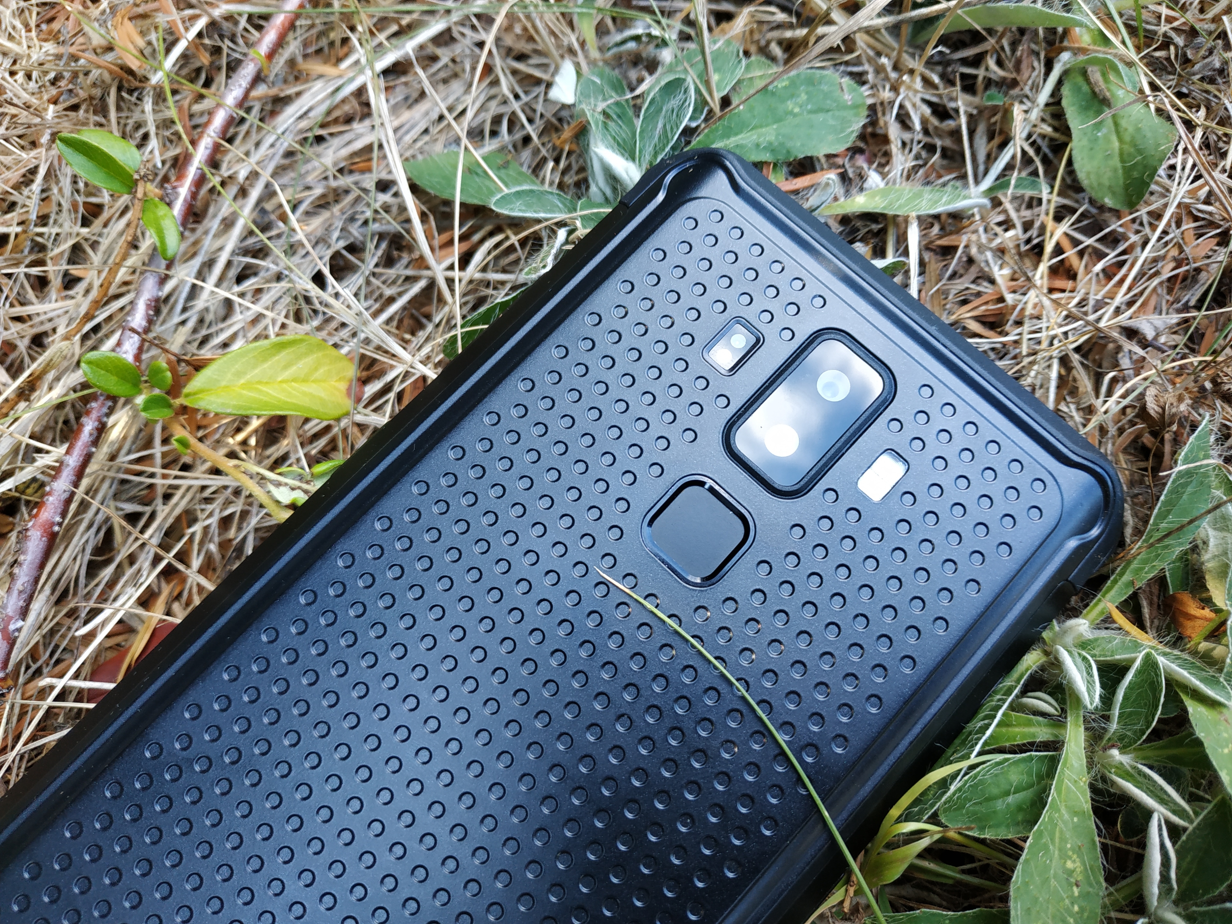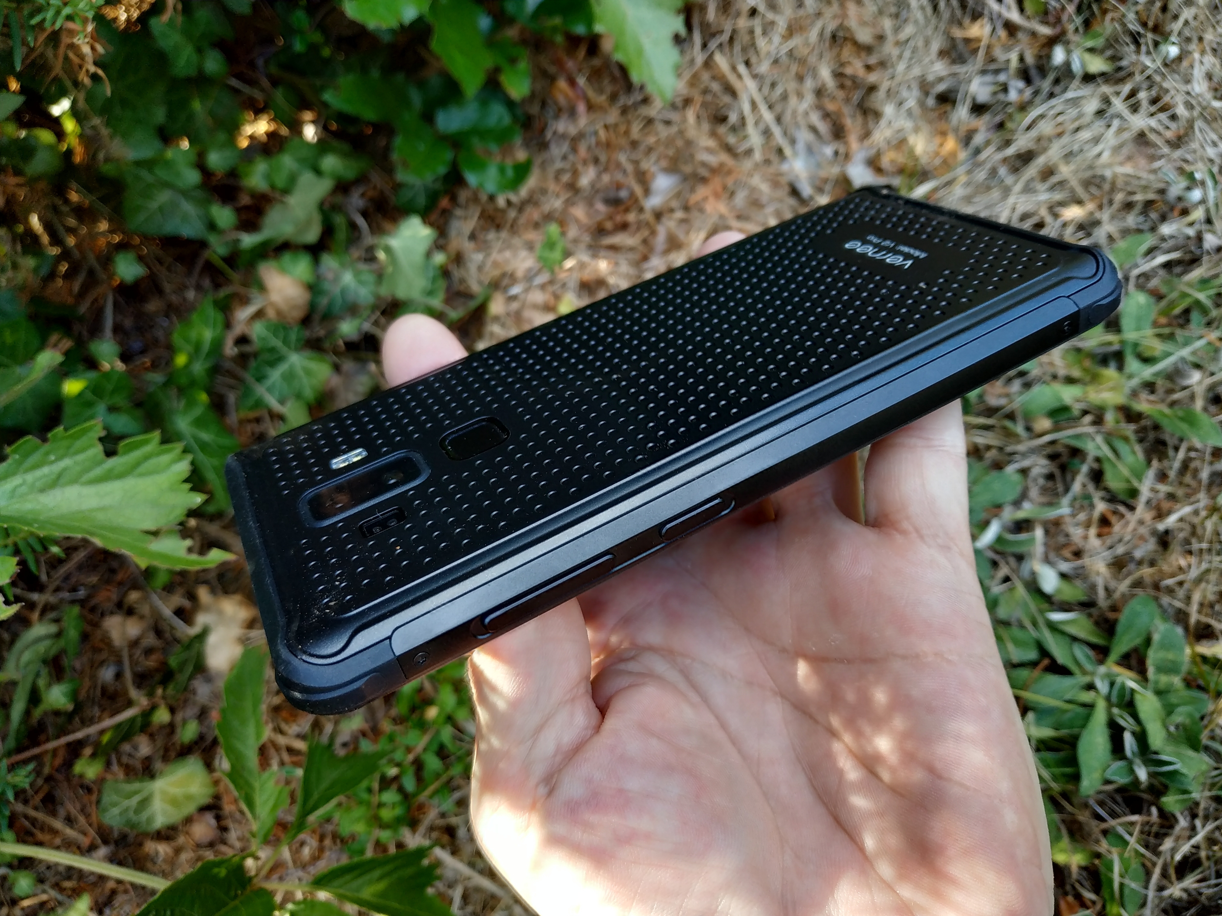 Die Rückseite besteht aus gummiertem, mit einer Textur versehenen Kunststoff, der für ein angenehmes Gefühl in der Hand sorgt. Die Verarbeitung des Vernee V2 Pro ist ohne Fehl und Tadel, das Smartphone wirkt, wie man es von einem Outdoor-Gerät erwartet: stabil, massiv und belastungsfähig.