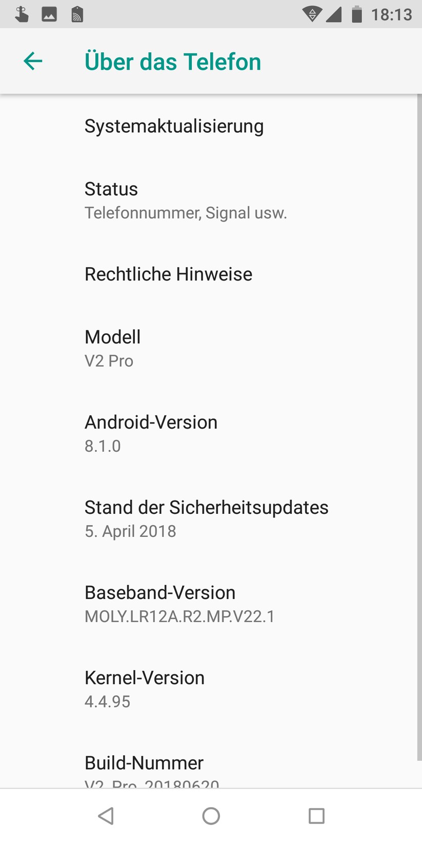 Vernee nennt das Betriebssystem zwar VOS, es basierend aber auf Android 8.1 – optisch handelt es sich jedoch um ein fast reines Stock Android. Weder gibt es kosmetische Änderungen an Googles Betriebssystem, noch fanden wir in den Systemeinstellungen größere softwareseitige Anpassungen. Stand der Sicherheitsupdates war zum Testzeitraum der 5. April 2018.