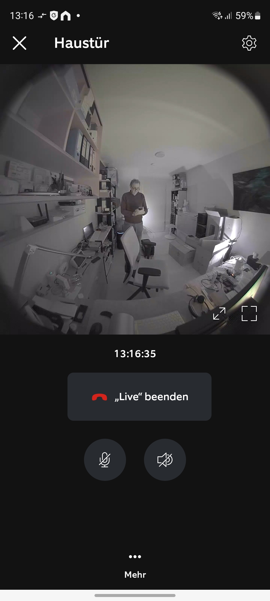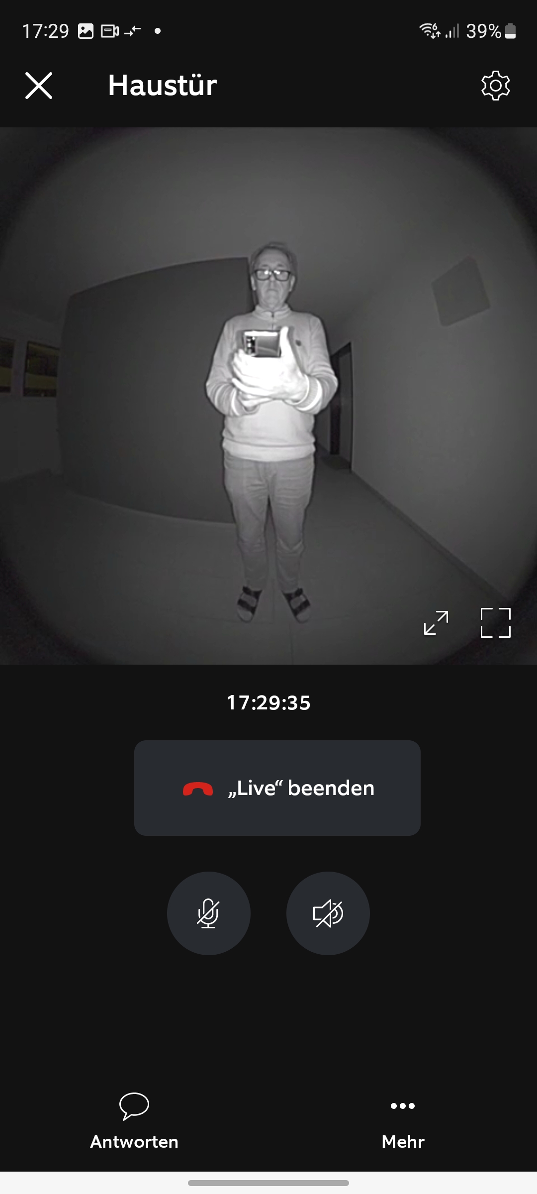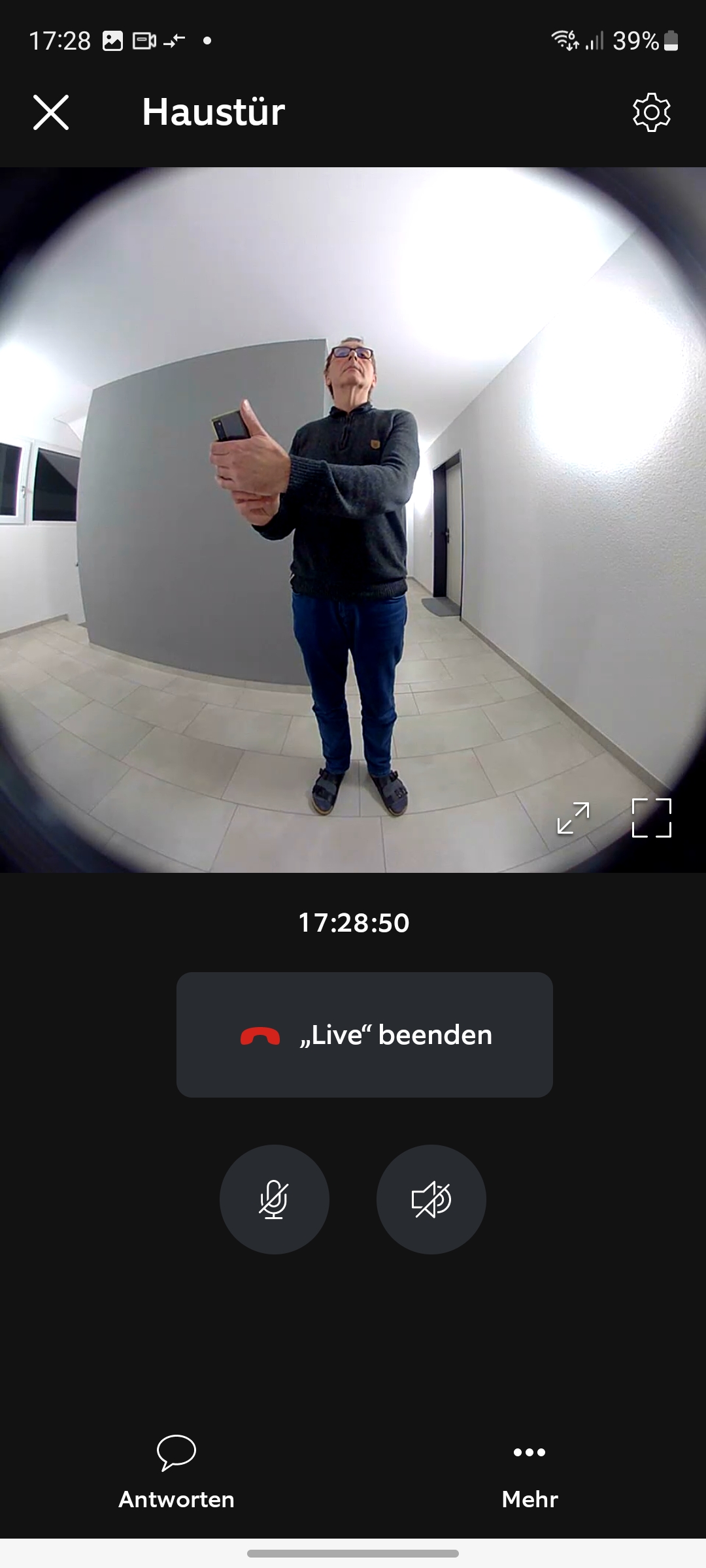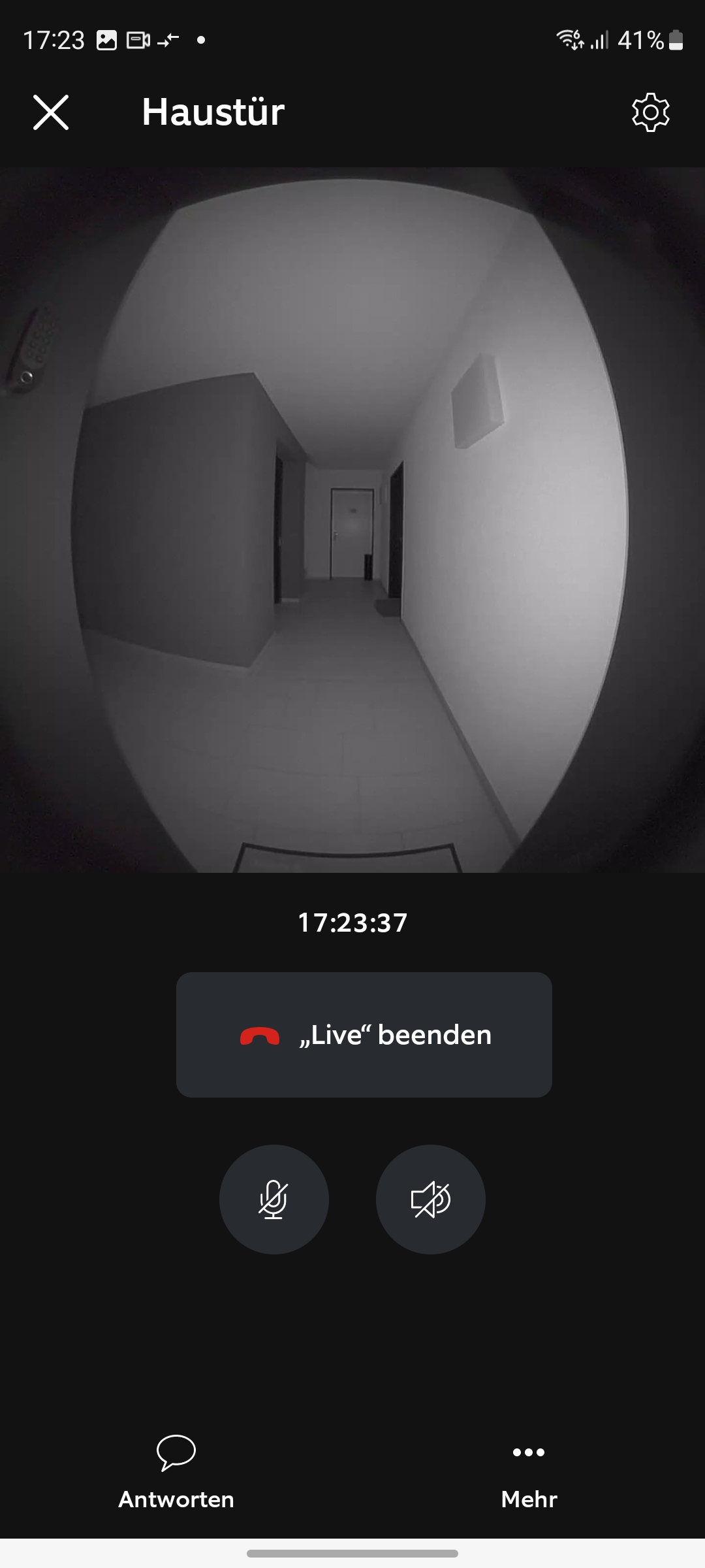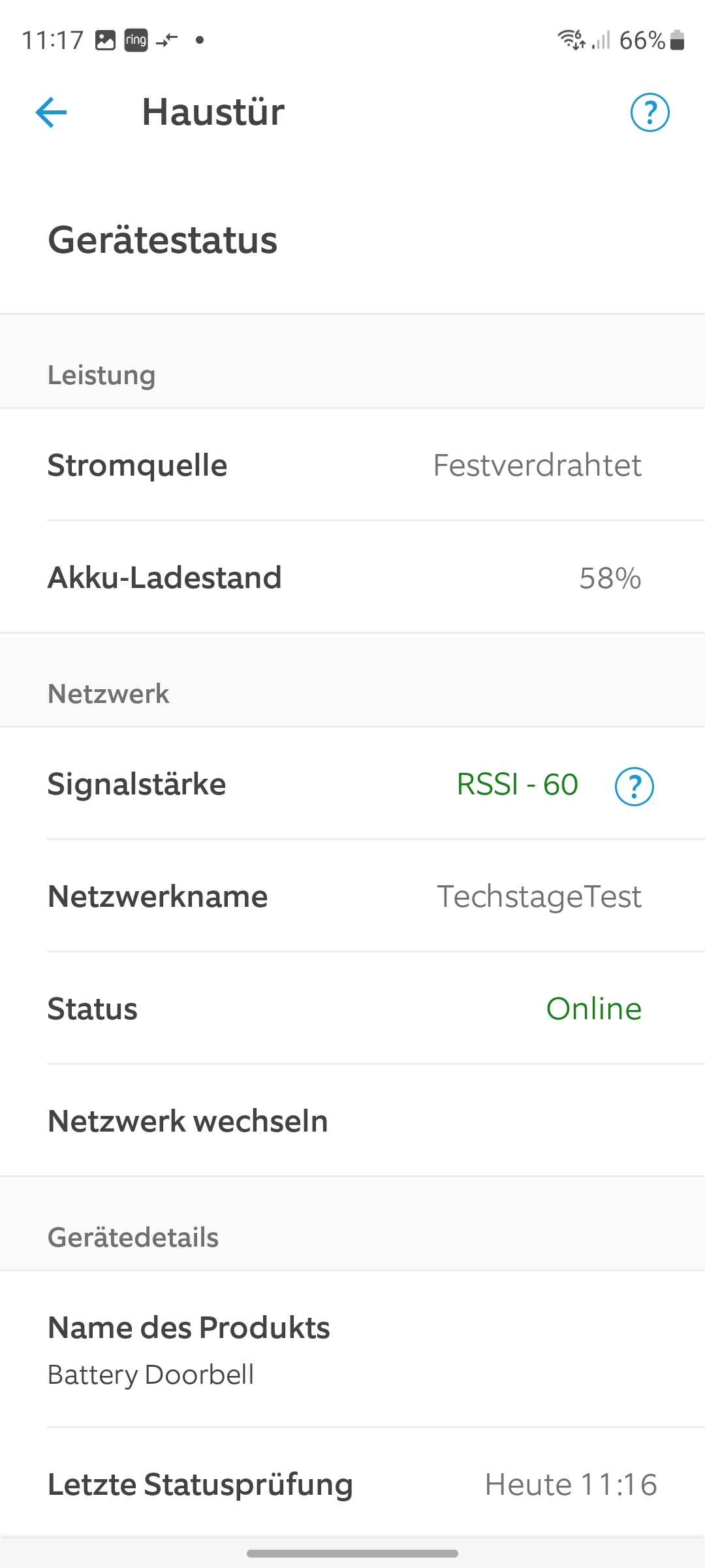 Der WLAN-Empfang bereitet im Test keine Probleme. Die Ring Battery Video Doorbell kann ausschließlich im reichweitenstarken 2,4-GHz-Netz funken und hält auch zu einem weiter entfernten Router, der von der Video-Türklingel durch mehrere Zwischenwände getrennt ist, die Verbindung stabil. Zwar meldet die Ring-App bei diesem Set-up einen schlechten Empfang. Trotzdem wird das Live-Video ohne Verzögerung dargestellt.