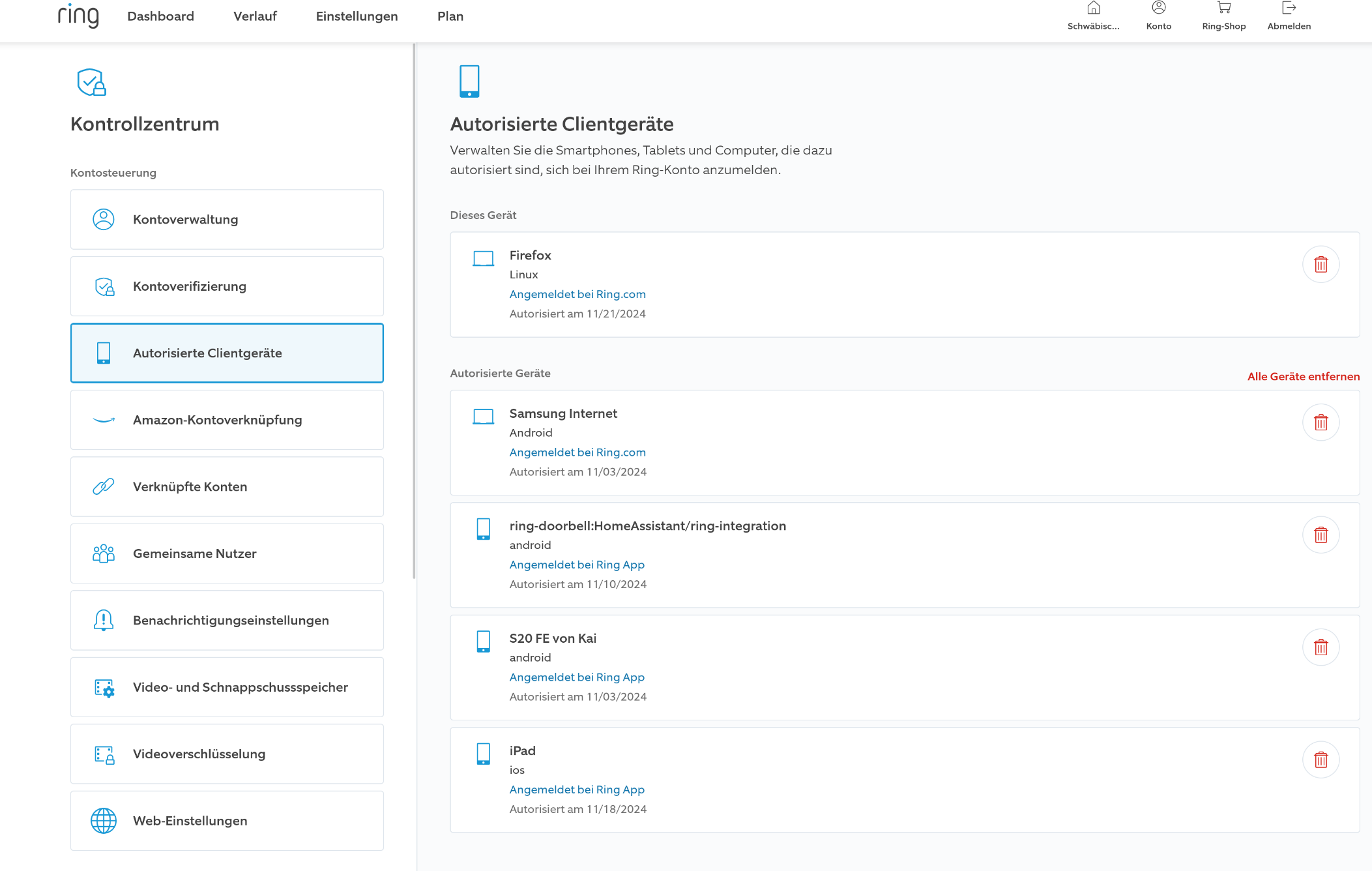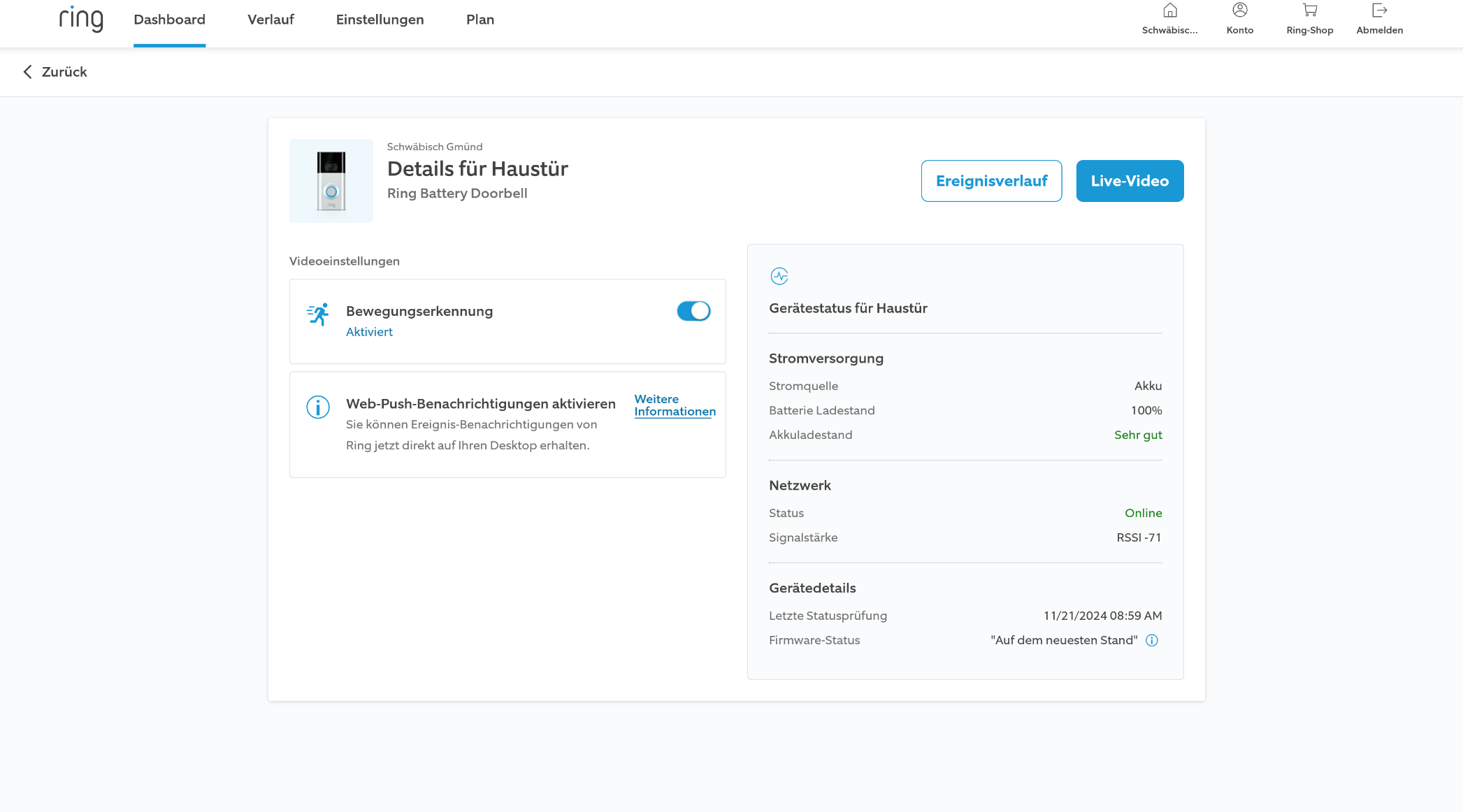 Die Ring-Video-Türklingel können Anwender auch per Browser bedienen, und eine Integration für Home Assistant gibt es auch.