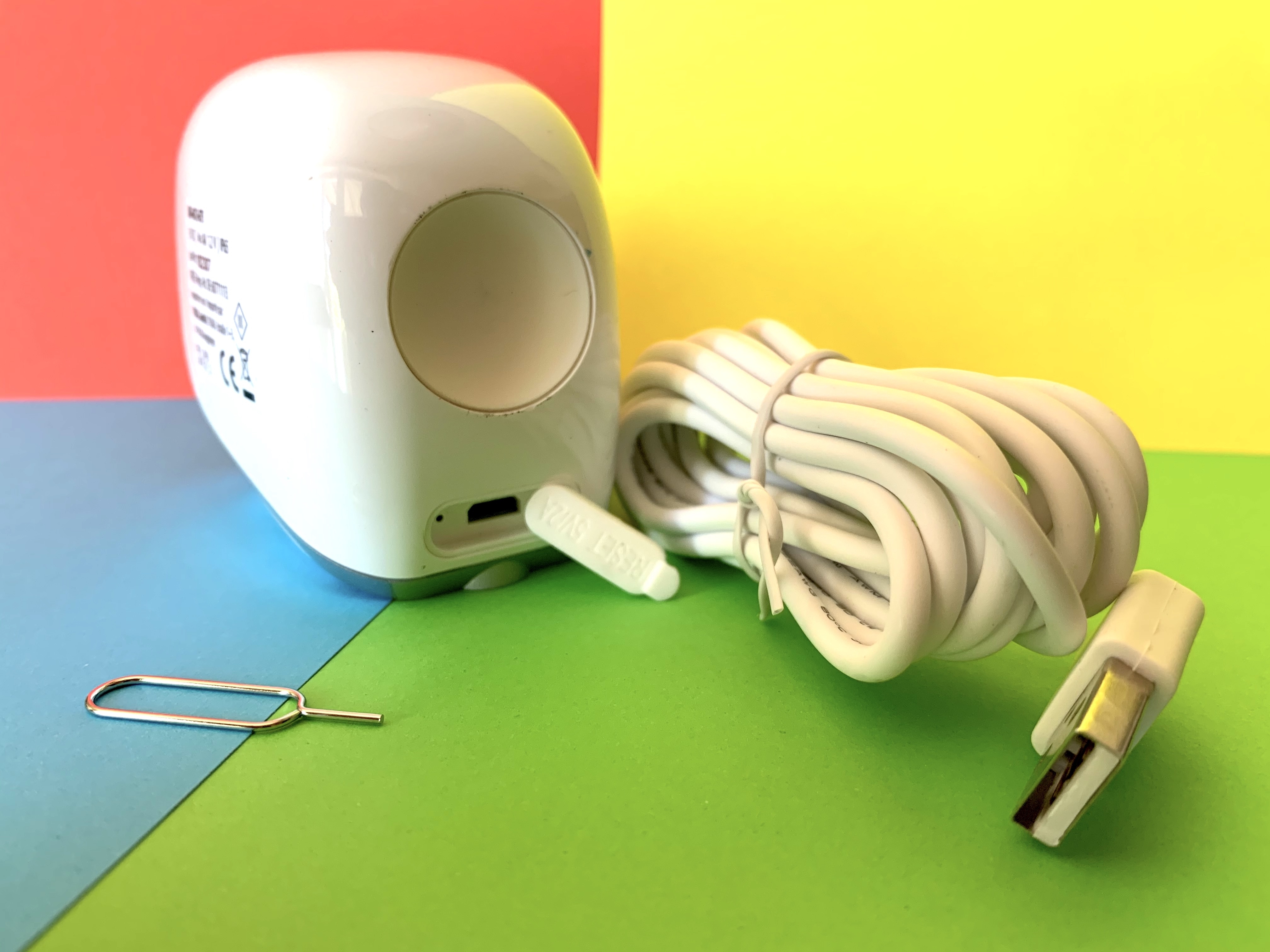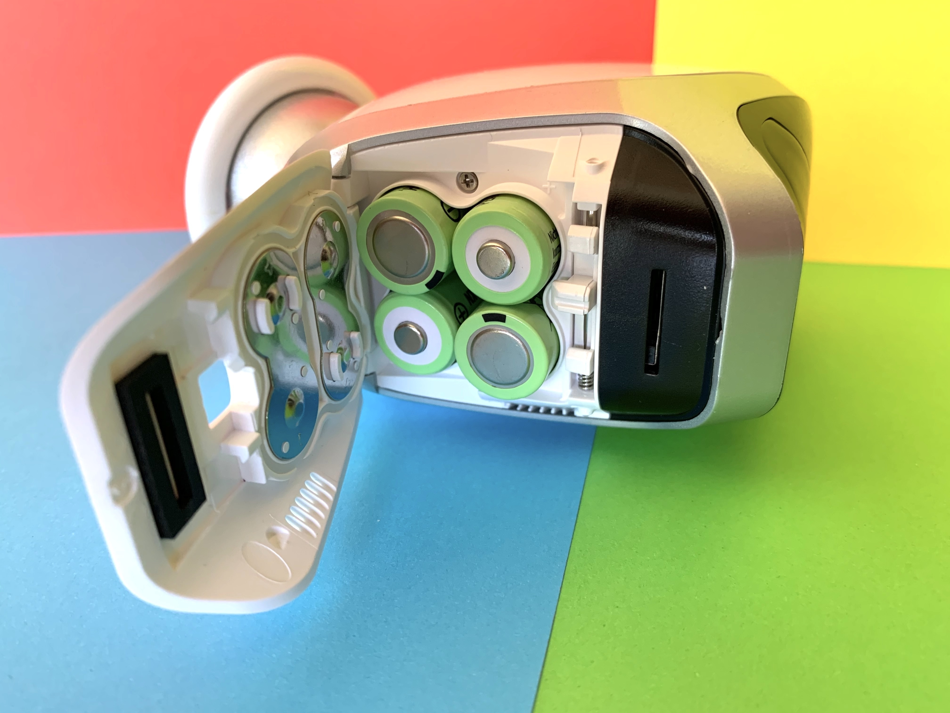 Auf der Vorderseite der Kamera sind zwei PIR-Sensoren (Bewegungsmelder), eine Kameralinse, eine Status-LED, ein Lichtsensor und acht Infrarot-LEDs zur Nachtsicht eingebaut. Auf der Unterseite kommt man an die Akkus und den Micro-SD-Karten-Slot ran, auf der Rückseite befindet sich unter eine Silikonabdeckung ein Mikro-USB-Eingang und ein Resetbutton sowie die Einbuchtung für das magnetische Kugelgelenk zur Befestigung. Die Kamera ist entsprechend IP65-zertifizert, übersteht also Staub und Regen. Ob man die Akkus zum Laden entnimmt oder über ein Netzteil beispielweise mit einem Solarpanel betreibt, ist jedem selbst überlassen. Die Akkulaufzeit beträgt laut Hersteller rund sechs Monate. Das erscheint uns als korrekte Angabe – natürlich mit entsprechender Verkürzung, je nachdem wie oft die Kamera Alarme aufzeichnet.