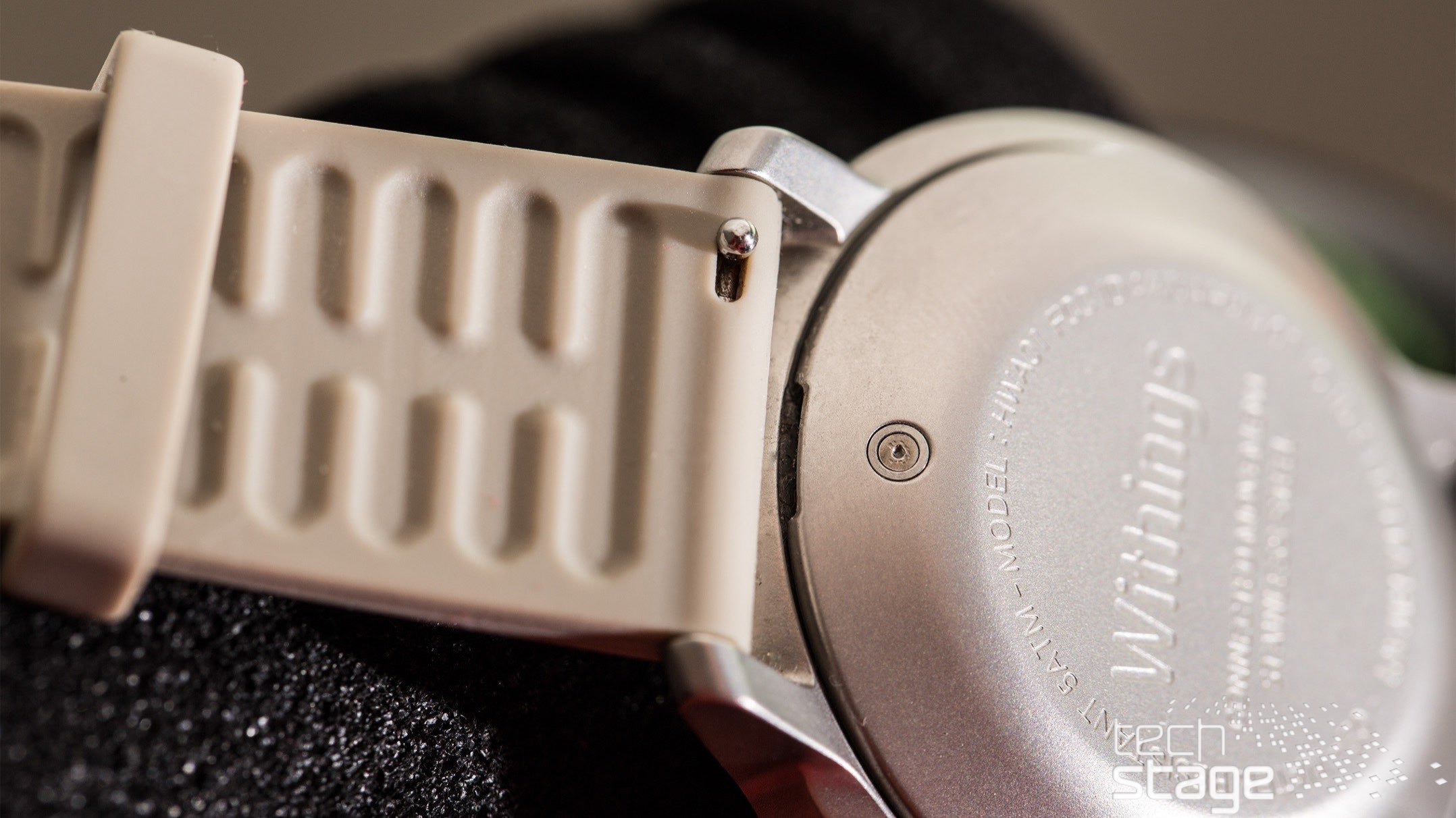 Wie bereits erwähnt: Die Activité Pop sieht auf den ersten Blick nach einer gewöhnlichen Armbanduhr in der unteren Preisklasse aus. Das Gehäuse wirkt, als wäre es aus einem in Matt-Metallic lackierten Kunststoff gefertigt – und so fühlt es sich mit dem geringen Gewicht von 37 Gramm auch an. Wer auf die Rückseite blickt, wird eines besseren belehrt: Hier steht „Stainless Steel“, der von Withings nach dem PVD-Verfahren gehärtet wurde. Und tatsächlich: Auch nach einem mehrwöchigen Einsatz sieht das Gehäuse der Uhr noch aus wie neu – und das obwohl sie nicht gerade immer pfleglich behandelt wurde. Aber zur Haltbarkeit später mehr.