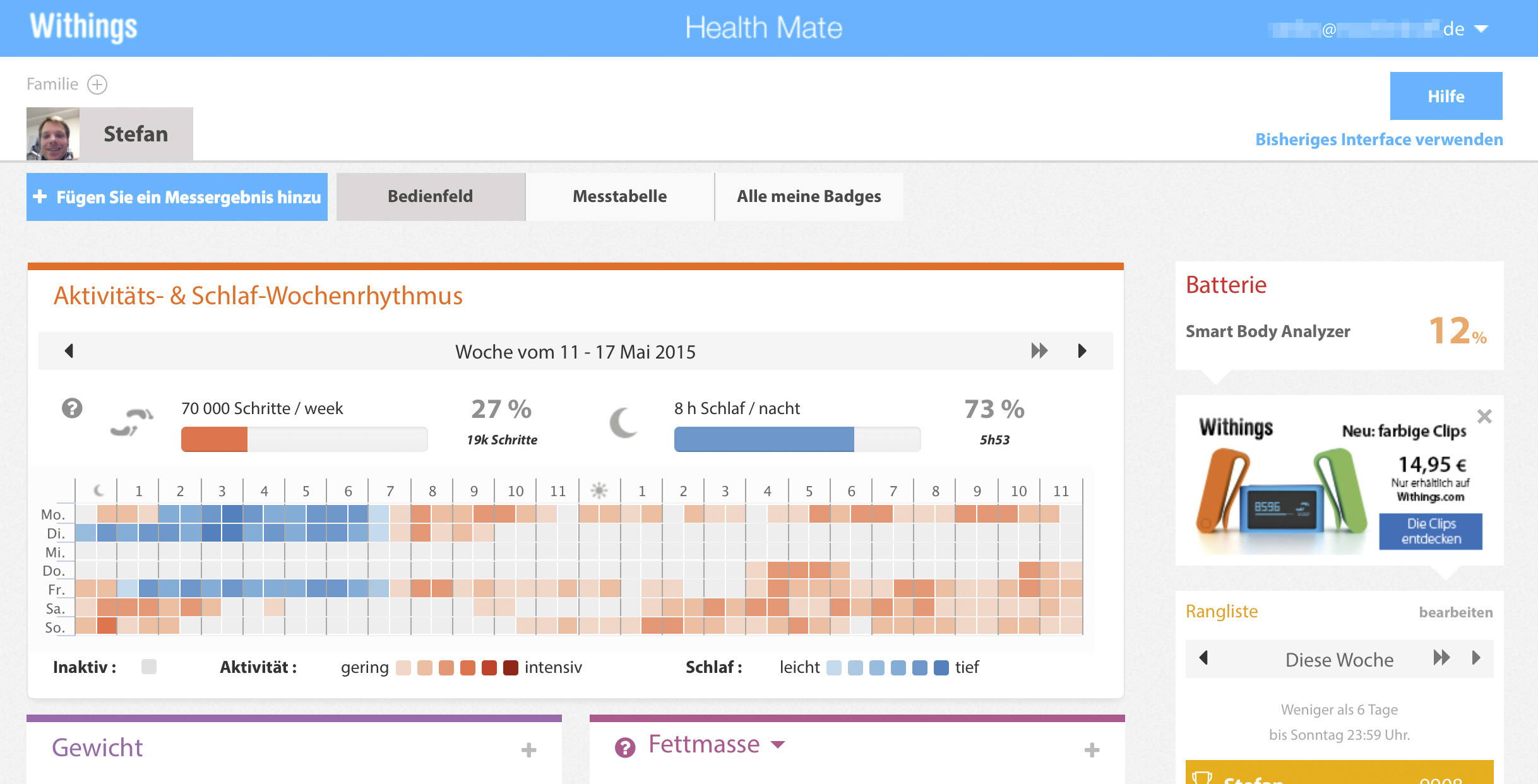 Hier gibt es dann im Wesentlichen die gleichen Informationen wie in der App – nur eben ein bisschen übersichtlicher weil großflächiger aufbereitet. Withings hat das Webinterface übrigens kürzlich überarbeitet. Mir gefällt das Ergebnis sehr gut.