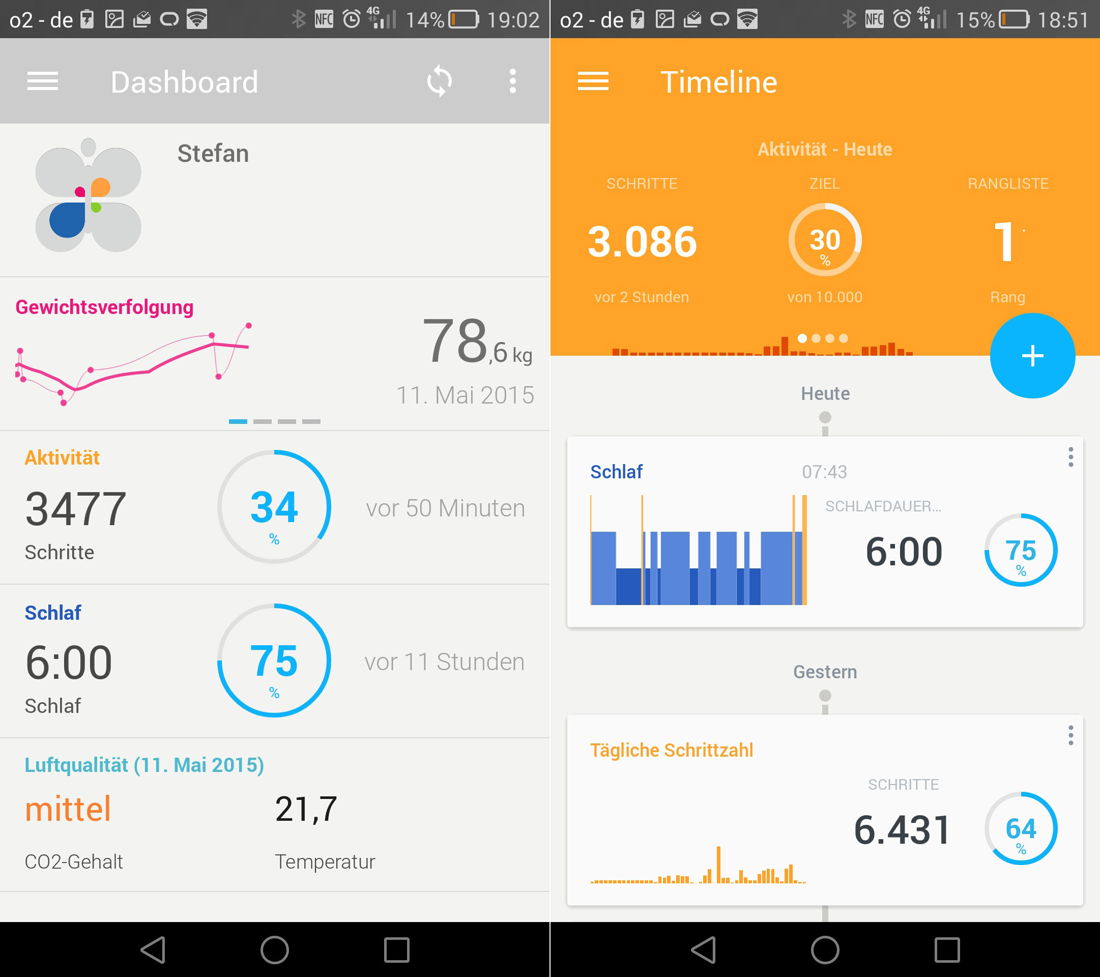 Zum Marktstart unterstützte die Activité Pop lediglich iOS, inzwischen gibt es die HealthMate-App auch für Android. Die Anwendungen sehen hier wie dort identisch aus – und zeigen dem Nutzer übersichtlich die jüngst erfassten Daten an. Wer weitere Geräte aus dem Witihings-Universum besitzt, sieht hier dann übrigens nicht nur Schrittzahl und Schlafdauer, sondern beispielsweise auch Gewicht, Körperfettanteil, Sauerstoffgehalt der Luft im Schlafzimmer, Puls und so weiter. Darüber hinaus ist es noch möglich, Werte für Gewicht, Blutdruck oder Herzfrequenz händisch mitzuprotokollieren.