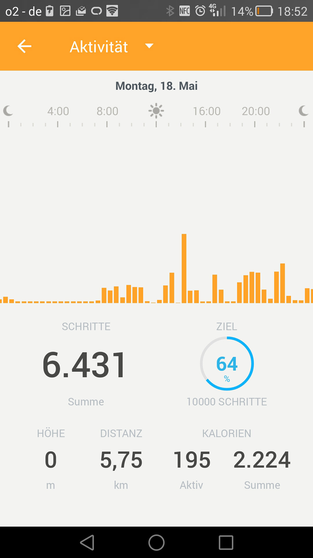 Nun, und dann startet der Nutzer jeden Morgen mit dem kleinen Zeiger bei Null und hat das Primärziel, diesen über den Tag hinweg auf die 100-Prozent-Marke zu bringen. Diese Marke besteht dabei aus einem vorab selbst gesteckten Ziel – standardmäßig sind das 10.000 Schritte.