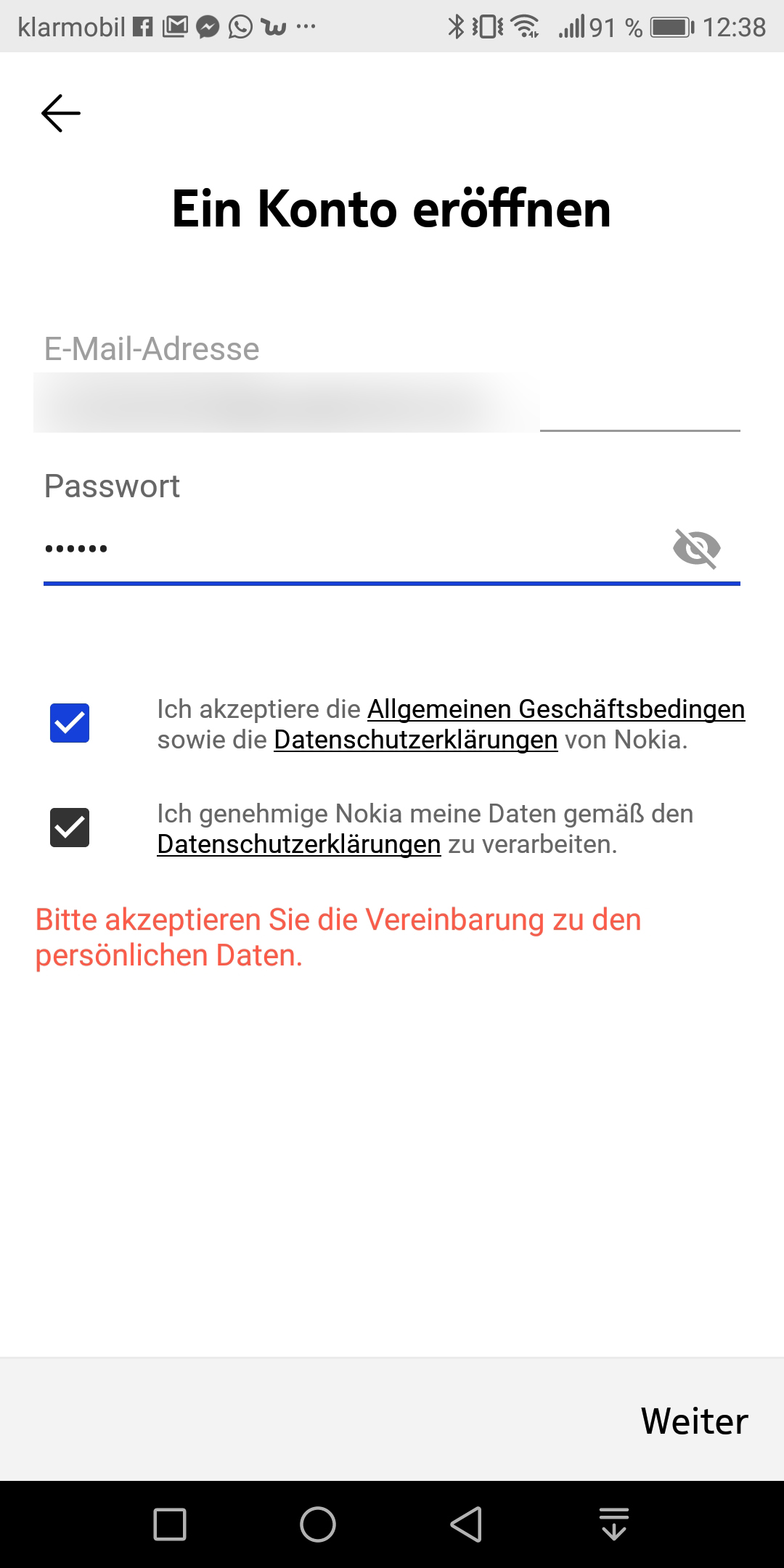 Um die Steel HR zu einzustellen steht die kostenlose App Health Mate für Android und iOS zur Verfügung. Zur Koppelung mit dem Smartphone wird zusätzlich zur Software auch ein Anmeldung bei Nokia-Health vorausgesetzt. Die Registrierung ist zwar kostenlos, wir fänden es aber besser, wenn es auch ohne ginge.