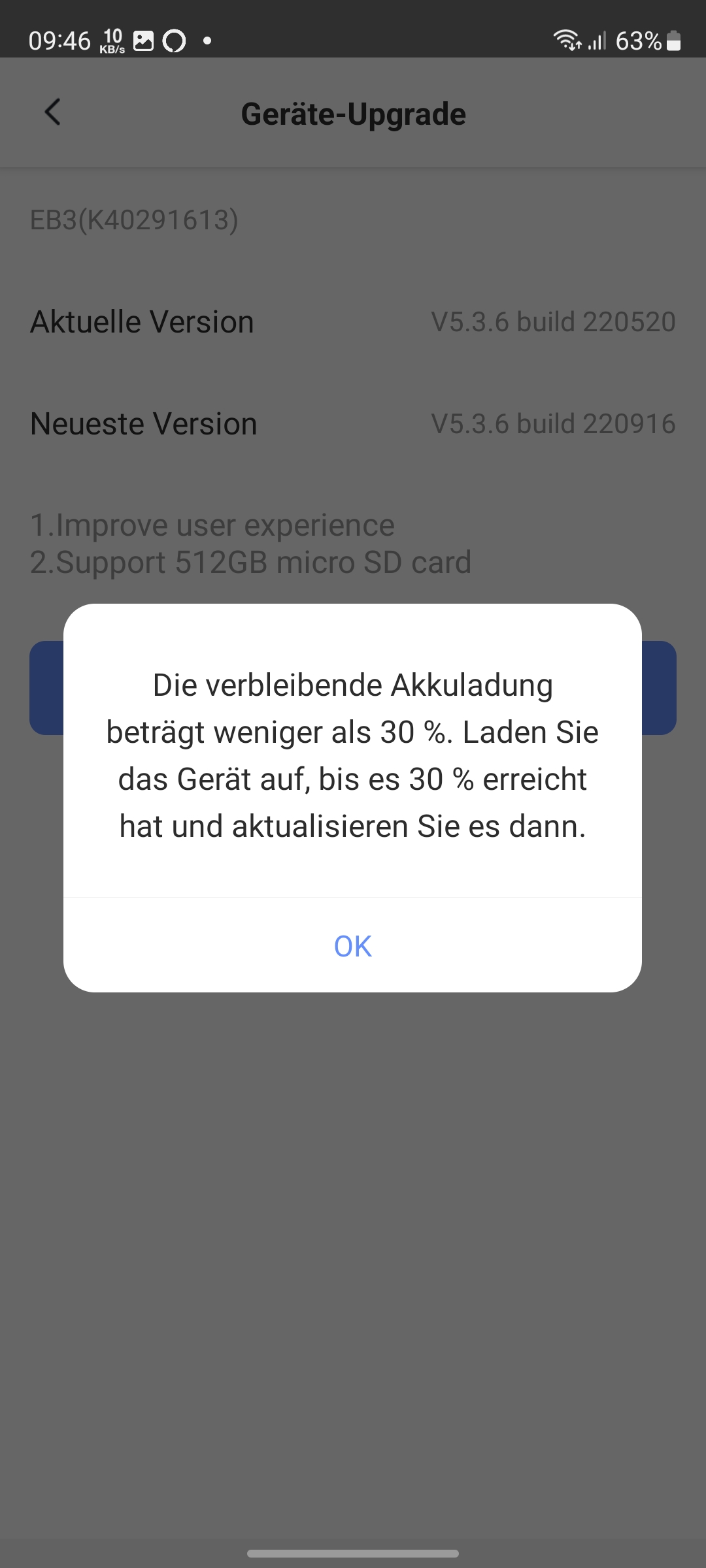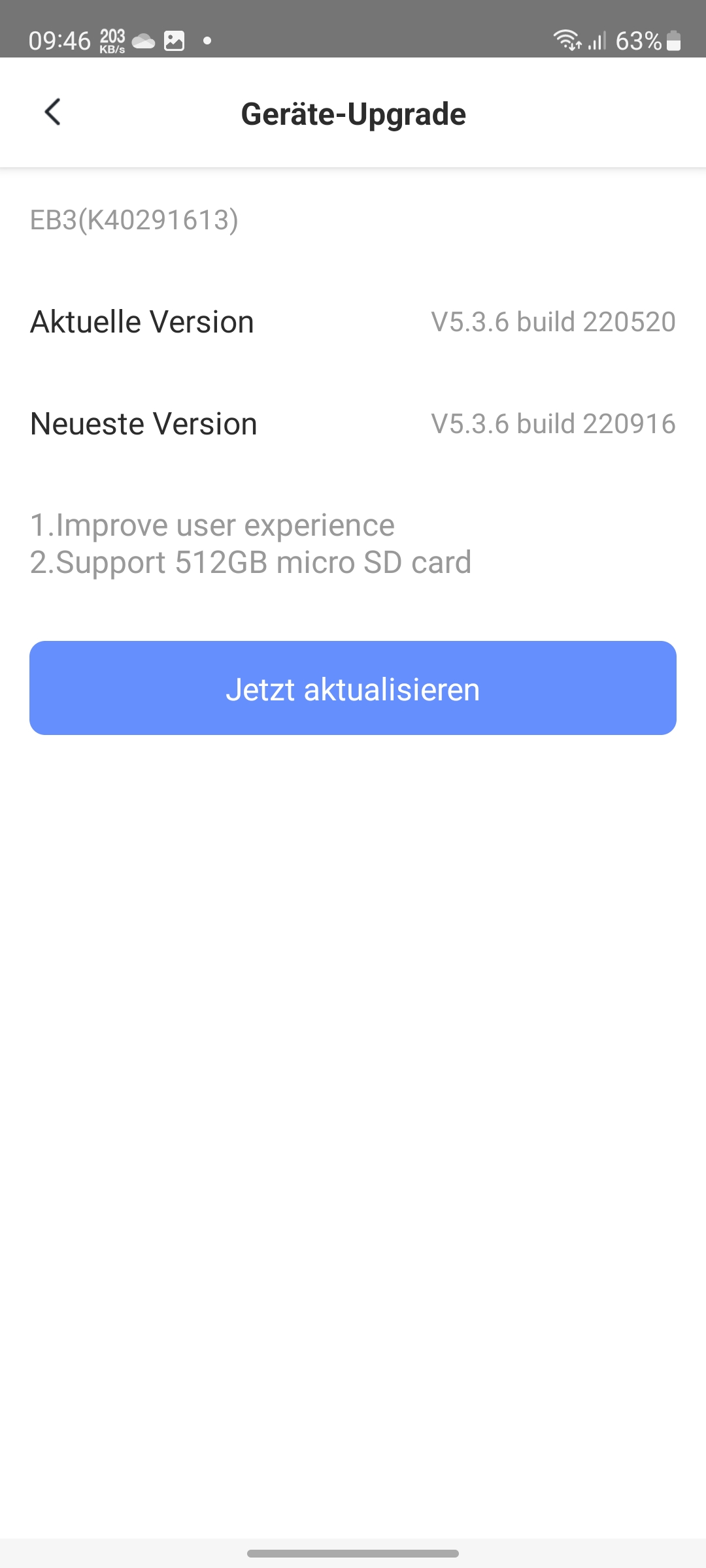 Die schon beim Test der Elife-Kamera monierte Beschreibung der Betriebsmodi ist auch bei der EB3 noch vorhanden. Ezviz sollte die Übersetzung in der App anpassen und auch mit dem Handbuch abgleichen. Mehr Details zu den einzelnen Betriebsarten sind auch wünschenswert. Die erste Betriebsart nennt Ezviz in der App Strom angesteckt, während im Handbuch von Aufnahmemodus die Rede ist. Die Beschreibung lautet „Die Kamera nimmt weiterhin auf. Schließen Sie die Kamera an“. Vermutlich ist gemeint, dass die Kamera kontinuierlich aufnimmt und man das Gerät besser an eine Stromquelle anschließt, da dieser Modus sehr viel Energie benötigt.