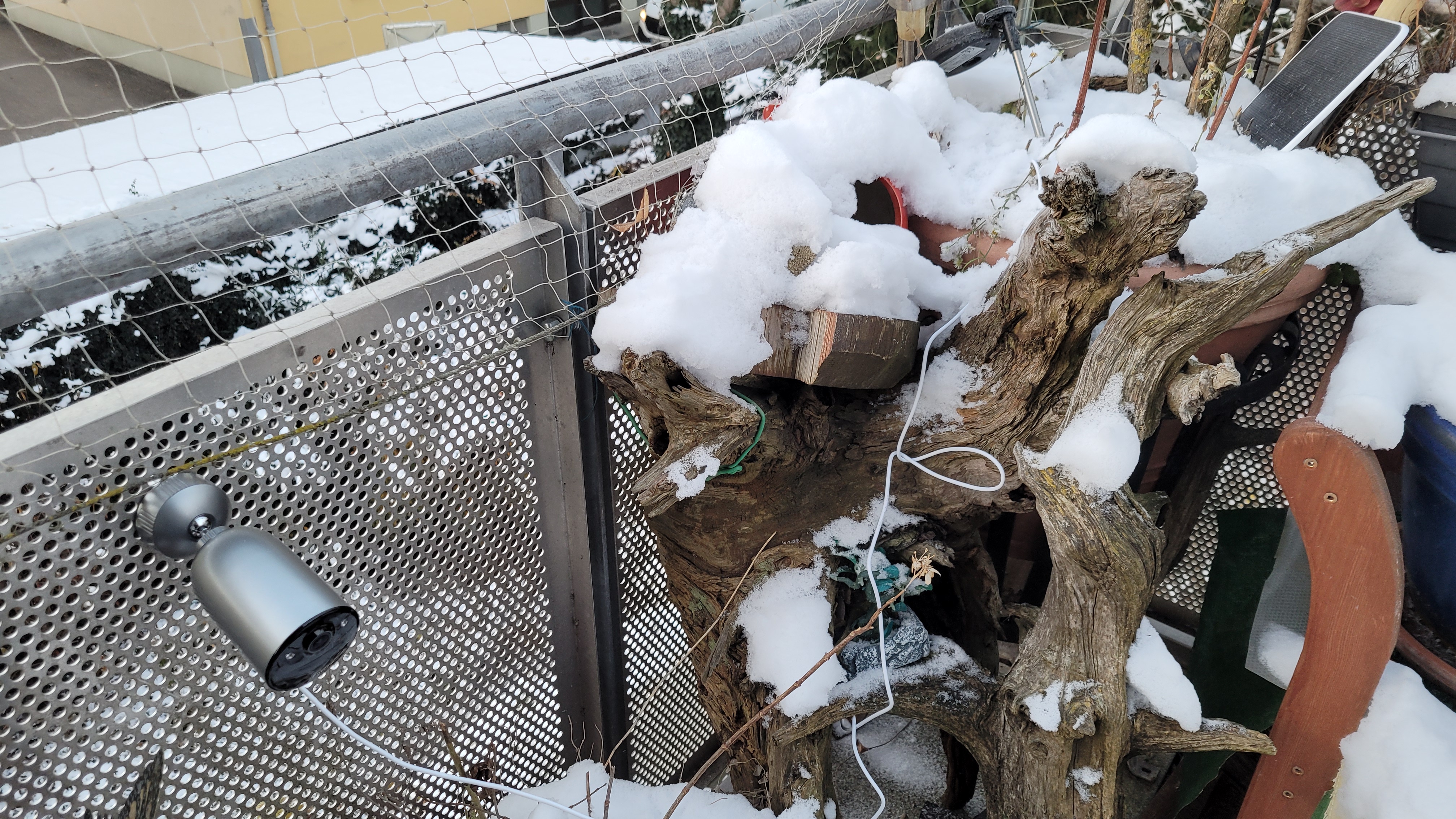 Die 272 g schwere Ezviz EB3 misst 105,9 × 62,8 × 62,8 mm und ist laut Hersteller im Temperaturbereich zwischen -20 und 50 Grad Celsius bei einer Luftfeuchte von bis zu 95 Prozent einsatzbereit. Gegen Wettereinflüsse ist sie geschützt, ohne dass Ezviz aber eine IP-Zertifizierung angibt. Während des Testzeitraums im Dezember hat sie Schneefall, Eisregen und tiefe Temperaturen von bis zu -10 Grad Celsius problemlos widerstanden.