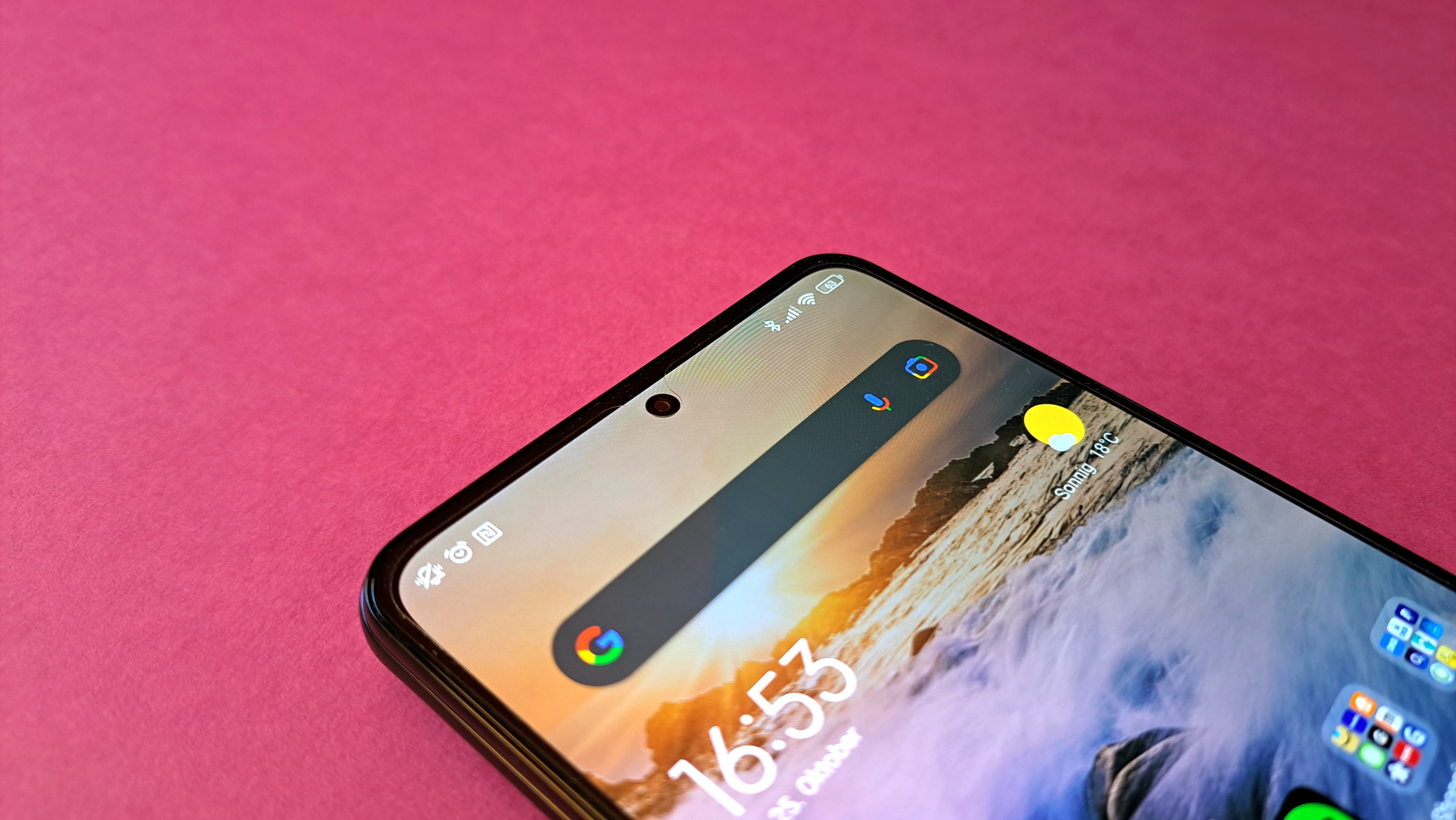 Anders als beim Xiaomi 12 Pro (Testbericht) ist die Vorderseite nicht gebogen. Ein zu den Rändern gerade verlaufendes Display, das etwa auch Samsung beim Galaxy S20 FE bietet (Testbericht) hat den Vorteil, dass die Lesbarkeit an den Rändern etwas besser ist als bei Displays, deren Ränder abgerundet sind. Der Bildschirm wird geschützt von Gorilla Glass 5 – also nicht der neuesten Variante von Corning. Äußerst schmal ist der Bildschirmrand. Die vordere Kamera ist üblicherweise in einer kleinen Öffnung eingebettet – der Punch-Hole-Notch. Unten im Display sitzt der Fingerabdrucksensor.