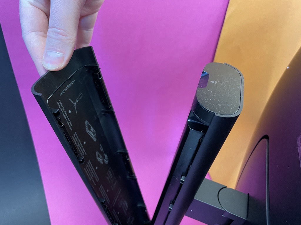 Xiaomi setzt beim Gaming Monitor34 auf Minimalismus. Er bietet keinen unnötigen Schnickschnack und hat ein schlichtes Design. Es gibt zwei HDMI-2.0-Ports, zwei DisplayPort-1.4-Anschlüsse und einen Kopfhörer-Ausgang. Weitere Nice-to-Haves wie ein integrierte USB-Hub oder eingebaute Lautsprecher sind nicht vorhanden. Dafür gibt es einen praktischen Kabelkanal, der dafür sorgt, dass alles schön geordnet aussieht. Der Kanal hat zwei Abdeckungen: Einmal längs am Standfuß, und einmal an den Videoeingängen, beide mit Magneten befestigt. Ein Wechsel des Kabels ist mit ein paar Handgriffen erledigt, denn die Abdeckungen lassen sich leicht entfernen und wieder befestigen. Mehr als das Stromkabel und vier oder fünf übliche HDMI Kabel lassen sich aber nicht unterbringen. Wer den Kanal gleich für andere Kabel auf dem Schreibtisch mit benutzen möchte, wird enttäuscht sein.