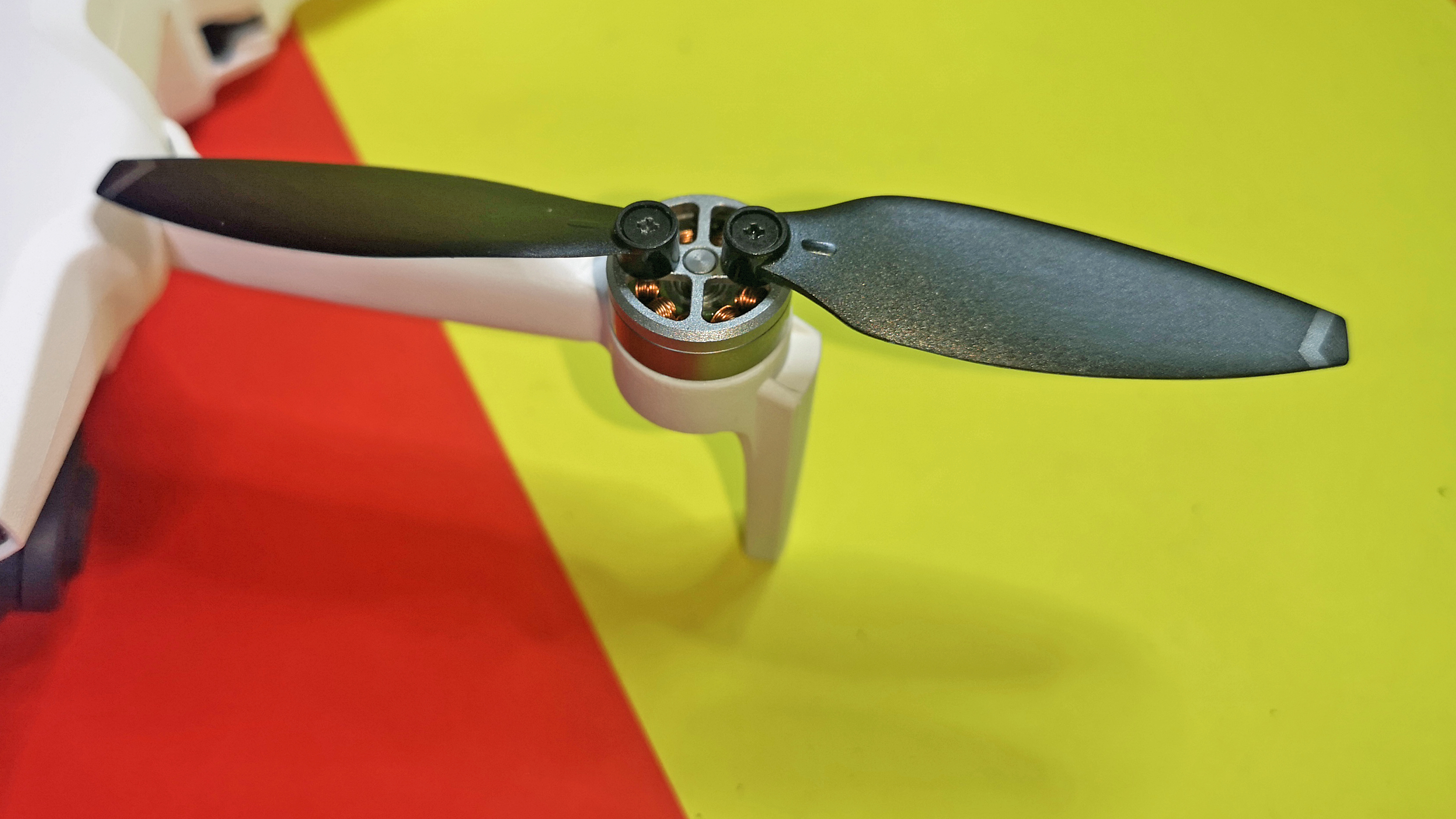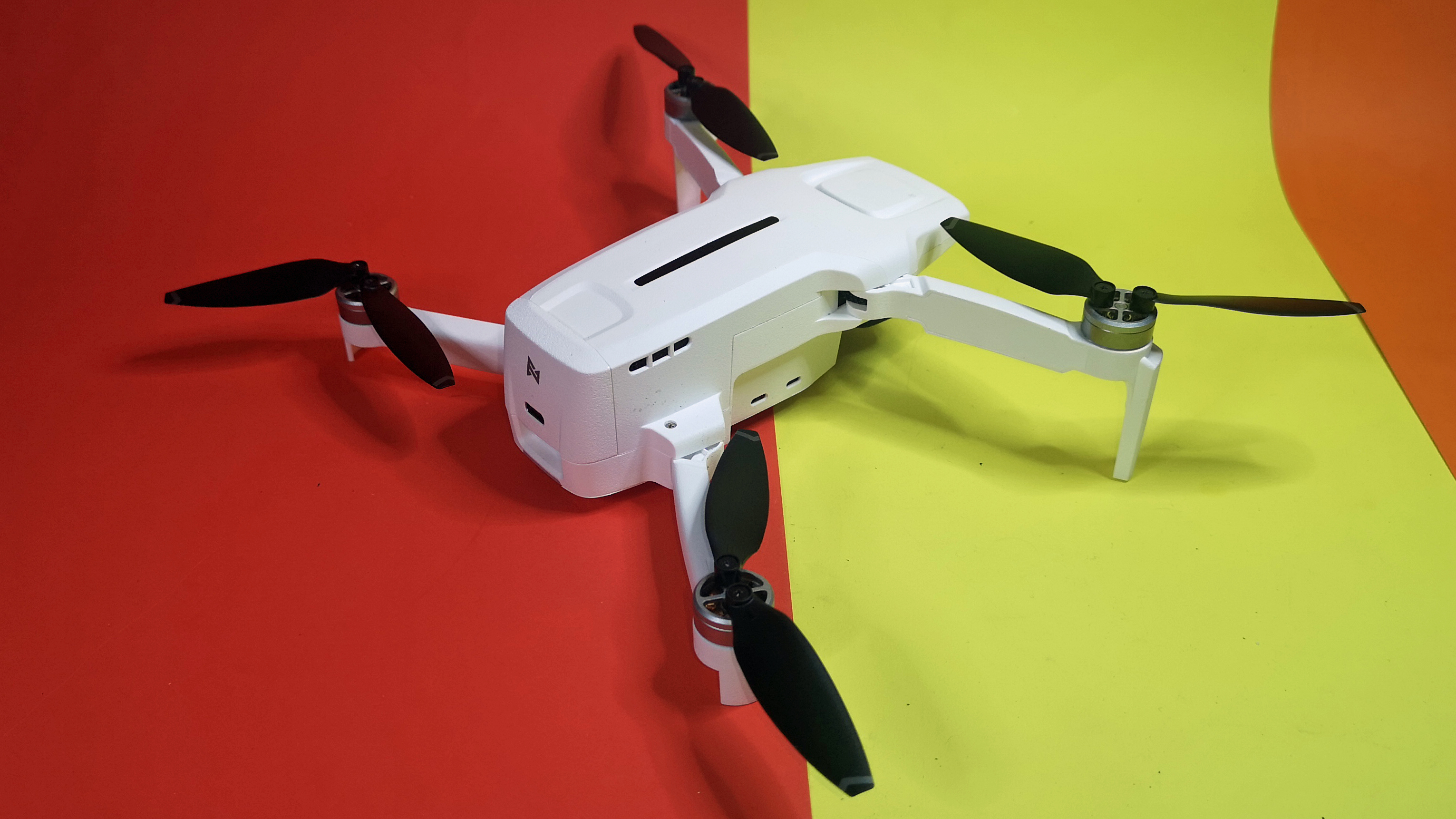 Der Akku wird von hinten in das Modell eingeschoben und kann direkt per USB-C geladen werden. Direkt unter dem Akkuschacht sitzen Speicherkarten-Slot und Micro-USB-Anschluss. Bei den Propellern setzt Fimi ebenfalls auf zweigeteilte Luftschrauben, die direkt mit dem Motor verschraubt werden. Auf ein Schnellwechselsystem wurde verzichtet. Die Propeller verursachen erfreulich wenig Fluglärm und so zieht der Pilot weniger Aufmerksamkeit auf sich.