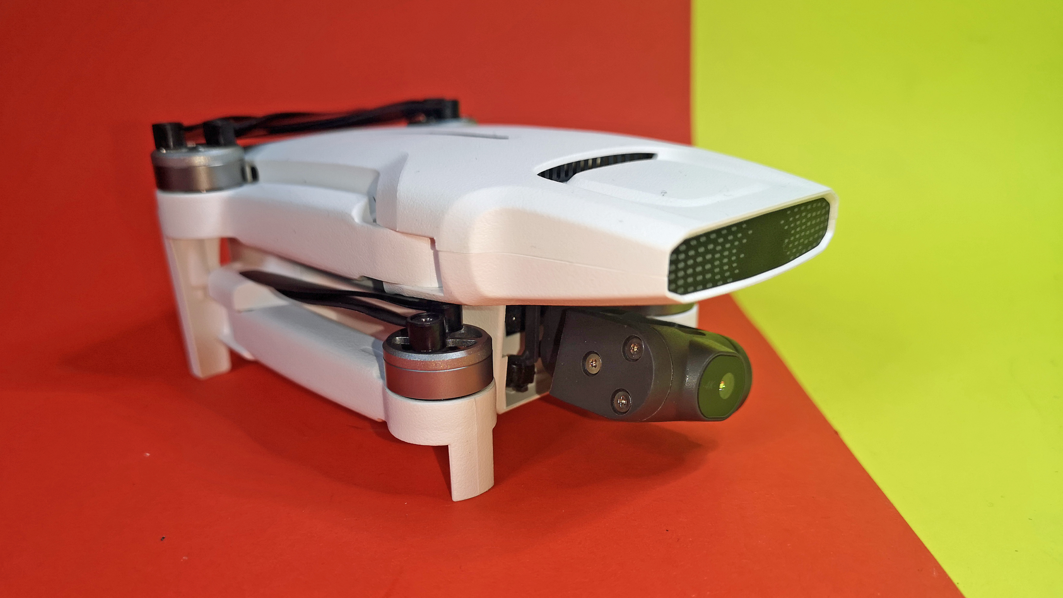 Der nur handtellergroße Multicopter verfügt über vier einklappbare Arme, an, deren Enden die kraftvollen und verschleißfreien Brushless-Motoren sitzen. Die Kamera am unteren Teil der Frontpartie ist an einem Dreiachs-Gimbal zur Bildstabilisierung aufgehängt und während des Transports durch eine Kunststoffabdeckung geschützt.