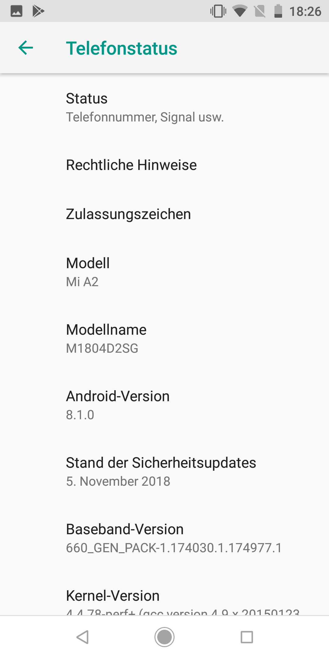 Die Besonderheit des Xiaomi Mi A2 ist sein Betriebssystem: Android One. Im Gegensatz zum normalen Android kommt diese spezielle Ausführung mit einer Garantie für Updates und Upgrades. Reguläre Software-Aktualisierungen sollen auf drei Jahre folgen, neue Versionen soll der Nutzer immerhin zwei Jahre nach der Marktverfügbarkeit (Sommer 2018) erhalten. Derzeit läuft das Testgerät noch mit Android 8.1 Oreo – ein Upgrade auf Android 9 Pie wird in dieser Woche bereits ausgerollt und die ersten Mi-A2-Smartphones aktualisieren. Der Sicherheits-Patch ist vom 1. November.