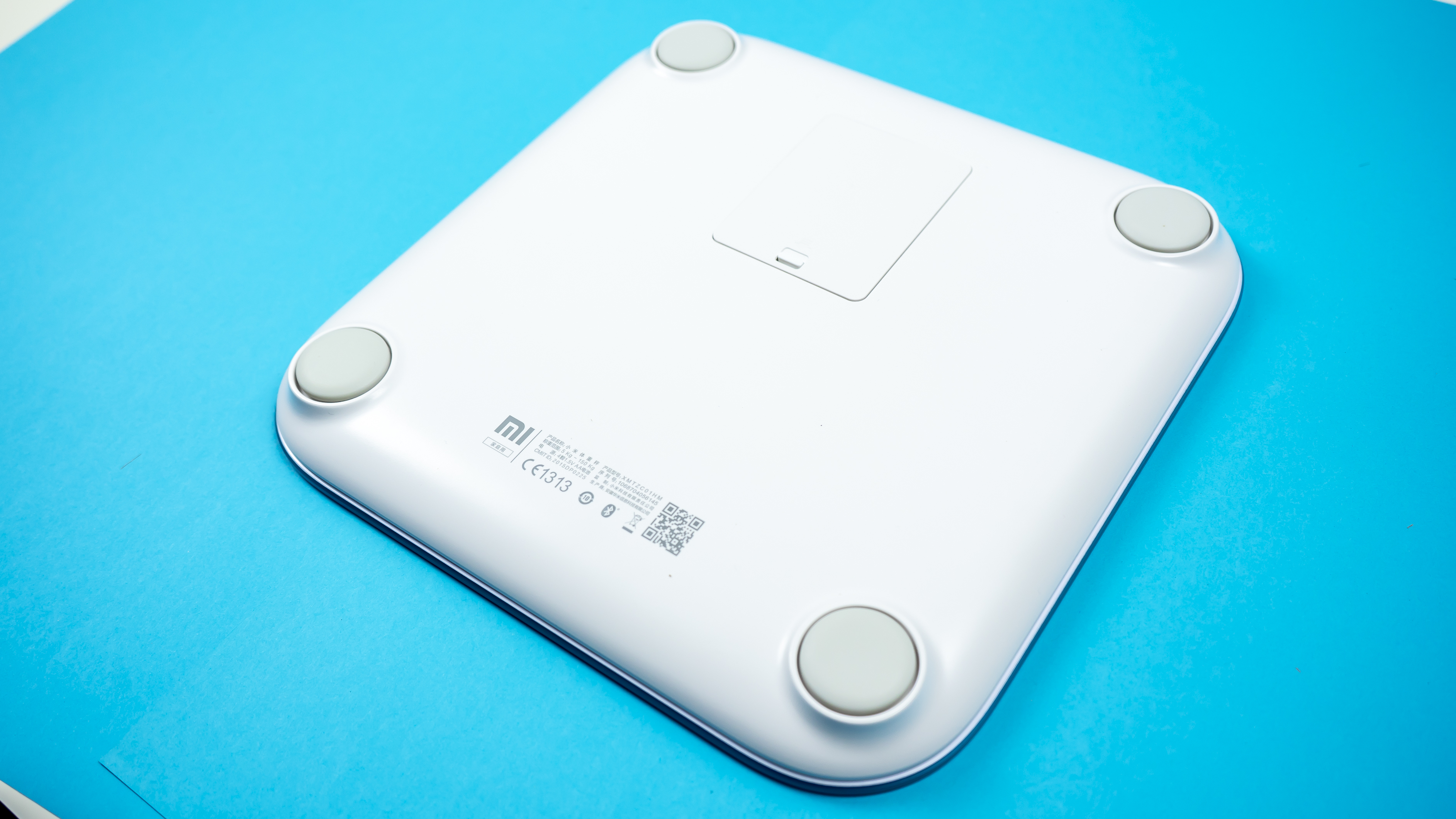 Die Mi Smart Scale ist simpel aufgebaut: das untere Gehäuseteil ist mattweiß und aus hartem ABS -Kunststoff gefertigt. Darüber sitzt die dicke Platte aus widerstandsfähigem Glas, auf die sich der Nutzer hinstellt. Trotz des kleinen Preises ist die Verarbeitung der Mi Smart Scale exzellent.