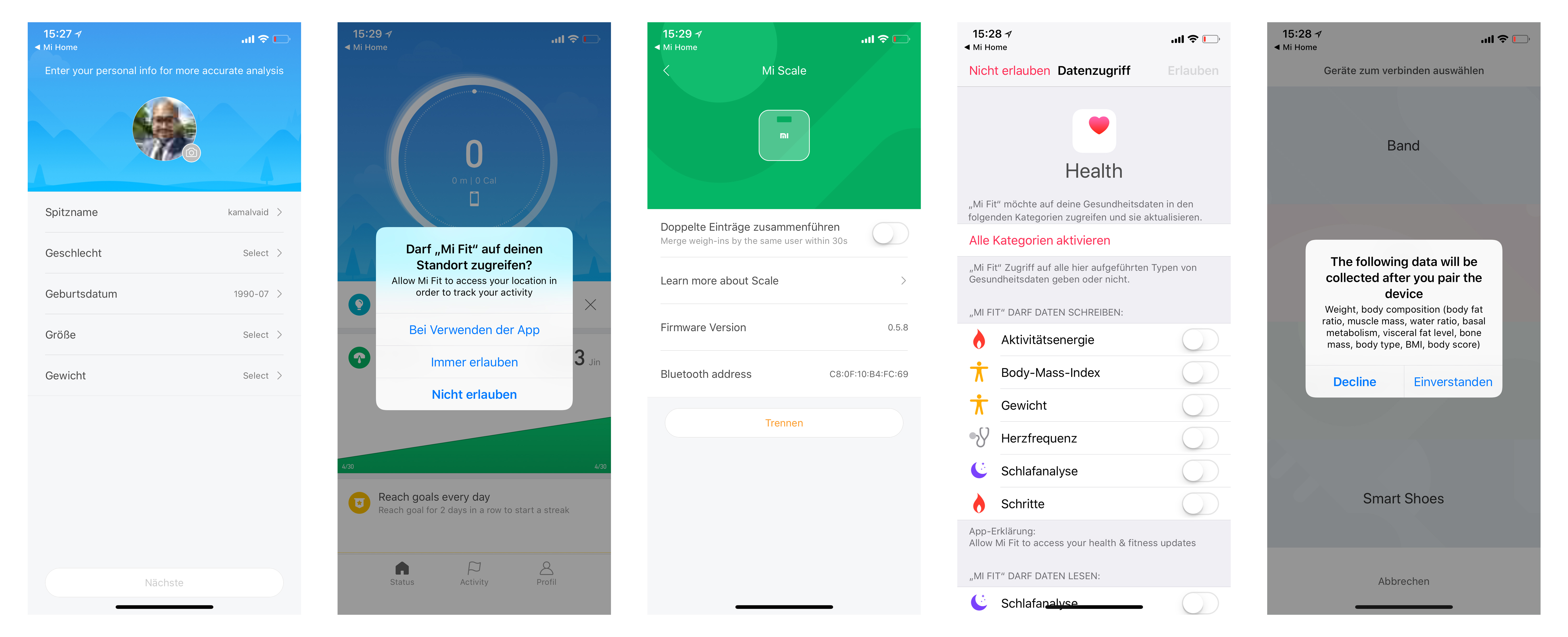 Zum Einrichten und Verwalten der Mi Smart Scale stellt Xiaomi seine kostenlose Fitness-App Mi Fit für Android und iPhone zur Verfügung. Mit dieser nur in Englisch verfügbaren App lassen sich auch weitere Geräte, wie beispielsweise ein Fitness-Band verbinden.