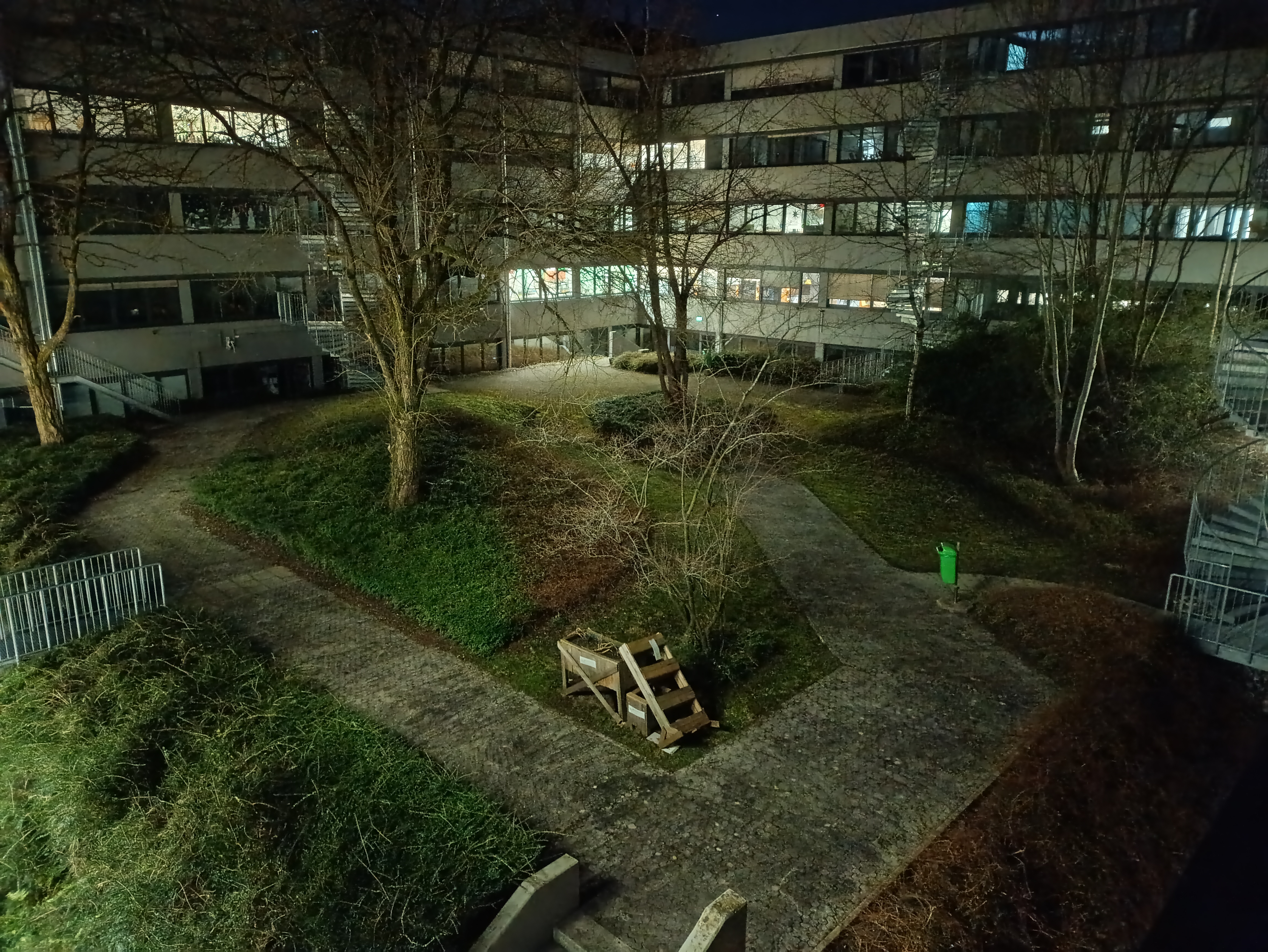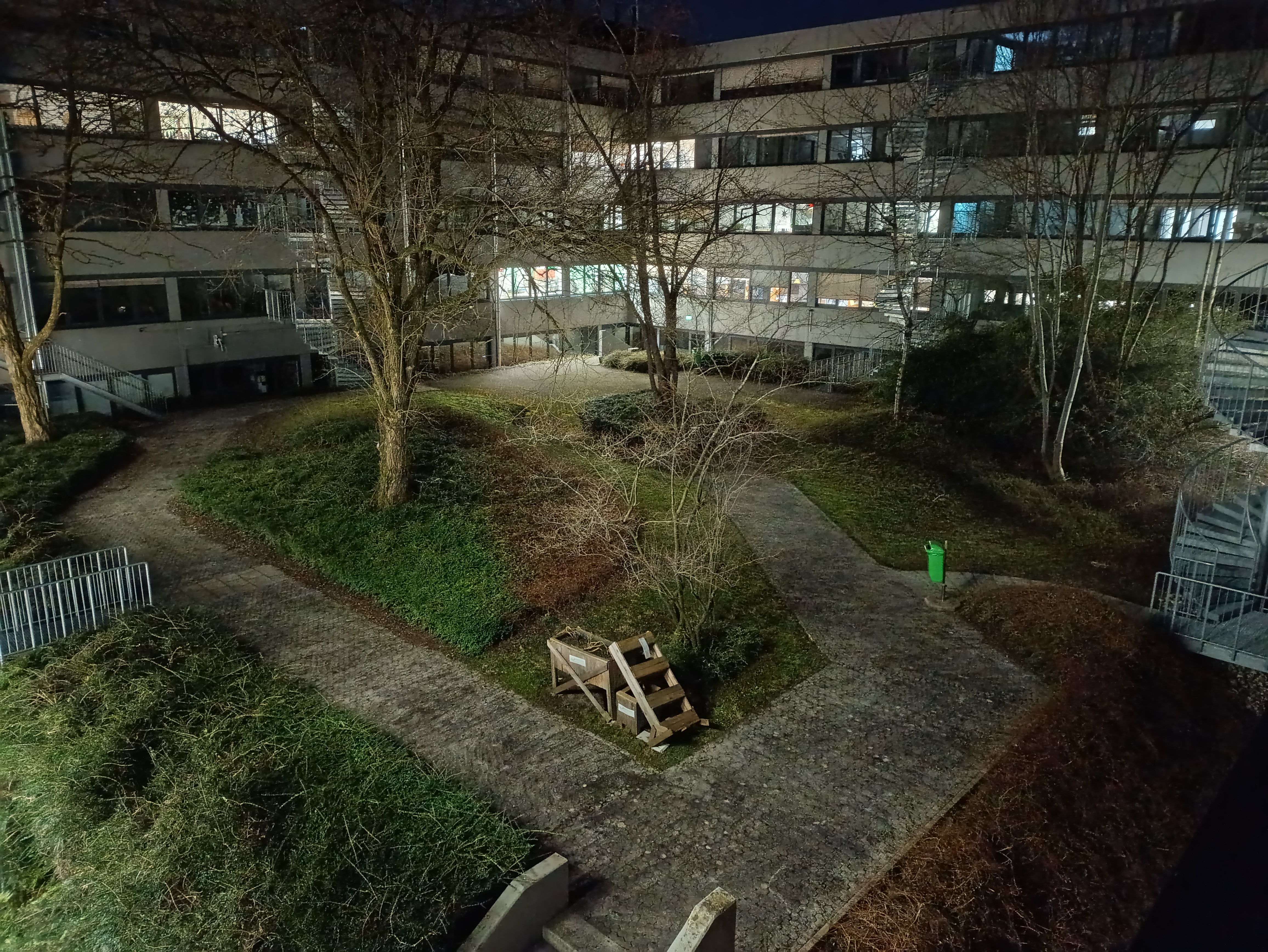 Typisch für die Preisklasse: Bei Dunkelheit nimmt die Qualität der Aufnahmen ab. Solange aber noch genügend Restlicht vorhanden ist, hellt der Nachtmodus die Bilder ordentlich auf. Weitwinkelaufnahmen weichen farblich nur minimal von der Hauptlinse ab und bieten deutlich weniger Bilddetails, sehen aber ebenfalls noch gut aus. Kaum zu gebrauchen ist die Makrolinse aufgrund der niedrigen Auflösung. Selfies sehen dafür sehr überzeugend aus und funktionieren auch mit einem guten Bokeh im Porträtmodus. Videos sind mit der Hauptlinse mit Full-HD bei 60 Frames pro Sekunde (FPS) möglich.