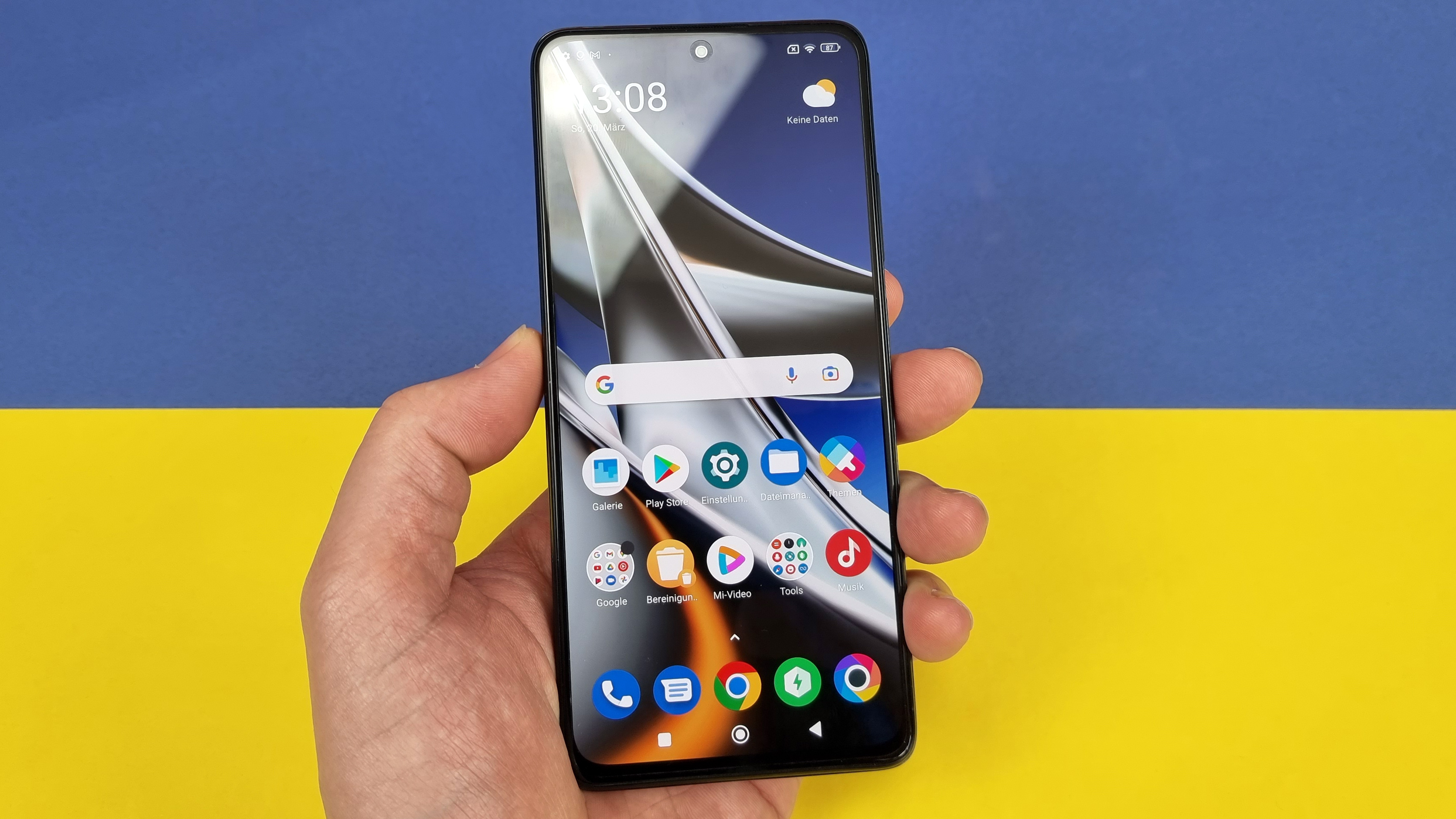 Selbst bei der Helligkeit spart Xiaomi nicht: Im manuellen Modus reicht die bis fast 470 cd/m², der Automatikmodus schafft bei direkter Sonneneinstrahlung sogar fast 800 Candela. Das kommt natürlich nicht ganz an Spitzenmodelle wie das 5x teurere Samsung Galaxy S22 Ultra (Testbericht) heran, ist aber in der Mittelklasse richtig gut. Die restlichen Kriterien wie Kontrast, Schwarzwert und Farbdarstellung sind ebenso wie die Blickwinkelstabilität hervorragend in dieser Preisklasse. Schade ist allerdings, dass Poco, kein vollwertiges Always-on-Display integriert. Mehr als eine 10-sekündige Einblendung von Grunddaten wie Uhrzeit, Datum und Akkustand sowie verpassten Nachrichten geht nicht. Eingehende Nachrichten werden nur als kurze Animation und anschließend als Icons kenntlich gemacht, lassen sich aber nicht lesen.