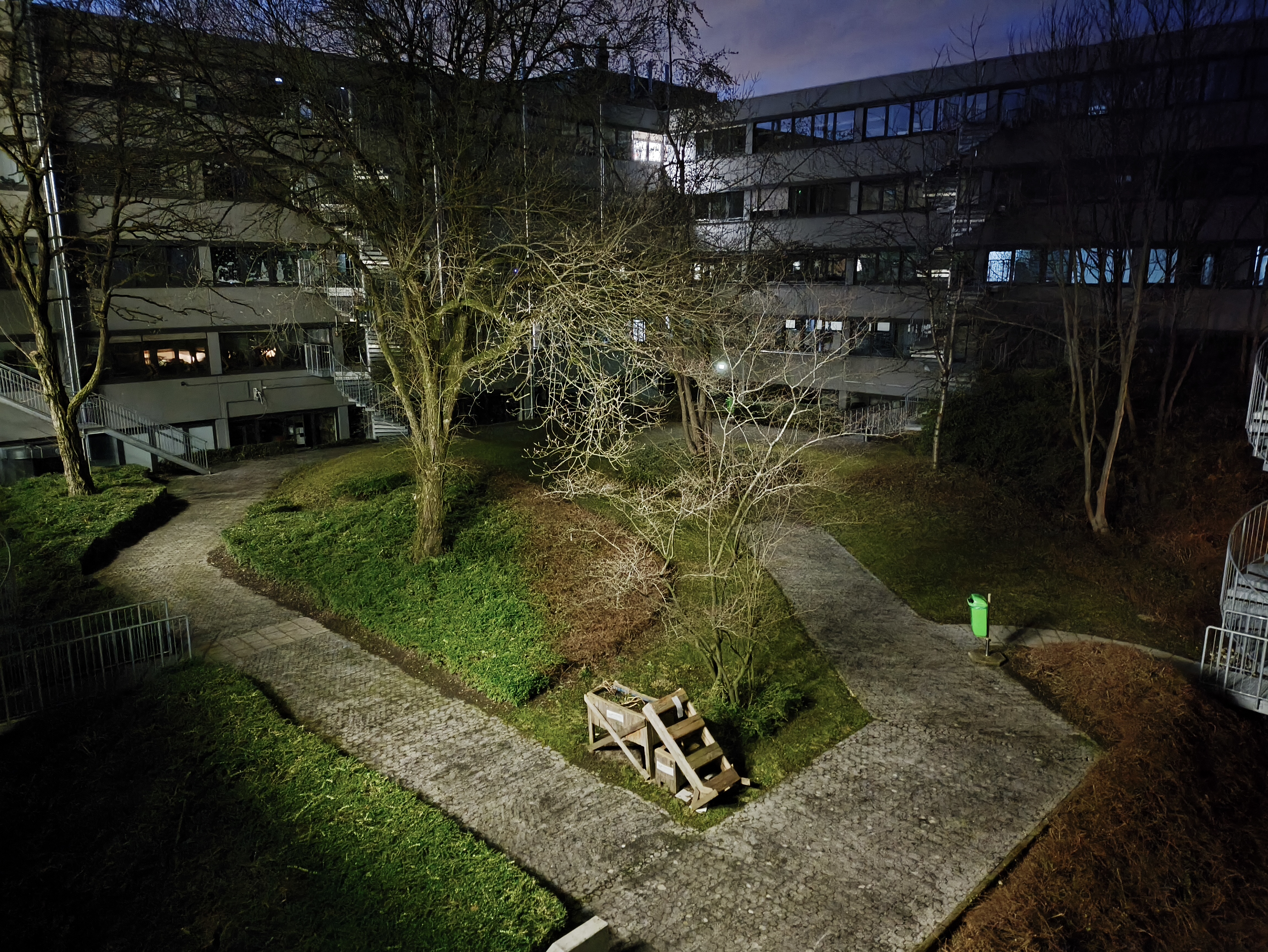 Die Kamera fasst per Pixel Binning vier Pixel zu einem zusammen, sodass die Bilder 16 Megapixeln entsprechen. Auf Wunsch kann man auch die ganze Auflösung von 64 Megapixel abrufen. Der Nachtmodus hellt Aufnahmen effektiv auf. Fotos bei Nacht kommen aber nicht ganz ohne Bildrauschen aus und neigen zu einem leicht rötlichen Stich.