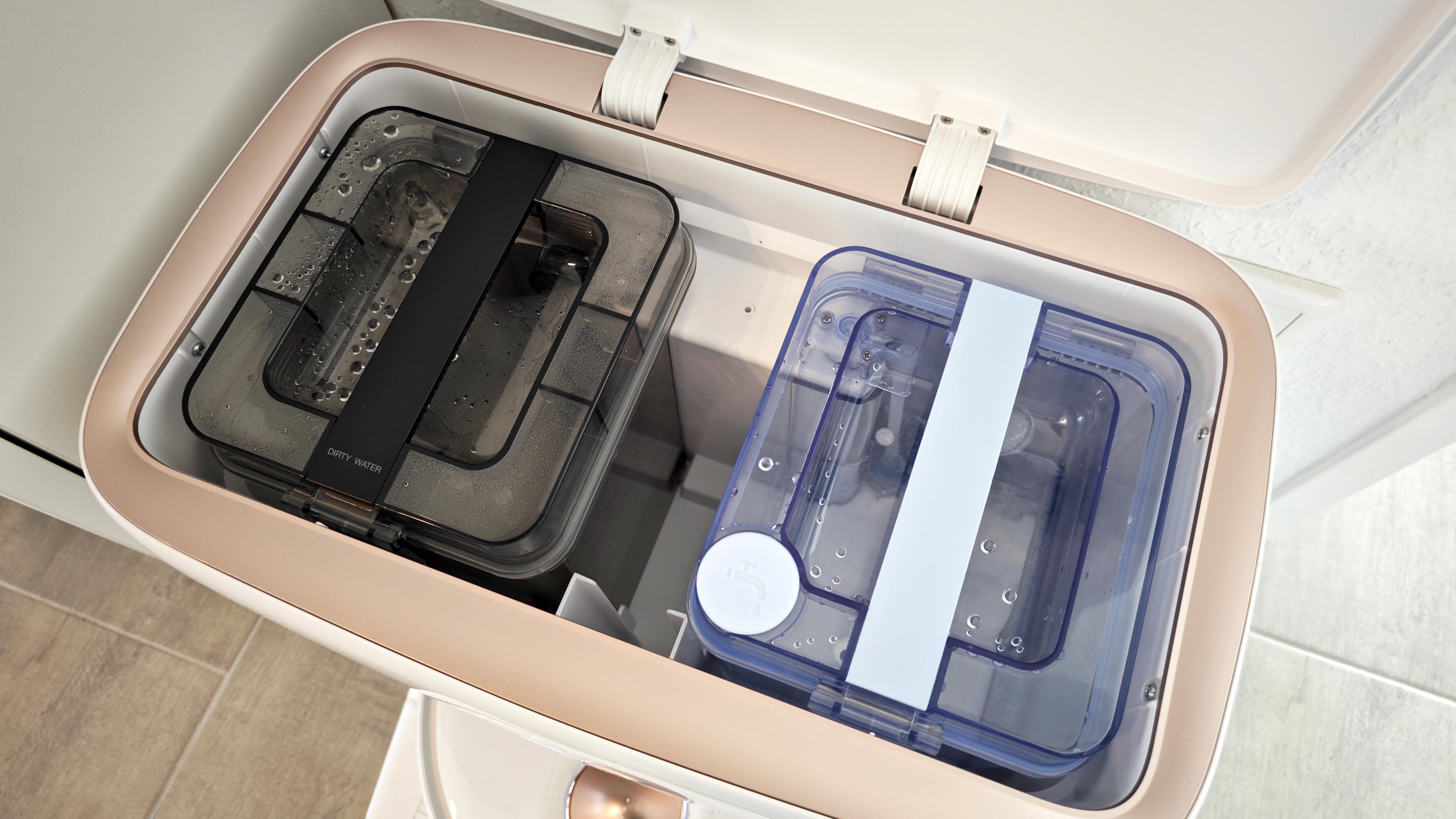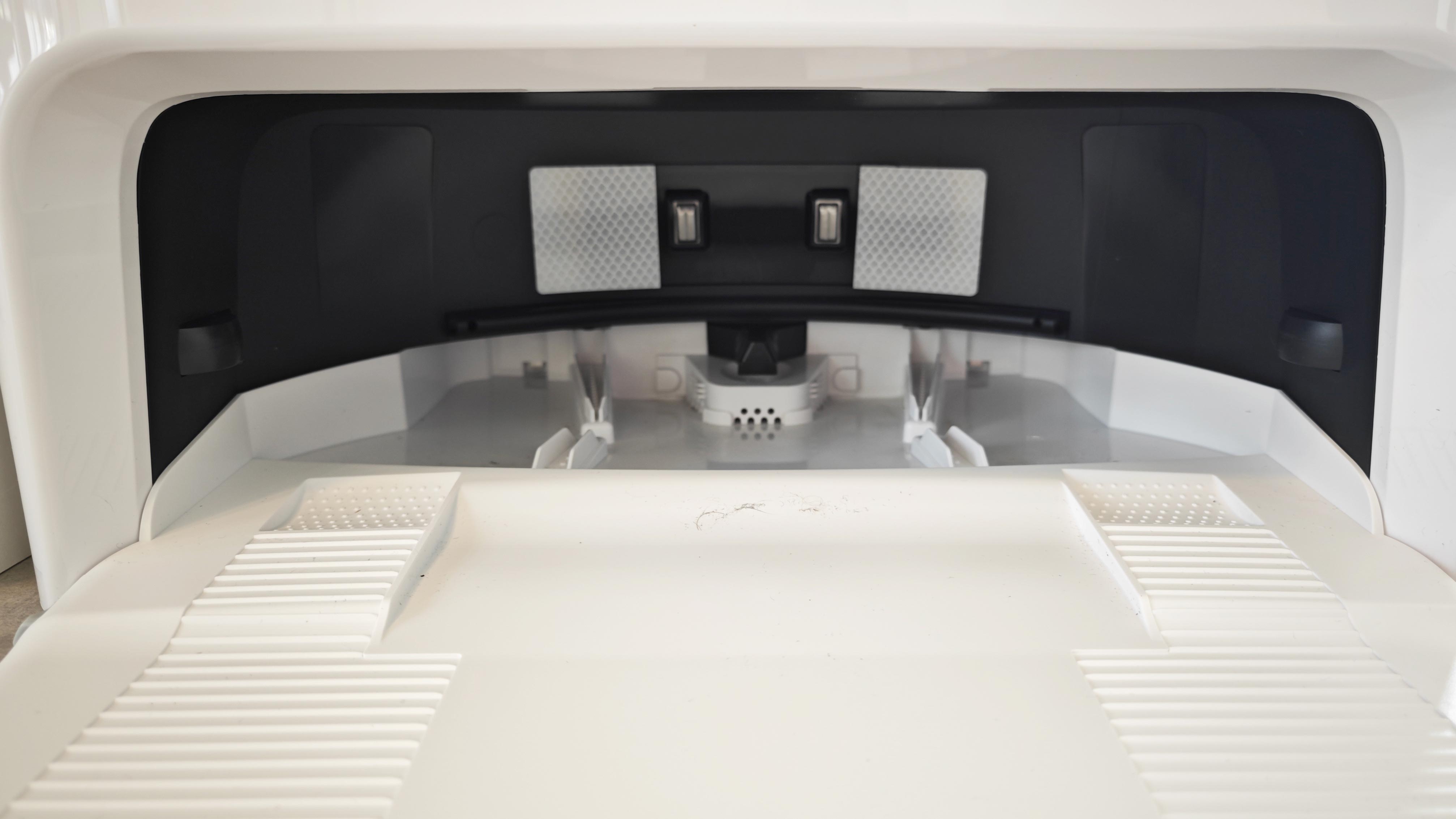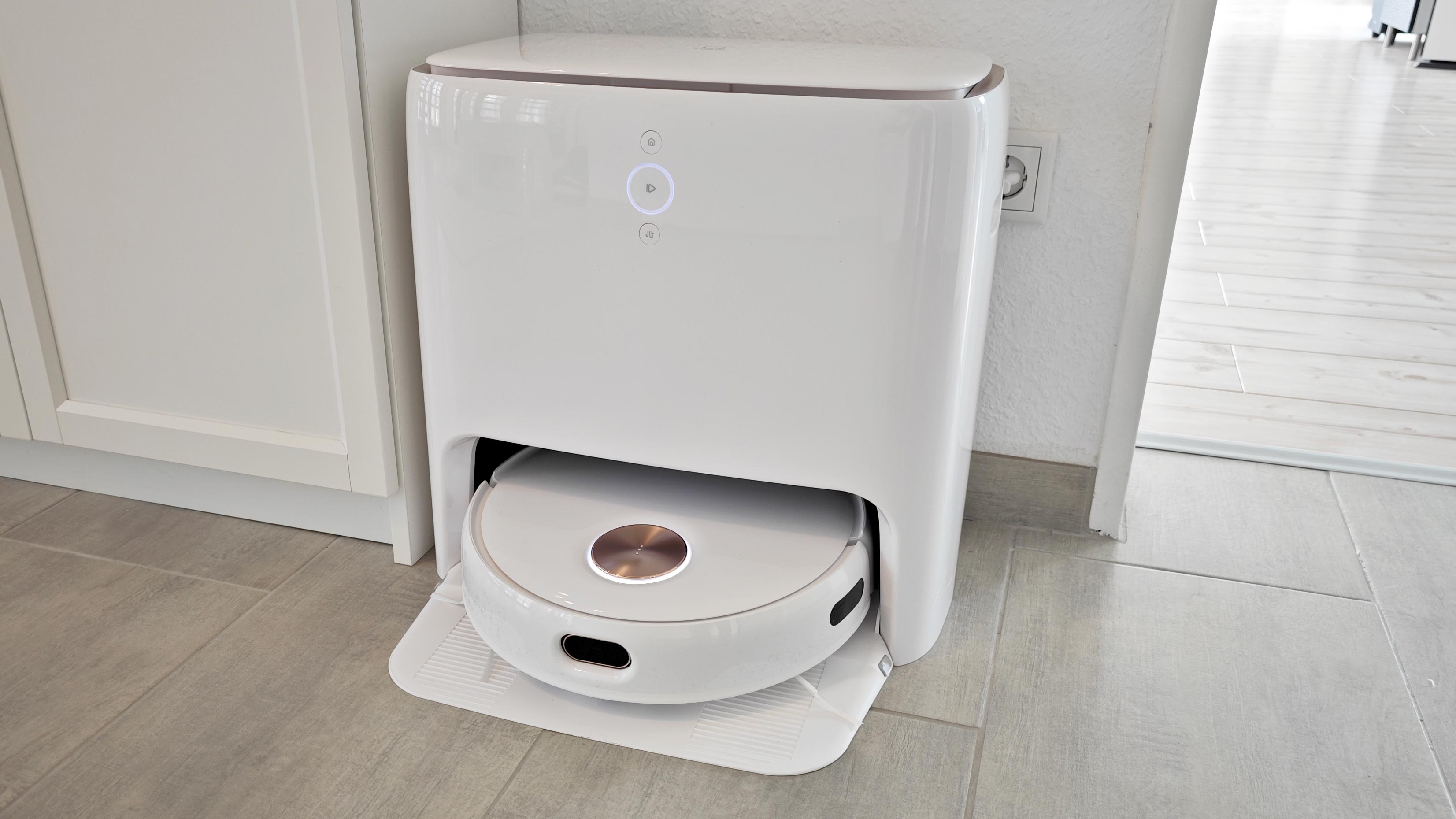 Dennoch: Wenn man sich schon eine vergleichsweise große Station in den Haushalt stellt, sollte die einfach auch alles können. Denn so muss der typische Schmutzbehälter im Roboter trotzdem alle paar Mal per Hand geleert werden, vor allem, wenn Haustiere vorhanden sind. Denn bei großem Haar-Aufkommen verstopft der interne Staubbehälter im Roboter wegen des kleinen Zugangs schnell und nimmt dann keinen weiteren Schmutz mehr auf, obwohl im Inneren des Tanks noch Platz wäre. Außerdem ist da noch der kleine interne Wassertank im Roboter. Der wird von der Station nicht befüllt, sondern will ebenfalls ständig händisch versorgt werden – das ist kontraproduktiv und wurde bei Wettbewerbern wie Roborock längst besser gelöst.
