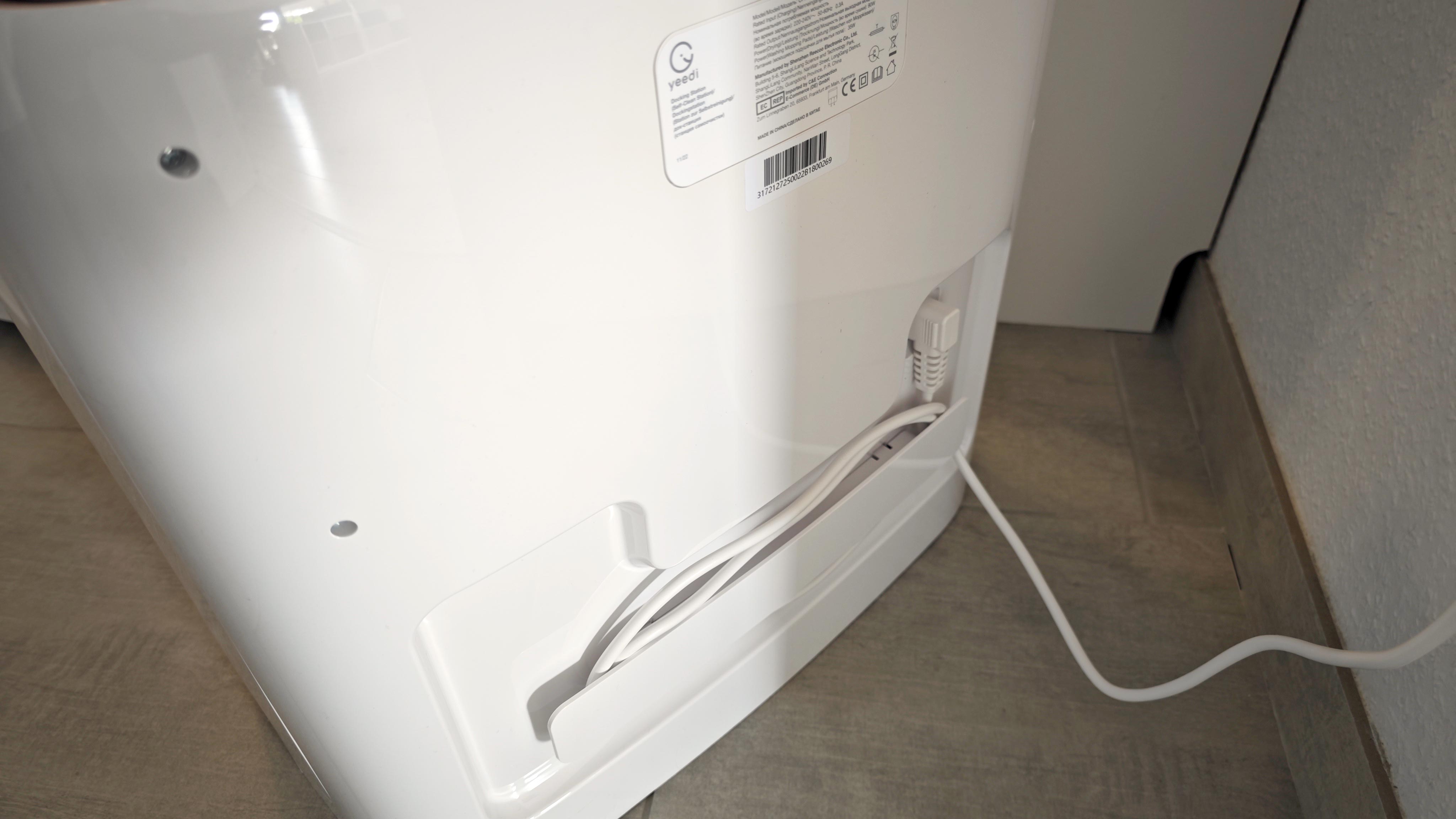 Noch mehr Unterschiede optischer Natur gibt es bei der Station selbst. Wirkte sie bei der Mop Station (Testbericht) noch recht modern, setzt Yeedi wie beim Roboter auf weiche, geschwungene Formen. Das macht das Konstrukt recht elegant. Die bronzefarbenen Elemente gibt es auch hier wieder, zudem installiert der Hersteller auf der Front Bedienelemente. Im Inneren der sehr breiten Station gibt es wieder zwei große, 4 Liter fassende Tanks für Frisch- und Abwasser. Die Wischmopps werden jetzt nach der selbstständigen Reinigung mit warmer Luft getrocknet, beim Vorgänger gab es noch eine kühle Brise. Der Nutzer darf dabei jetzt eine Zeit von 2, 3 oder 4 Stunden vorgeben. Das alles ist weitestgehend wie beim Vorgänger, die Unterschiede sind in erster Linie kosmetischer Natur. Das ist auch gleich der erste Kritikpunkt, denn wir hätten uns die Integration einer Absaugvorrichtung als echte Weiterentwicklung gewünscht.