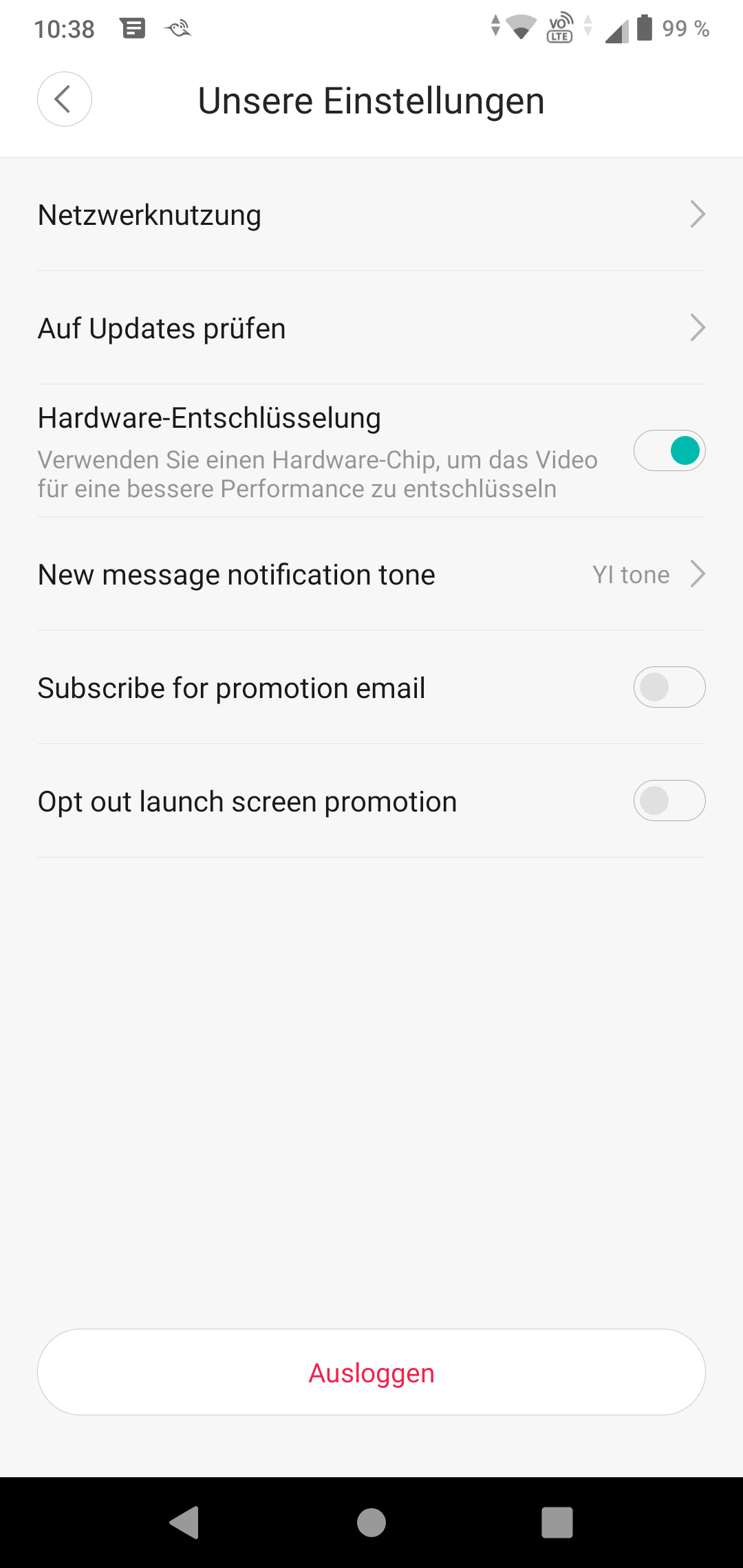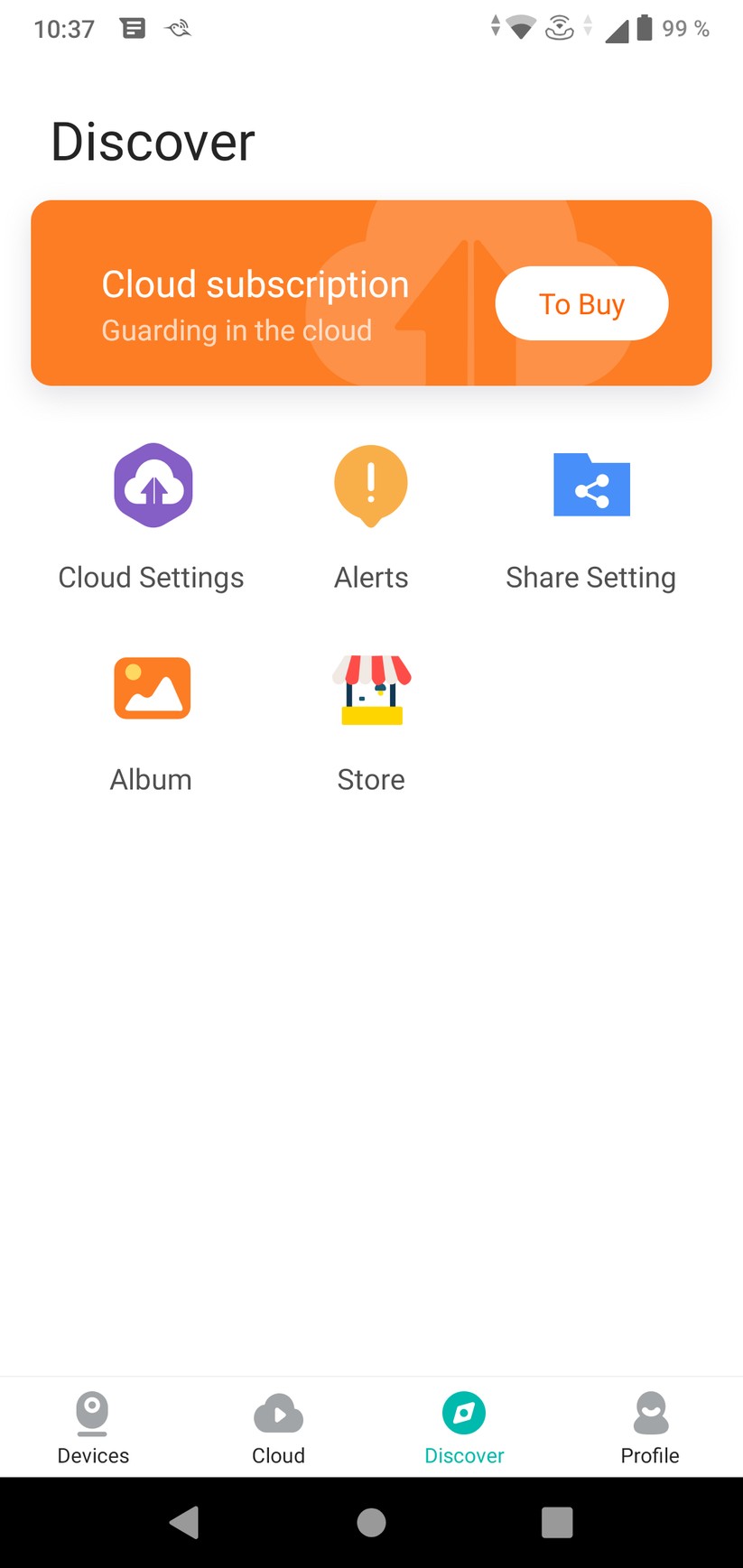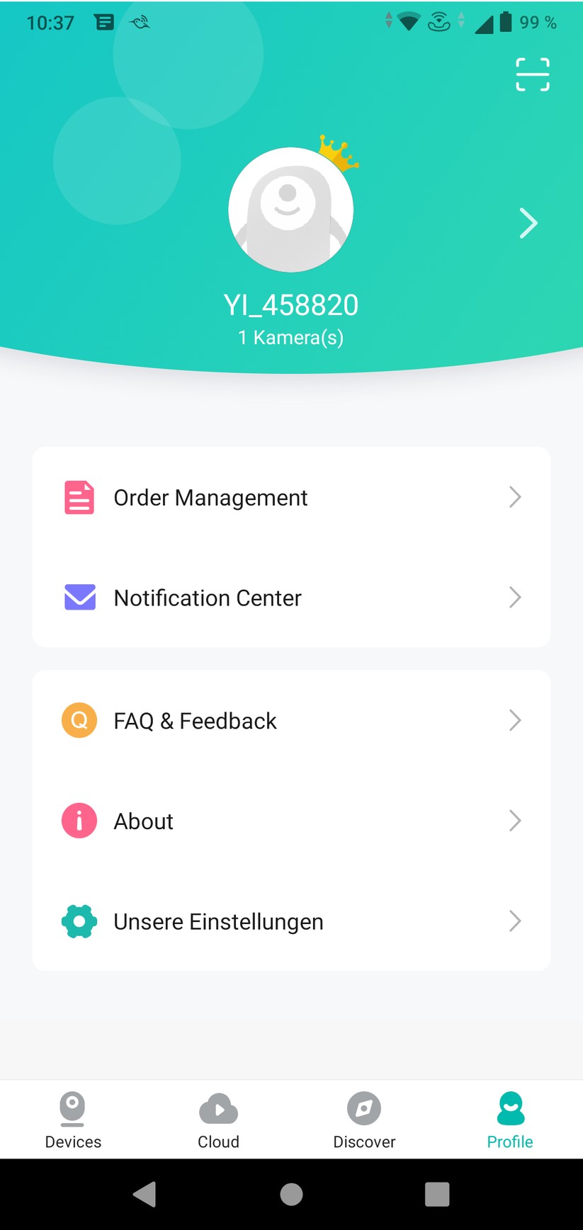 Die YI-Home-App ist einfach und übersichtlich aufgebaut. Auf der Startseite erhält der Nutzer Zugriff auf seine Kameras, Cloud-Aufzeichnungen und sein Nutzerprofil. In letzterem darf sogar noch ein Alarm-Ton eingestellt werden – für eine Funktion wohlgemerkt, die nicht mehr existiert. Die Kamera erlaubt eine zeitlich unbegrenzte Live-Sicht, in der sie motorisch gedreht werden darf. Außerdem sind hier Zwei-Wege-Kommunikation, manuelle Aufnahme von Video und Foto sowie die „Einblendung in anderer App“ möglich. Gemeint ist damit die Einblendung eines Videofensters außerhalb der App, sodass nebenher das Smartphone anderweitig weiterverwendet werden kann.