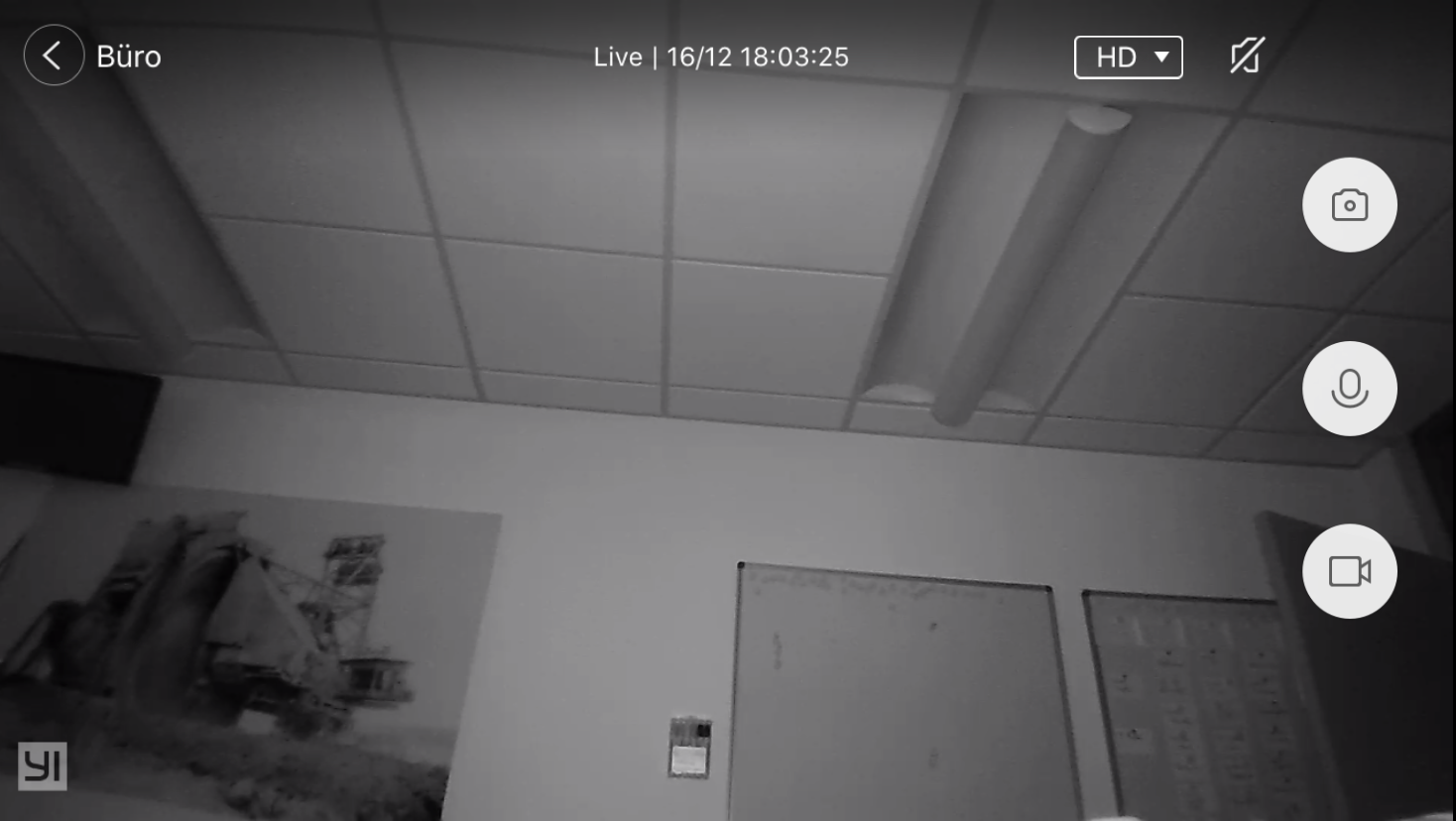 Auch Aufnahmen in SD mit 640 × 360 Pixel sind möglich. Diese sind bei der Yi-Cam bedauerlicherweise zu empfehlen, wenn man regelmäßig Zeiträume aufzeichnen und beispielsweise auf der Micro-SD-Karte speichern möchte. So bleibt Platz für mehr Daten, denn die Kamera lässt nur 32-GByte-Micro-SDs zu. Mit Full-HD-Aufnahmen ist so eine Speicherkarte in gut vier Stunden voll, bei SD-Aufnahmen in gut acht Stunden.