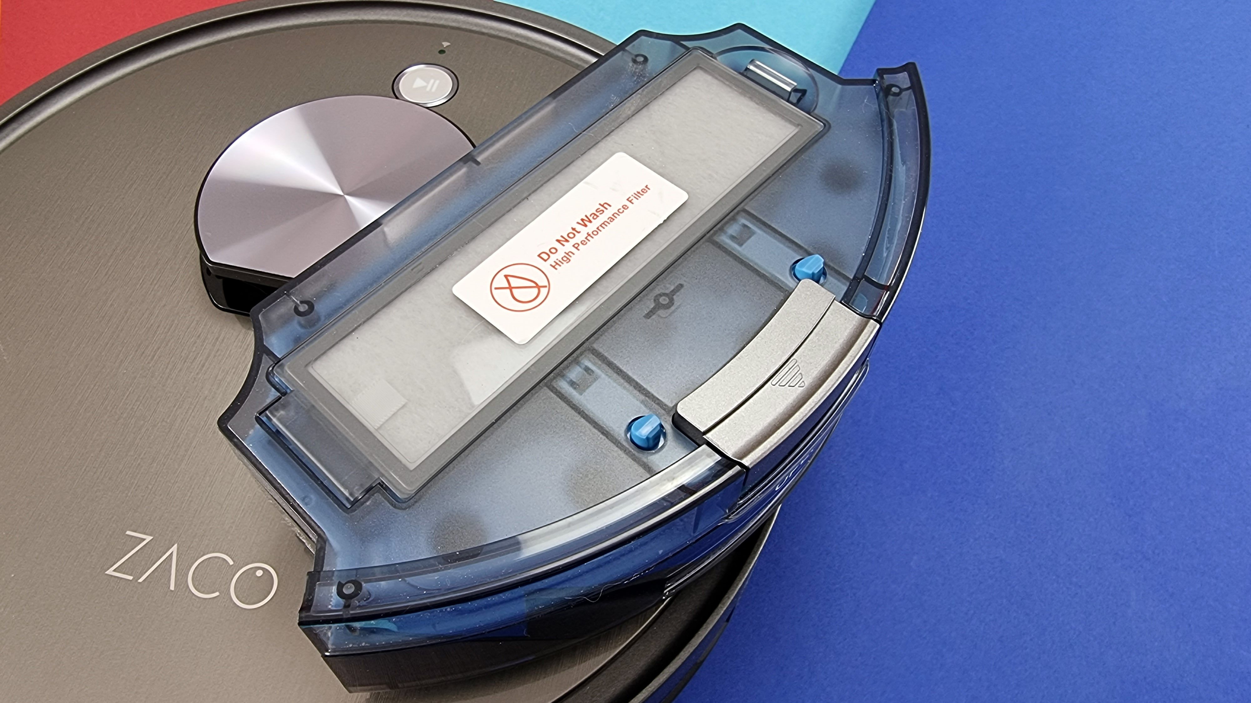 Staub und sonstiger Schmutz landet beim Zaco A10 beim Saugen in einem 450ml großen Staubbehälter. Im Gegensatz zur Konkurrenz handelt es sich dabei nicht einfach nur um eine Box, wo der Dreck hineinfällt, sondern da steckt mehr dahinter. Zaco setzt auf einen zellularen Staubtank, in dem Staub mittels konisch zulaufender Zylinder von grobem Schmutz getrennt wird. Dadurch soll selbst bei vollem Behälter die Saugleistung von Staub und feinem Schmutz nicht beeinträchtigt werden. Auffällig bei der Reinigung: Im Gegensatz zu den meisten Robotern seiner Zunft fährt der Zaco A10 nicht zuerst die Ränder eines Raumes ab. Auch Hindernisse wie Tische werden bei Kontakt nicht erst einmal abgefahren, sondern der Sauger versucht, weiter seine Bahnen zu fahren. Uns hat ein Kantenmodus dennoch gefehlt, auch wenn er letztendlich fast alle Bereiche eines Raumes anzufahren schien. Anfangs gab es allerdings Probleme mit einer Engstelle rings um einen Couchtisch. Später saugte er auch hier. 90-Grad-Ecken mag der runde Staubsaugroboter nicht so gern. Beim Versuch, möglichst nah an ihnen zu reinigen, schlägt er immer zuerst zu früh ein, woraufhin er vom Frontbumper eingebremst wird und einen größeren Bogen fährt. Der ist dann aber zu groß, sodass Schmutz direkt “um die Ecke” immer liegenbleibt.