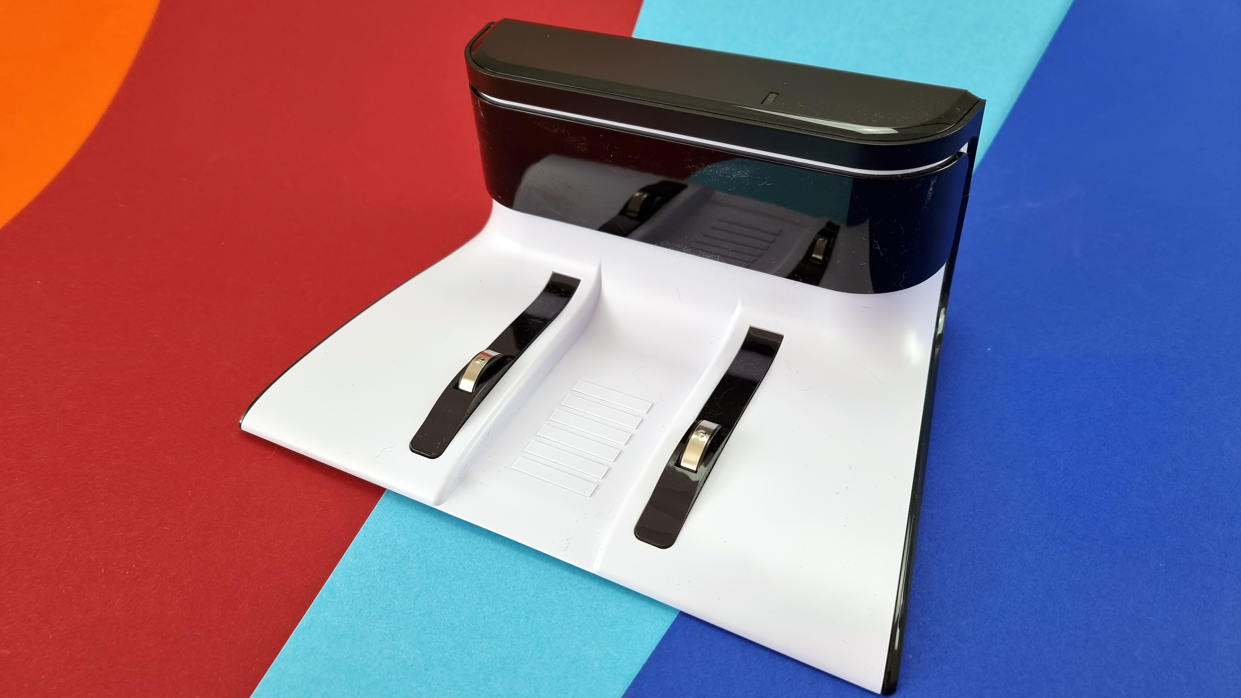Für die Ladestation liegt dem Lieferumfang eine Unterlegmatte bei. Entgegen der ersten Vermutung, dass diese als Schutz für empfindlicher Boden bei eingesetztem Wischaufsatz da ist, dient sie lediglich dem genauen Andocken bei der Rückkehr zum Laden. Ein echtes Kabelmanagement inklusive Aufnahme von zu langem Kabel bietet die Ladestation nicht, immerhin darf der Kunde das Ladekabel ordentlich nach links oder rechts aus der Station verlegen.