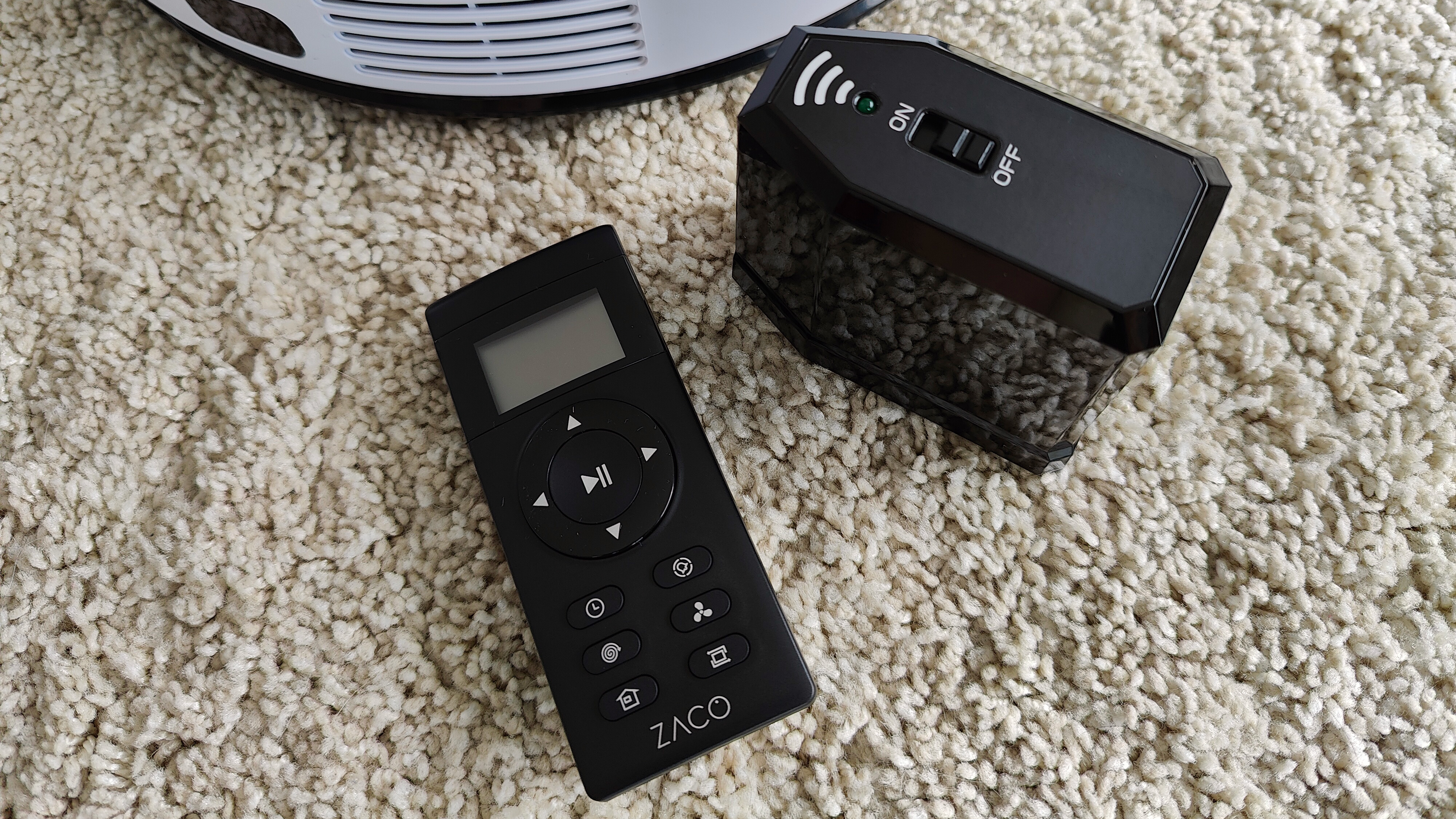 Drei Anmerkungen: Der „Invisible Wall Sensor“ ist (Achtung Scherz) keinesfalls – wie man fälschlich vermuten könnte – unsichtbar, sondern er baut eine unsichtbare „Wand“ auf, die der Sauger nicht passiert. Was Laser-basierte Roboter einfach per Fingerwisch in der App akzeptieren, verlangt vom Nutzer des V6 das Aufstellen des kleinen schwarzen Kastens, für den die passenden Batterien wie für die praktische Fernbedienung im Lieferumfang enthalten sind. Die unsichtbare Wand ist maximal 2,5 Meter lang. Außerdem kann der Zaco V6 rudimentär wischen. Für Allergiker ist das durchaus sinnvoll, eine echte Reinigungsfunktion sollte man von diesem Staubwischen aber nicht erwarten. Die bei Zaco generelle Garantie von 3 Jahren konnte bis Mitte April bei Direktkauf beim Hersteller kostenlos auf 5 Jahre erweitert werden, obendrein gibt es dann 8 statt 2 Staubbeutel dazu.