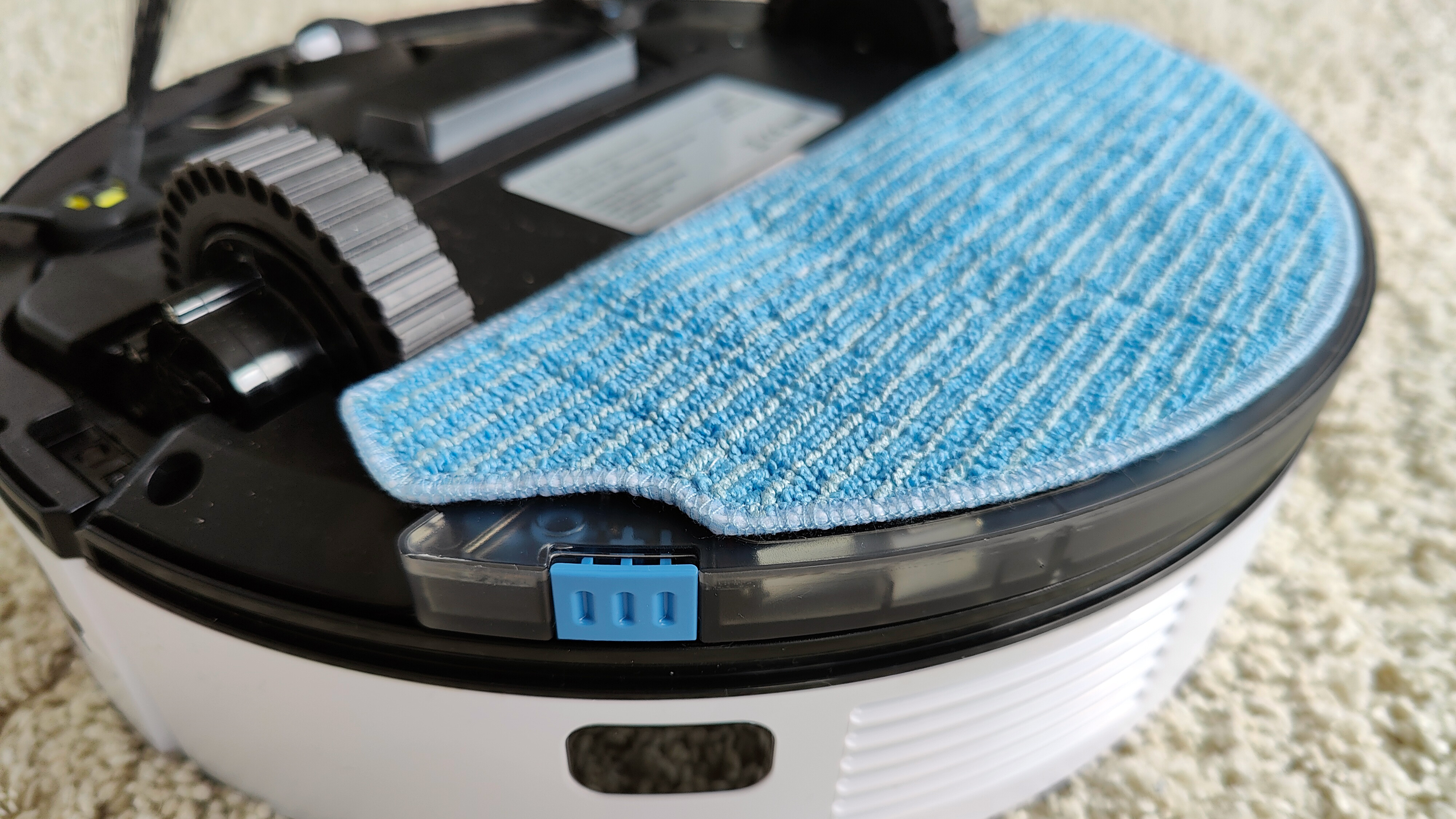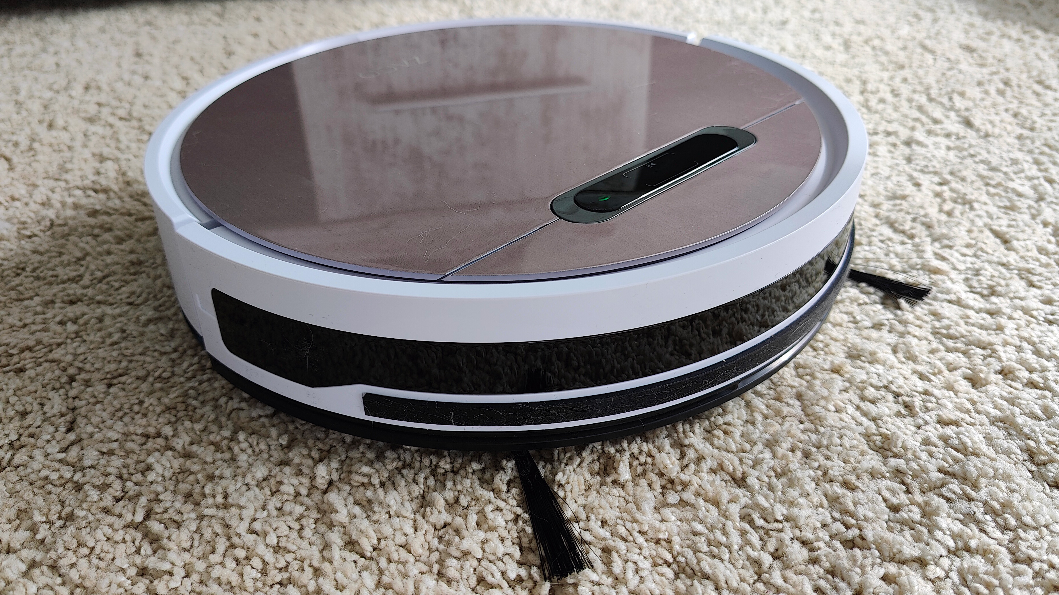 Dabei ist die generelle Navigation ordentlich. Bei Kontakt mit Möbelstücken setzt der Roboter zurück und probiert einen anderen Weg. Zu ruppig ist der Roboter dabei nicht, er fährt insgesamt eher gemächlich und daher mit niedriger Geschwindigkeit vor Hindernisse. Gerade bei vielen Störfaktoren wirkt der einfache Roboter aber schnell etwas konfus und orientierungslos. Bei freier Strecke fährt er hingegen gerade Bahnen. Leichte Schwierigkeiten hatte er bei Teppichen. Ränder mit viel mehr als 1,5 Zentimeter Höhe wollte er nicht zuverlässig überfahren, sondern prallte mit dem Frontbumper dagegen und drehte ab. Mit befestigtem Wischtuch ist das durchaus von Vorteil.