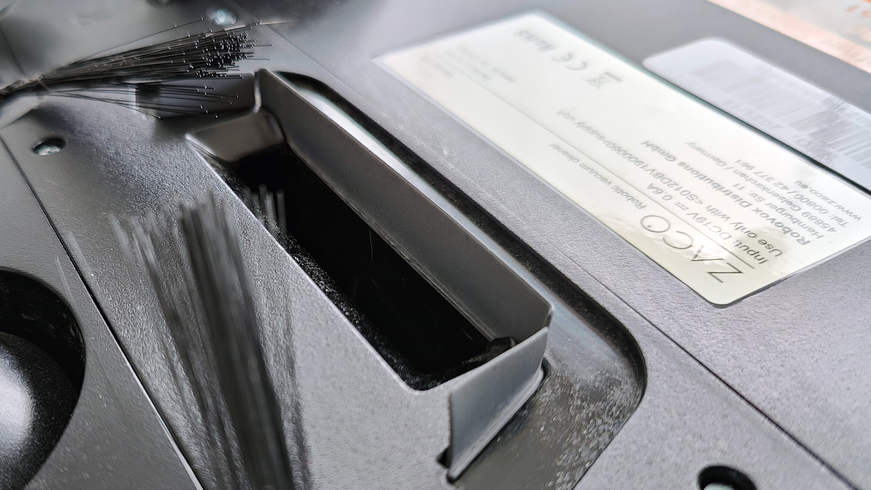 Auf Teppich überzeugte der Zaco V6 in unserem Testparcours nicht. Zwar saugte er von 30 Gramm Sittichfutter und 20 Gramm feinem Vogelsand immerhin 20 und 8 Gramm auf, den Großteil davon aber auf Hartboden und sehr niedrigflorigem Teppich. Der Rest blieb in mittelfloriger Auslegeware weitestgehend unangetastet – kein Wunder ohne Hauptbürste. Zum Vergleich: Ein deutlich teurerer Spitzen-Saugroboter wie der Roborock S7+ (Testbericht) saugte unter gleichen Bedingungen 27 und 13 Gramm auf, der Nachfolger Roborock S7 MaxV (Testbericht) sogar 29 und 15 Gramm. Eine Hauptbürste ist einfach nicht zu ersetzen. Die Argumentation des Herstellers, Tierhaare würden an Borstenbürsten hängen bleiben, ist zwar richtig, auch hier zeigt aber Roborock, wie man die Reinigungsleistung ohne Hängenbleiben und anschließende manuelle Reinigung besser hinbekommt: mit Hauptbürsten aus Gummi.