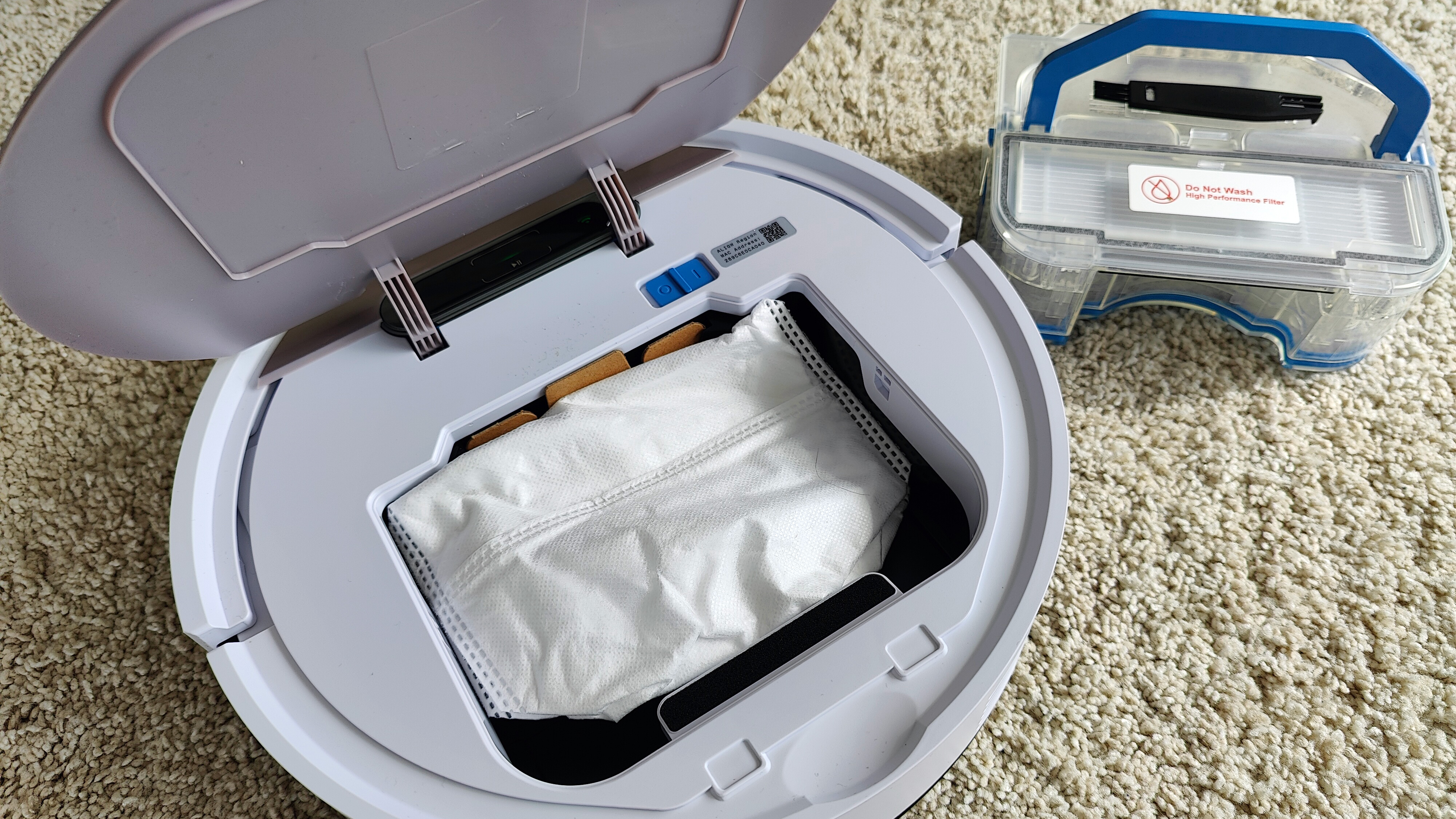 Als Direktzugriffe gibt es die Befehle für Aufladen (zurück zur Ladestation), Start/Stopp und eine virtuelle Fernbedienung. Am oberen Rand wird die Reinigungsdauer und -fläche angezeigt, ein einfaches Symbol zeigt grob die verbleibende Akkuleistung an. Über das Hamburger-Menü (drei waagerechte Striche) oben rechts lassen sich außerdem Reinigungspläne einrichten, findet ein Reinigungsprotokoll und sieht den Wartungsstand des Roboters. Zudem darf der Nutzer hier die Saugleistung per Schieberegler in Prozent einstellen und die Wasserzufuhr beim Wischen in drei Stufen regeln. Das war es im Wesentlichen. Da der Roboter nicht sprechen, sondern nur wie ein Gameboy piepsen kann, entfallen selbst Spracheinstellungen. Die Einbindung in Amazons Alexa und Google Assistant erfolgt über die Apps der beiden Anbieter.