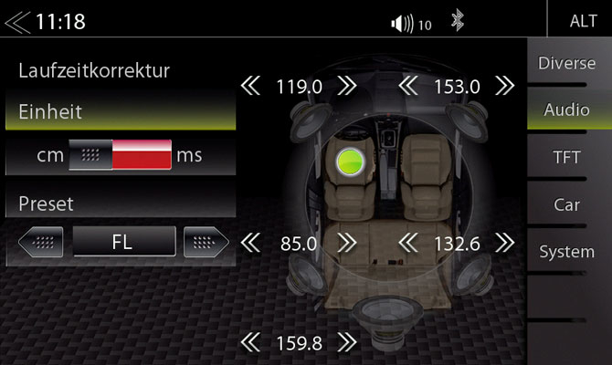 Allein die Erwähnung eines Equalizers lässt Hifi-Enthusiasten die Haare zu Berge stehen, die meisten Nutzer werden so eine Möglichkeit der Klanganpassung hingegen zu Recht begrüßen. Dank Möglichkeiten wie Laufzeitkorrektur bis zu 10 Millisekunden und DSP klang die Anlage unseres Testfahrzeugs im Zusammenspiel mit dem im Zenec-Gerät eingebauten 4 × 45 Watt-Verstärker gleich viel wuchtiger als zuvor. Im Pro-Modus des DSP-Menüs dürfen sogar Übergangsfrequenzen für einen Subwoofer (Lowpass-Filter) und vieles mehr festgelegt werden. Selbst die Klangqualität via Bluetooth ist beeindruckend.