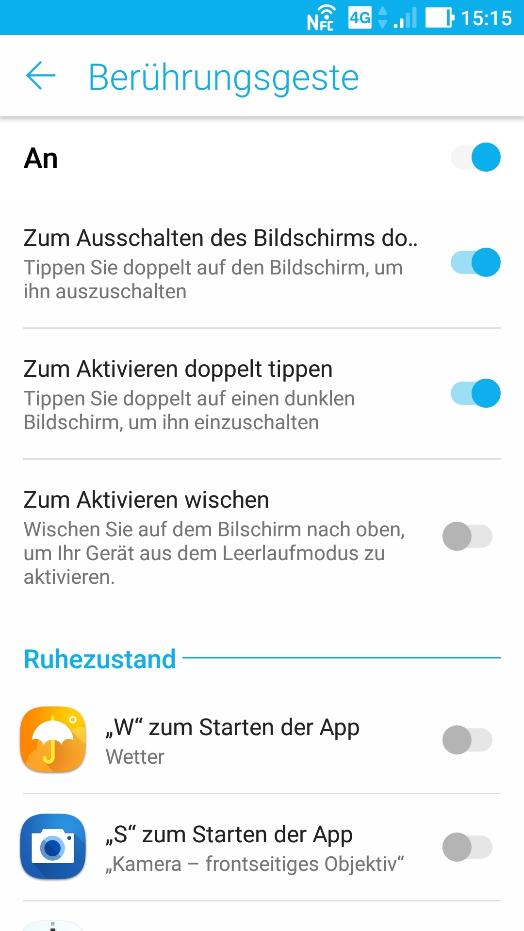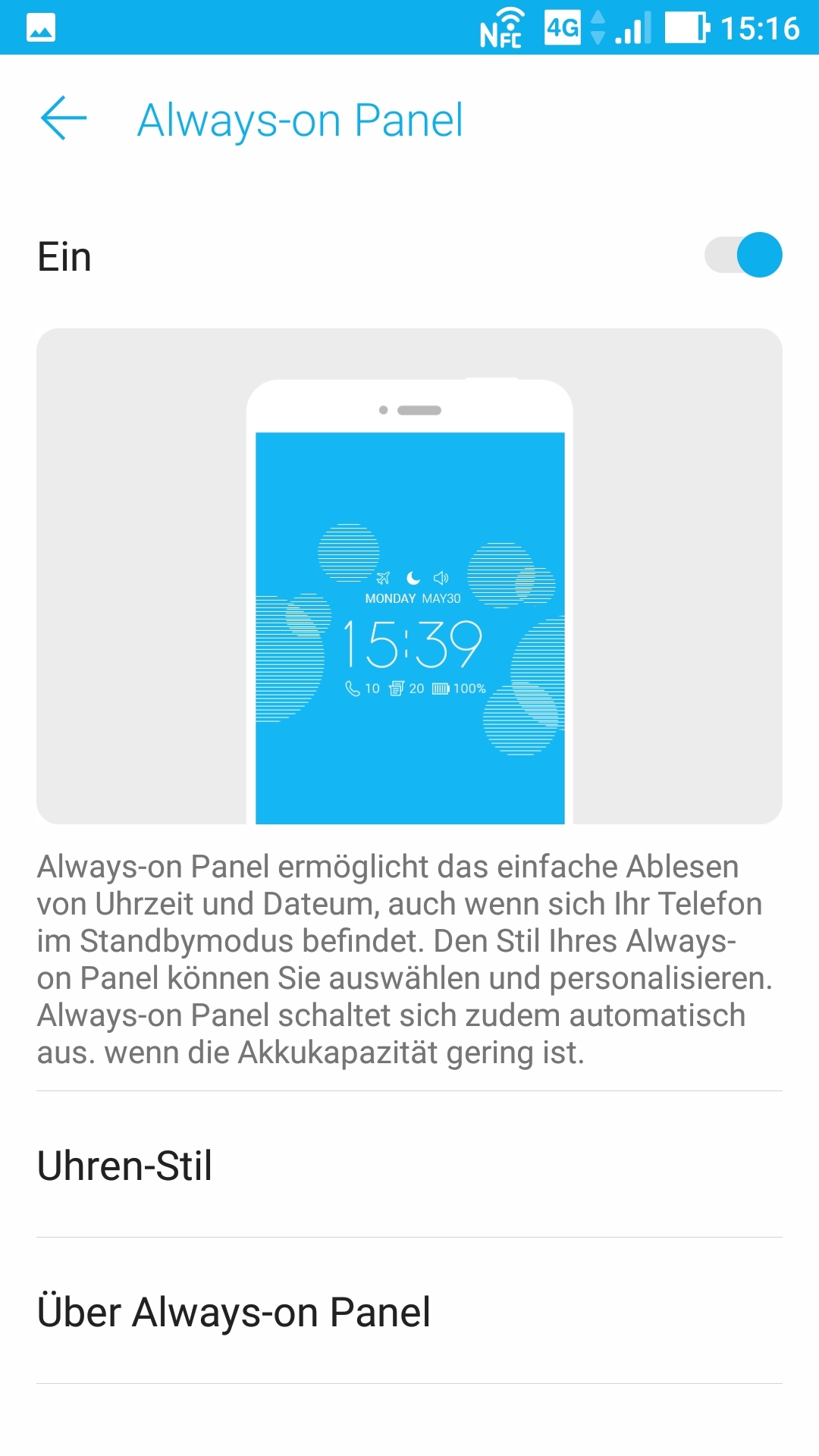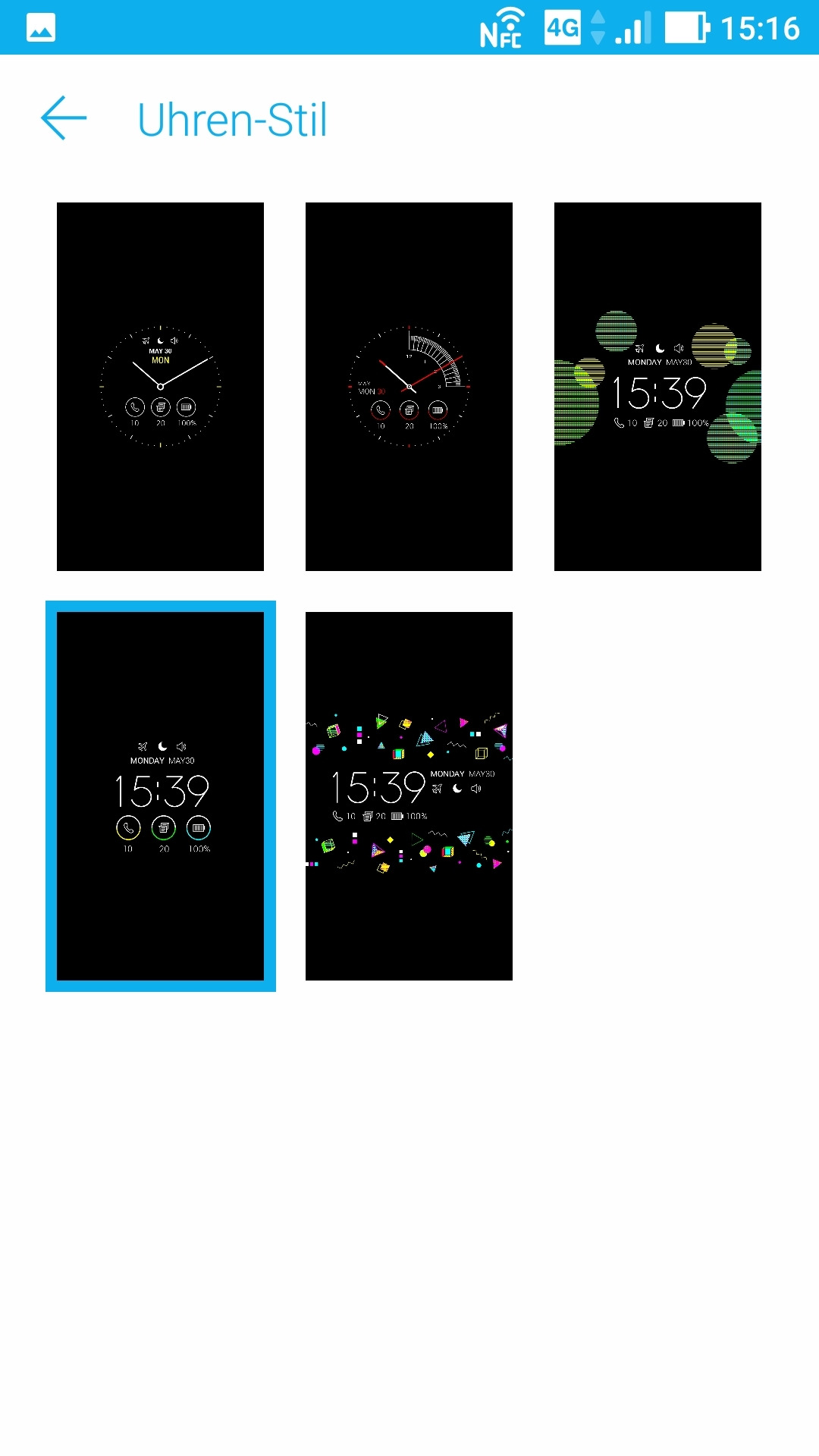 Asus installiert neben einigen Spielen auch einige Apps vor, einen großen Mehrwert bieten diese in unseren Augen allerdings nicht. Nützlich ist hingegen die Möglichkeit Uhrzeit und entgangene Anrufe und SMS bei ausgeschaltetem Display auf dem Bildschirm ablesen zu können. Bei diesem Always-On-Feature hat der Nutzer die Auswahl zwischen mehreren Uhren-Designs.