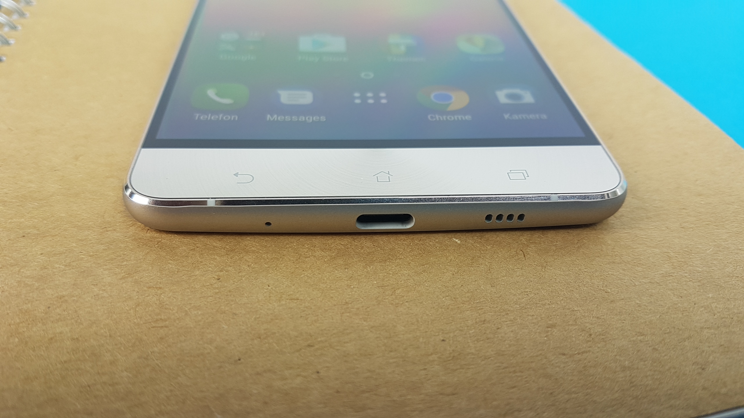 In Sachen Design und Haptik ist das Zenfone 3 Deluxe ein Premium-Smartphone, keine Frage. Gerade haptisch bin ich von dem Gerät sehr angetan – ich kann mich nicht dran erinnern, wann ich das letzte Mal einen solchen Handschmeichler in den Fingern hatte. Das Unibodygehäuse zeigt sich trotz Fertigung aus Aluminium auch nicht zu rutschig. Vor allem die geringe Bauhöhe – diese liegt an der schmalsten Stelle bei 4,2 Millimeter – und die Schliffkante an den Außenrändern der Rückseite dürften ihren Teil zur tollen Haptik beitragen. Das Teil liegt einfach klasse in der Hand.