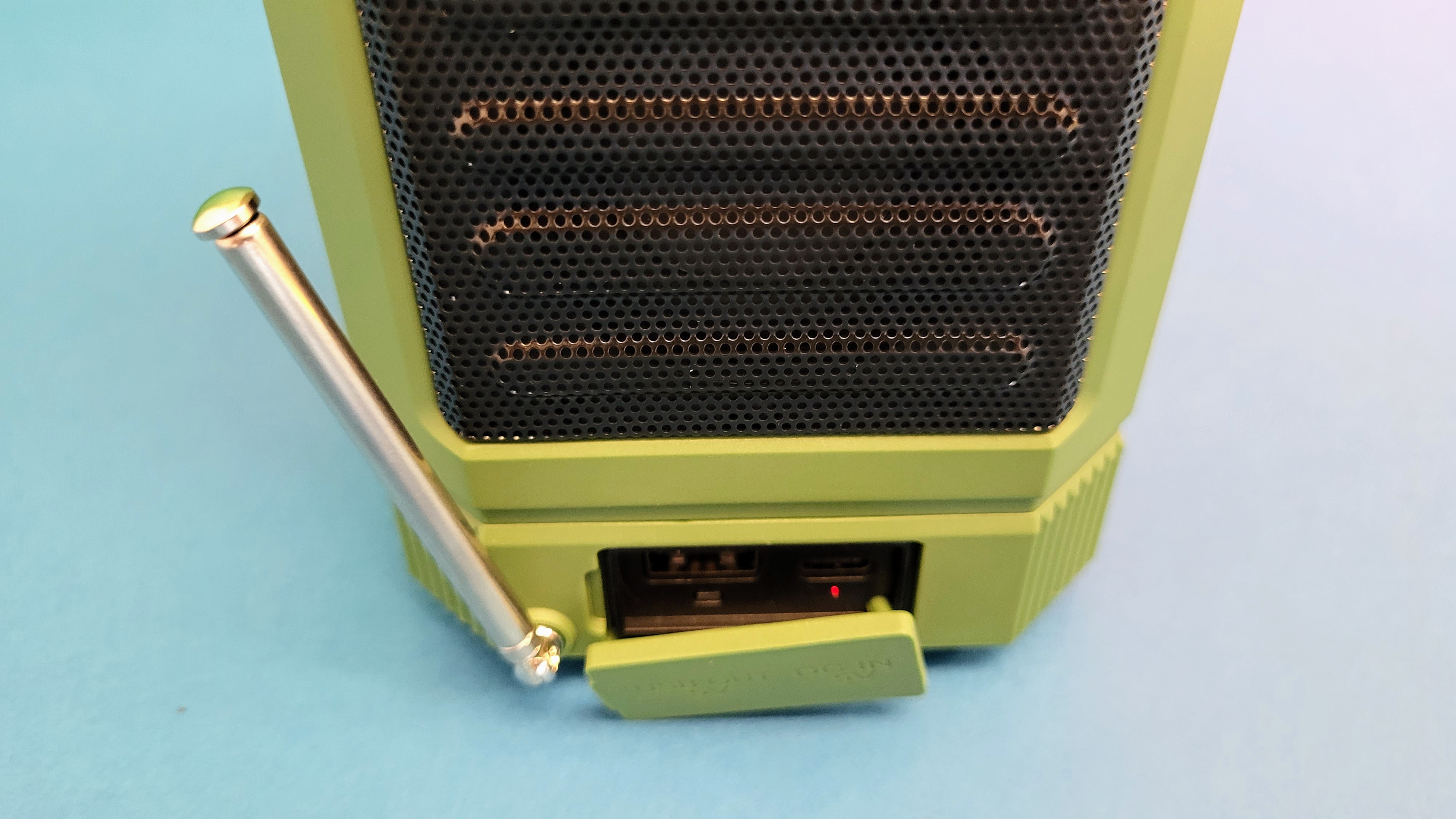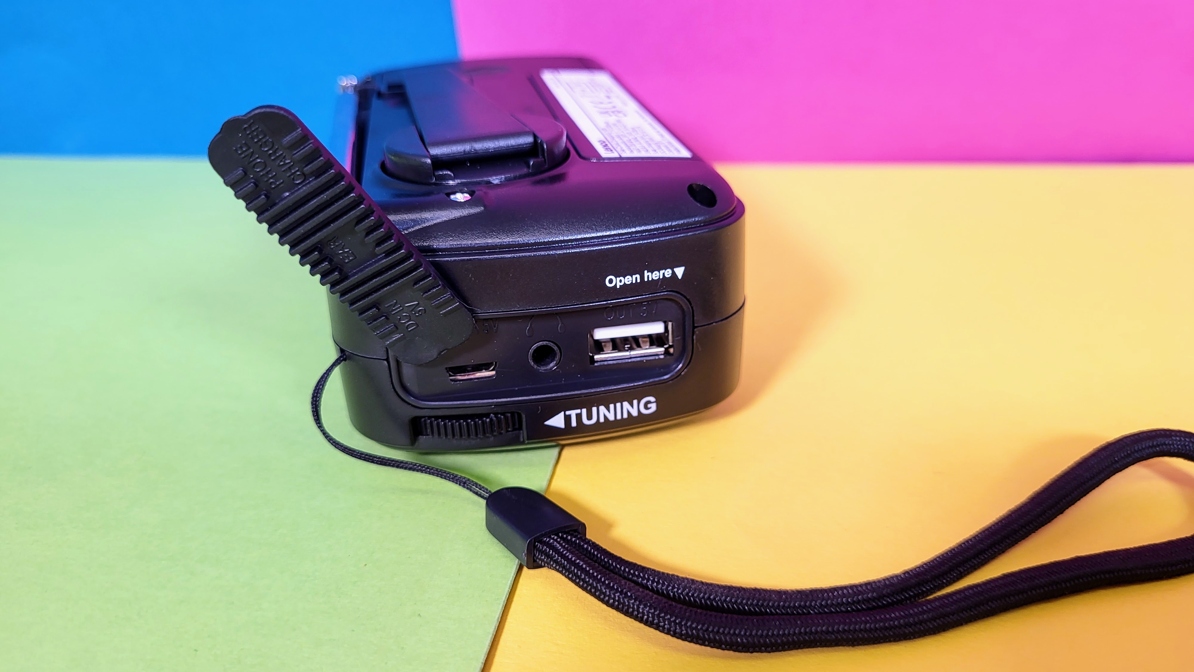 Das Solarpanel ist winzig und erzeugt nur wenig Energie. Hilfreicher ist hier schon die Kurbel, wobei diese sehr kurz ist und nicht besonders ergonomisch in der Hand liegt. Der interne Akku kann zudem über den Micro-USB-Anschluss aufgeladen werden, ein Anschlusstyp, der nicht mehr ganz zeitgemäß ist. Neben dem Akku mit 5000 mAh kann das Radio auch mit drei AAA-Batterien betrieben werden, was es besonders flexibel macht. Eine Powerbank-Funktion ist ebenfalls vorhanden.