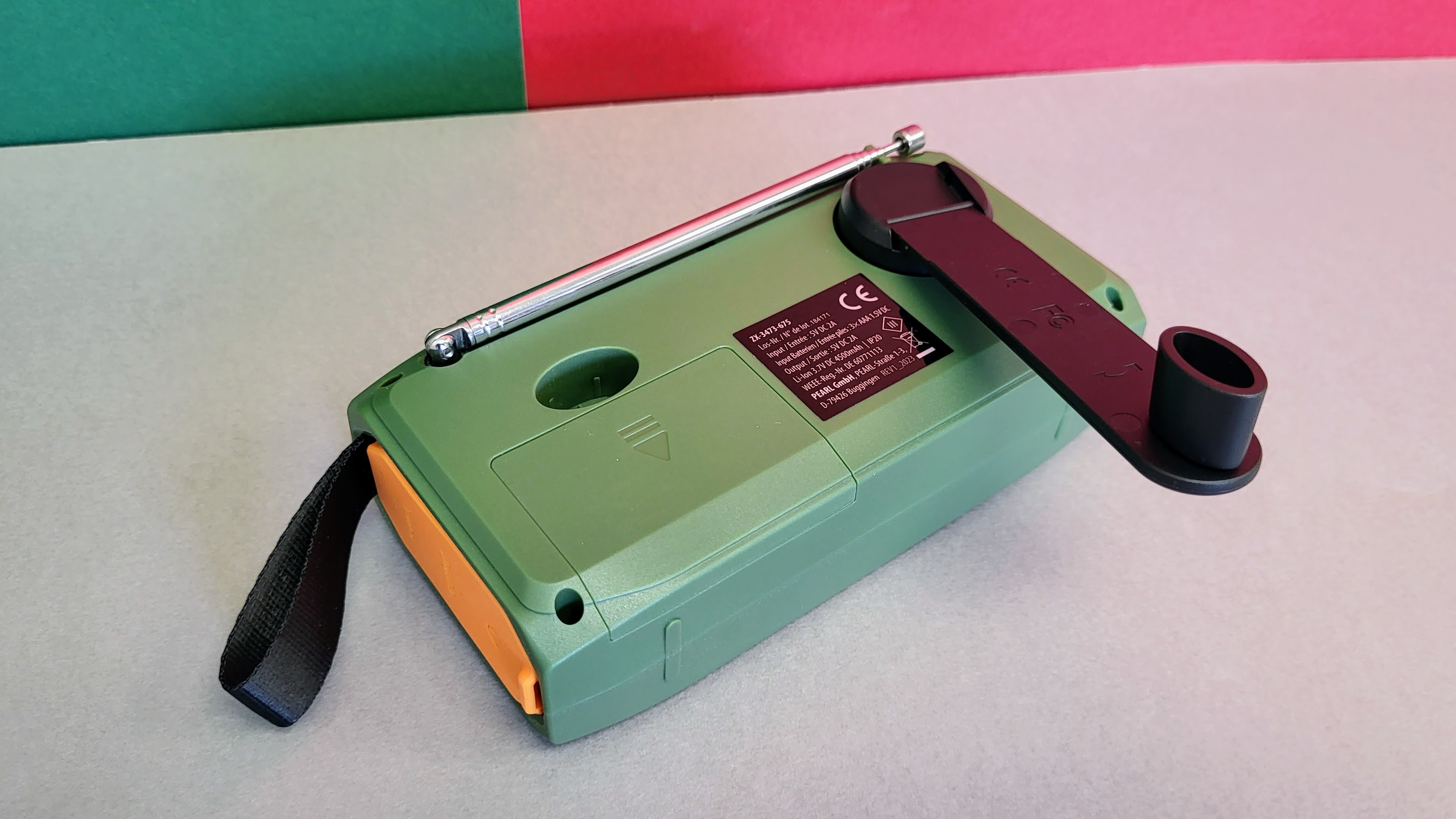 Zur Besonderheit des Radios gehört der Akku vom Typ ICR 18350 3,7 V. Diesen kann man leicht austauschen. Durch die geringe Kapazität von gerade einmal 850 mAh eignet sich das tragbare Kurbelradio kaum als Powerbank. Der Kurbelbetrieb bietet einen größeren Widerstand, allerdings lässt sich die Kurbel ausreichend ergonomisch nutzen, um Strom für einige Minuten Wiedergabe zu generieren.