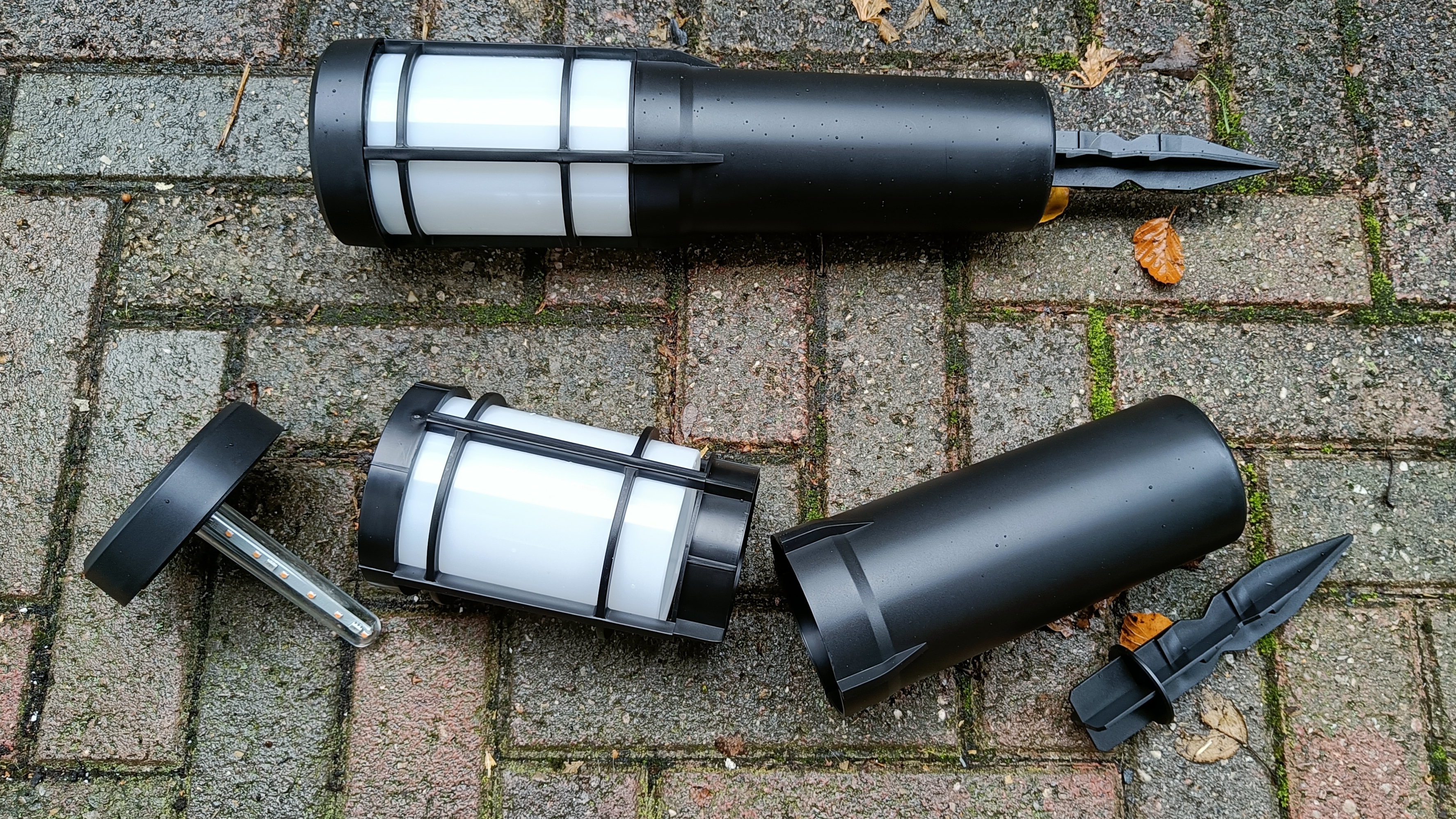 Wie vom Hersteller versprochen, überstanden die Solarfackeln auch Schnee, Hagel, heftige Regengüsse und Windböen unbeschadet. Dank IP65-Schutz kann ihnen Feuchtigkeit nichts anhaben. Allerdings wackelten die Erdspieße bei kräftigen Böen im lockeren Boden. Wer die Lampen dauerhaft aufstellen will, sollte den Untergrund also etwas verdichten.