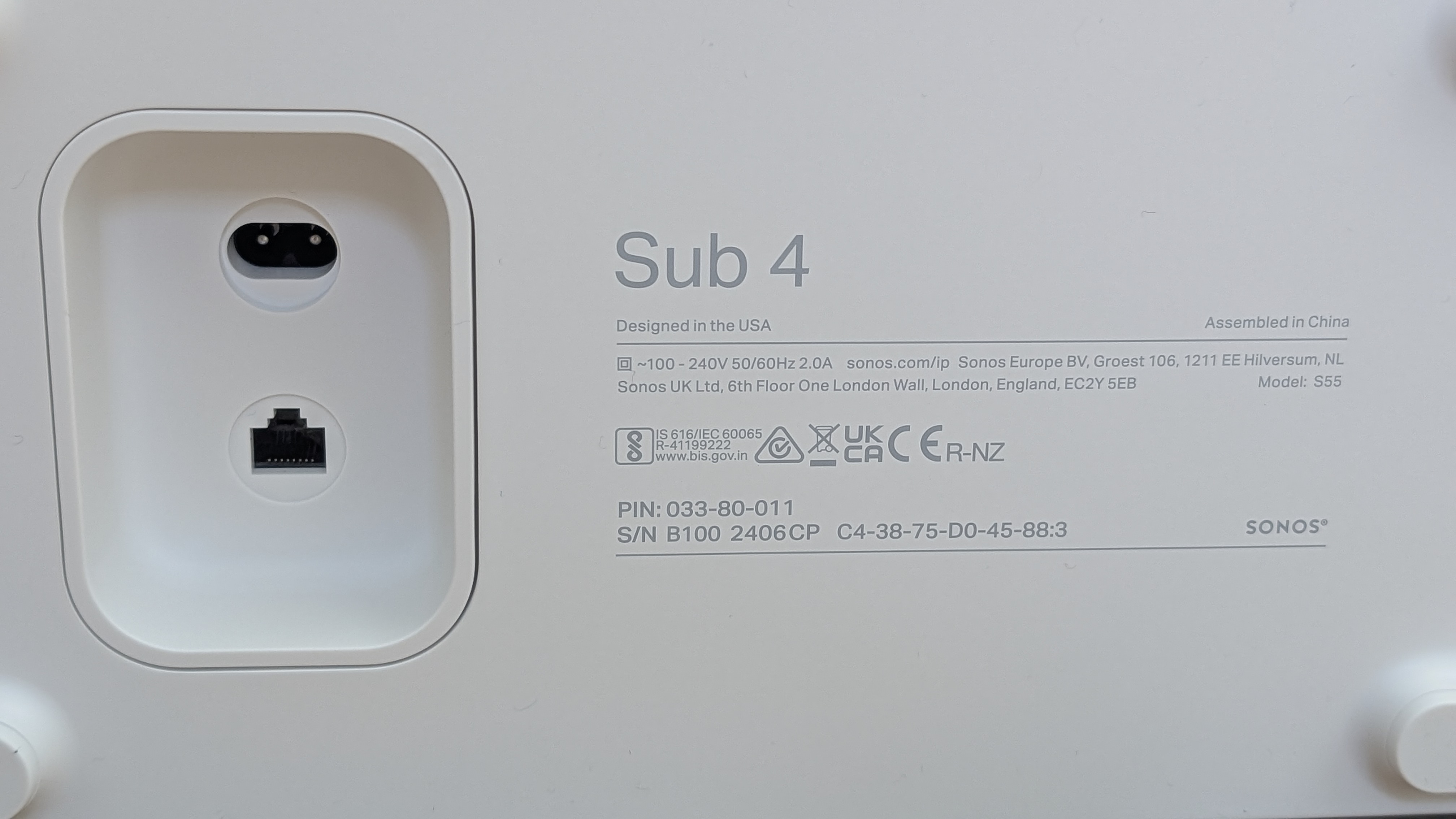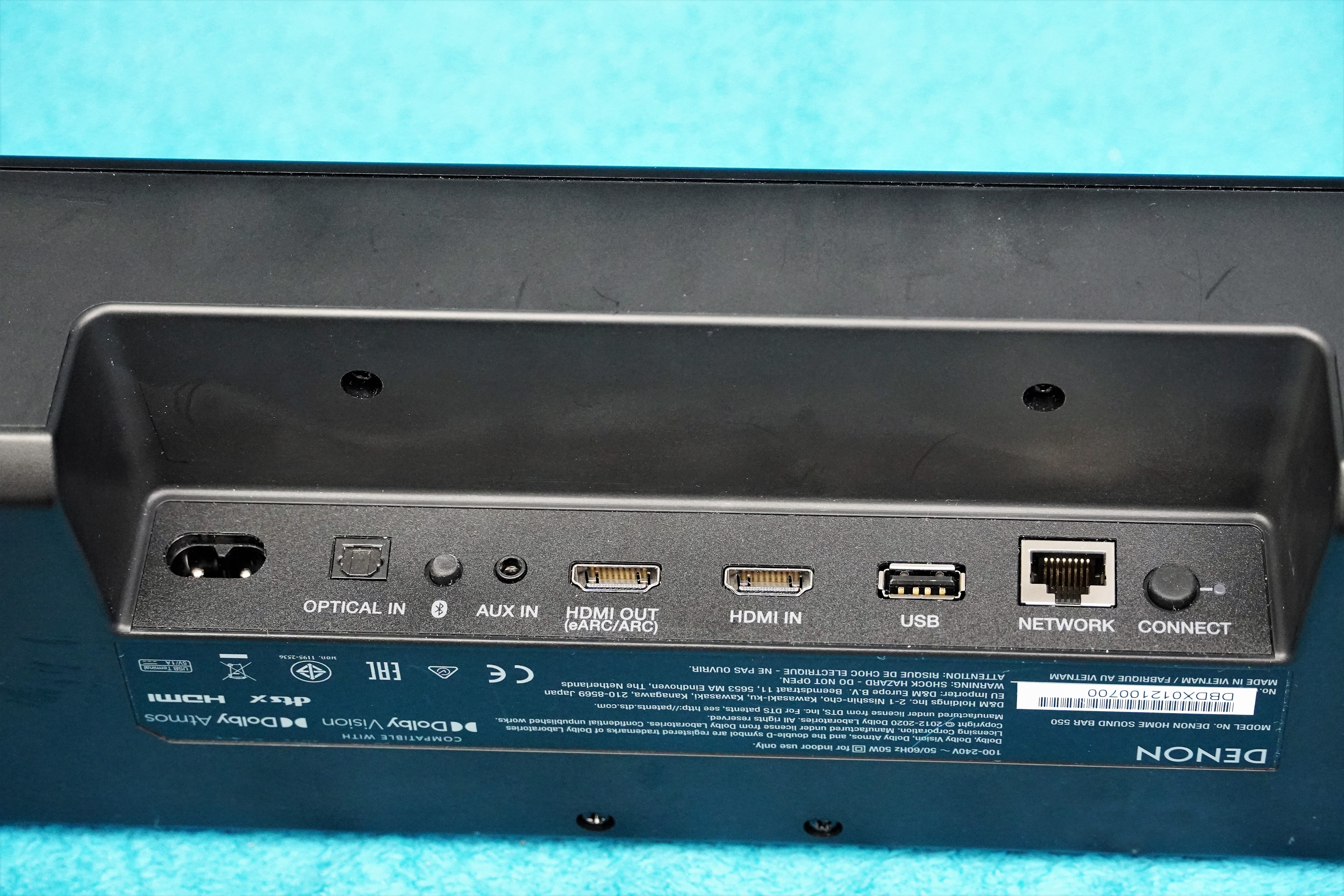 Versetzt in der Rückseite eingelassen, damit sich Kabel bei einer Wandmontage sauber nach unten verlegen lassen, findet man einen HDMI-Ein- sowie einen -Ausgang mit Enhanced Audio Return Channel (eARC). Zudem gibt es einen optischen Digitaleingang, einen 3,5-mm-AUX-Eingang sowie einen USB-Port, über den man Musik abspielen kann. Ins Internet wird der Lautsprecher über ein Netzwerkkabel oder via WLAN eingebunden. Zudem beherrscht der Schallwandler Bluetooth, um sich mit einem Mobilgerät oder per PC zu koppeln. Wer ein Apple-Gerät besitzt, freut sich über die Unterstützung von AirPlay 2. Zudem beherrscht die 550 die Steuerung per Sprache mittels Alexa.