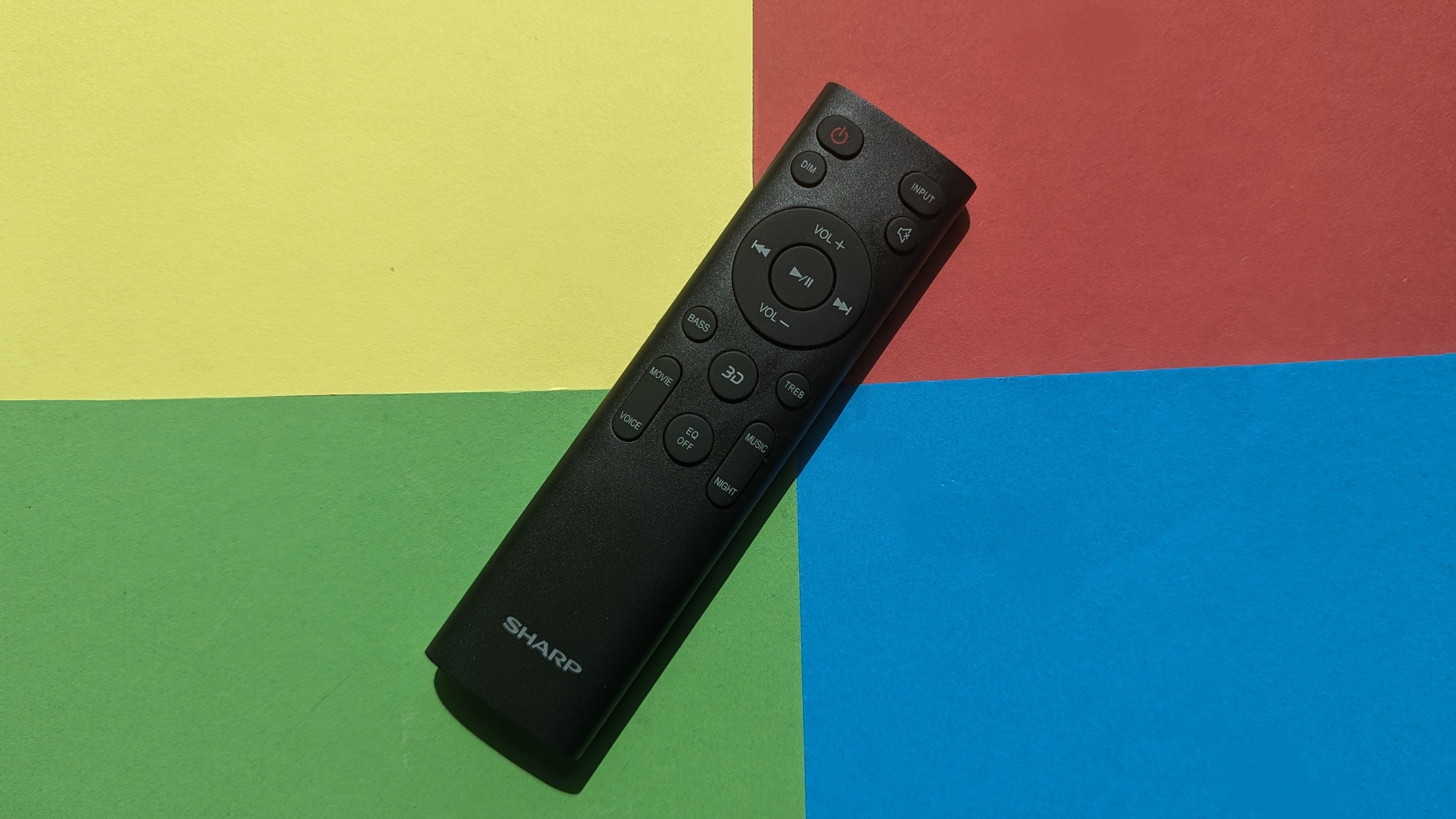 Ein besonderes Highlight für Soundbars ist das integrierte Touch-LC-Display auf der Oberseite, das eine einfache Bedienung ermöglicht. Vorn gibt es nur mehrere einzelne LEDs als Anzeige. Alternativ bietet die mitgelieferte Fernbedienung zahlreiche Direktwahltasten für die wichtigsten Einstellungen, sodass keine Internetverbindung oder App-Steuerung notwendig ist. Eine App gibt es nicht.