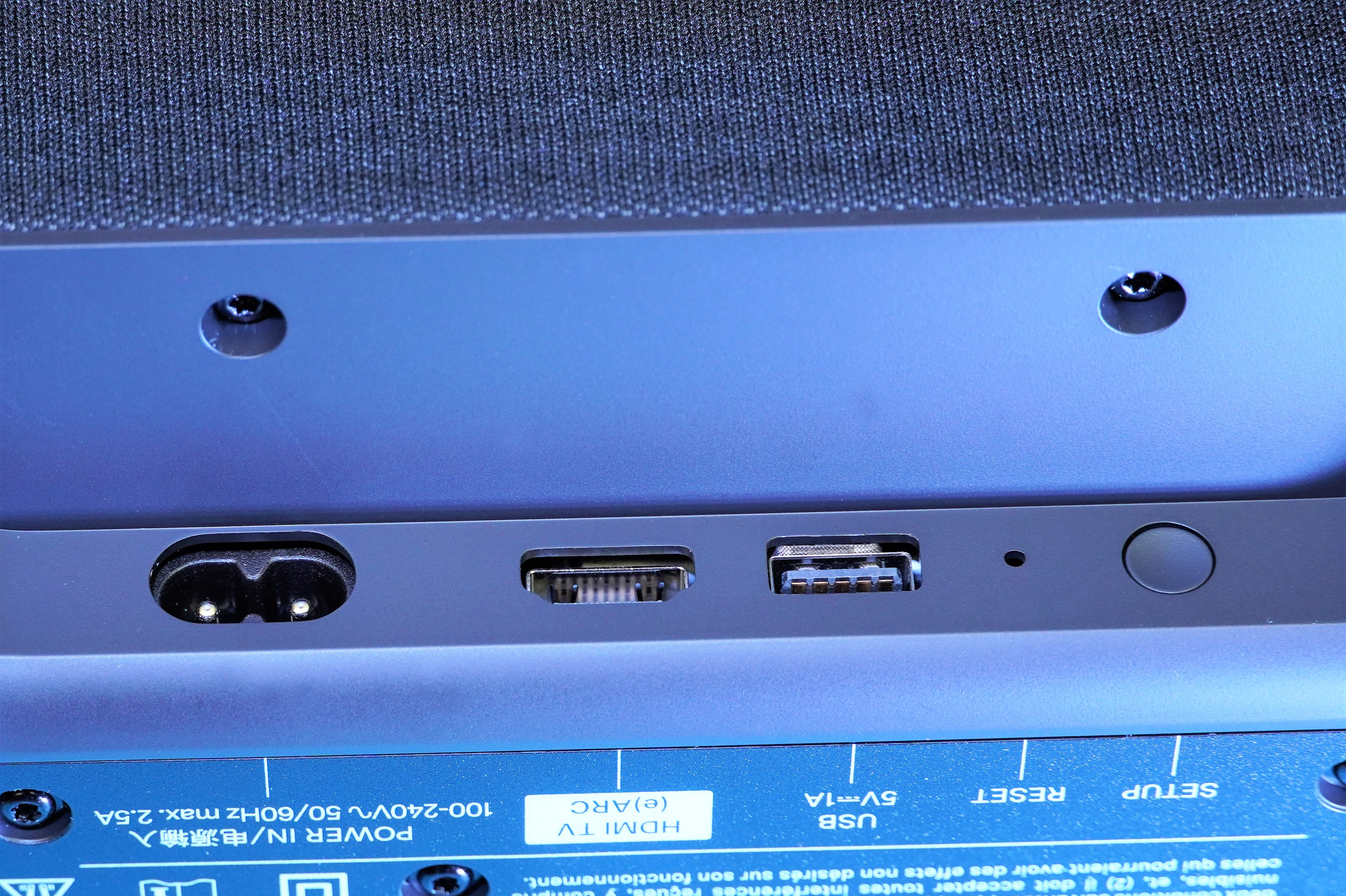 Bei den Anschlüssen und der Ausstattung lässt sich Sennheiser nicht lumpen. Die Gehäuserückseite ist mit einem HDMI-Port mit eARC (Enhanced Audio Return Channel, ermöglicht höhere Bandbreiten und die Übertragung von hochauflösenden Surround-Toninformationen), mit einer USB-Buchse zur Stromversorgung externer Geräte, dem Stromanschluss sowie Reset- und Setup-Taste noch übersichtlich ausgestattet. Dank der Technik im Gehäuse läuft die Ambeo Mini jedoch zur Höchstform auf.