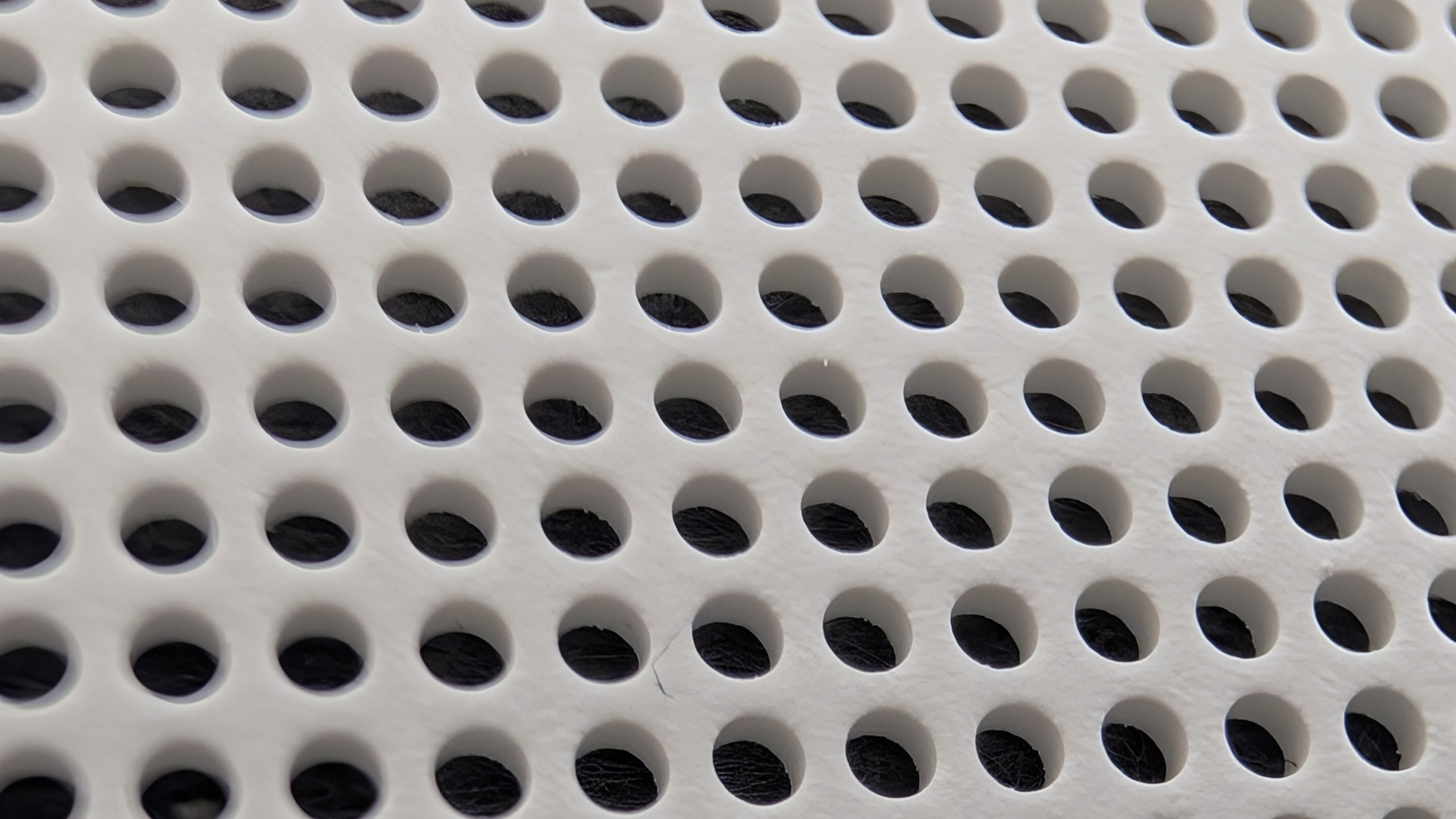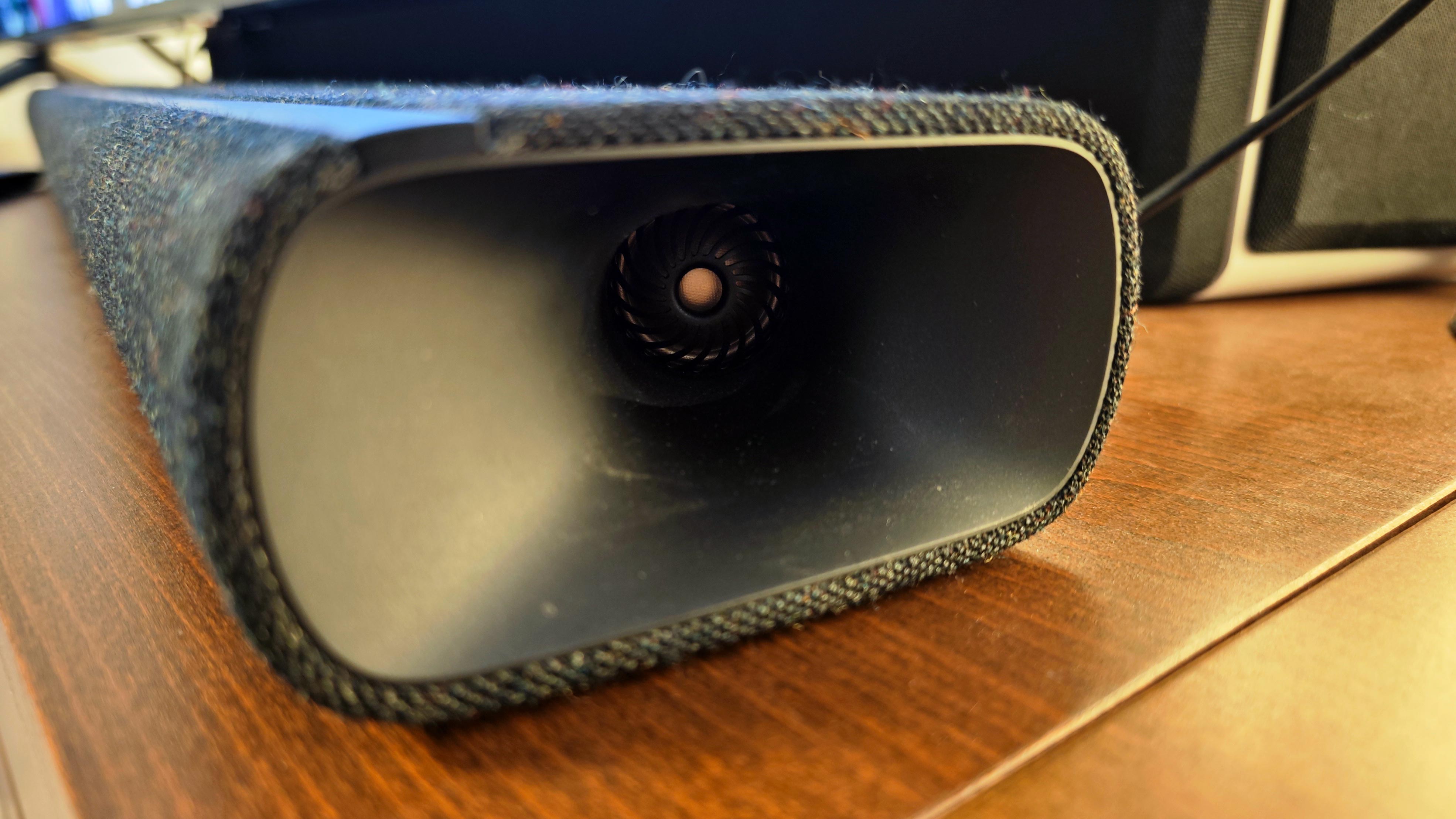 Die Oberseite der Haupteinheit ist gummiert, was auch Nachteile hat. Der Gummi zieht Staub an und ist schwer zu reinigen, was man sogar auf unseren Fotos sehen kann. Die Satelliten sind mit Stoff bespannt, nur die Unterseite ist gummiert.