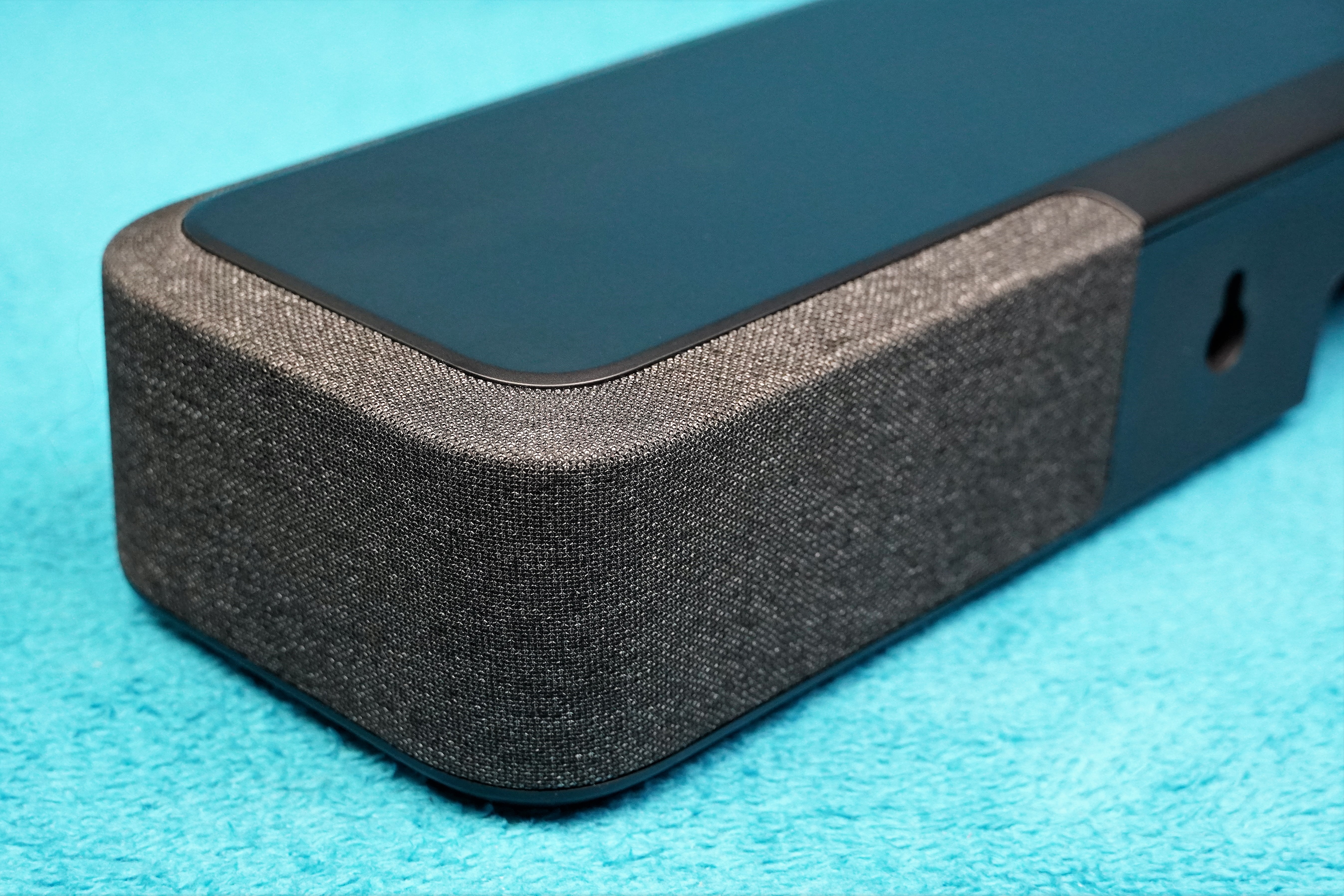 Das hochwertige Akustikgitter umschließt die gesamte Soundbar und verleiht ihr ein edles Erscheinungsbild. Die Verarbeitungsqualität ist auf höchstem Niveau – hier gibt es keine wackeligen Teile oder billig wirkende Elemente. Alle Kanten sind sauber verarbeitet.