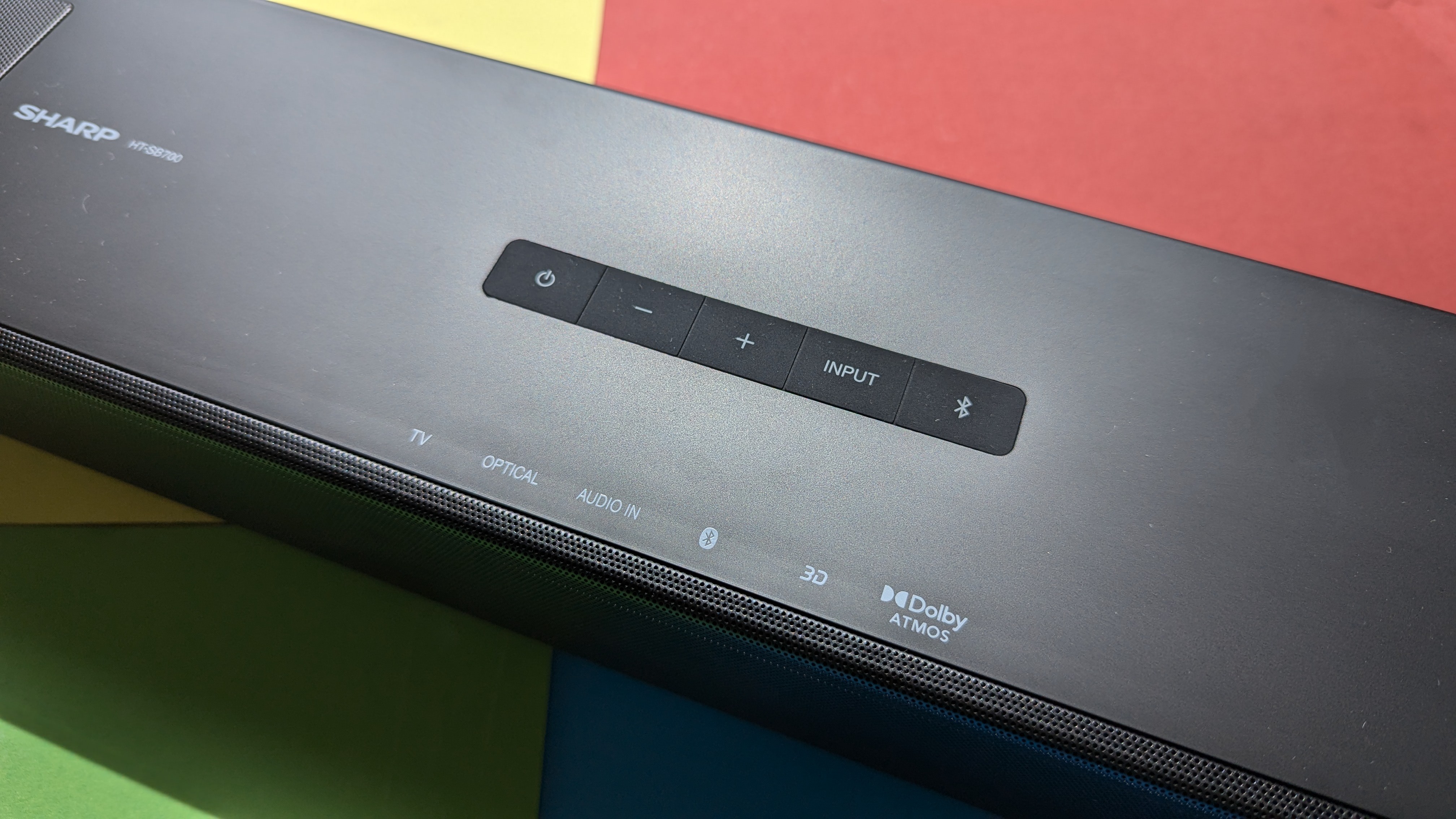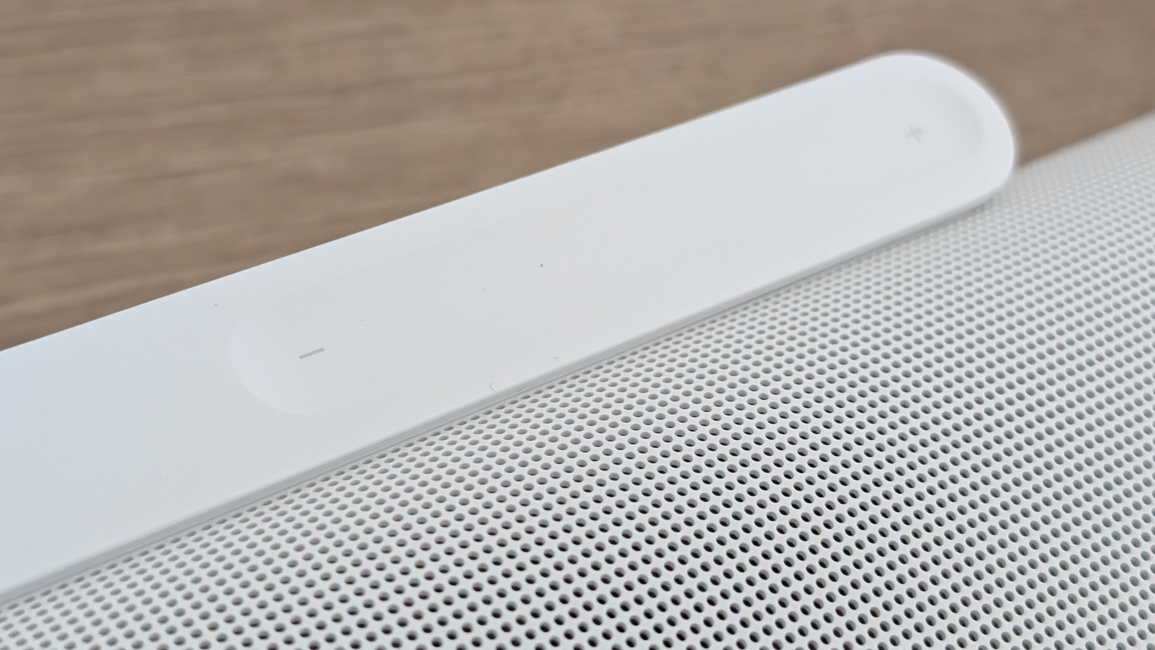 Die Touch-Bedienelemente steuern die grundlegenden Funktionen wie Play, Pause und Lautstärke und befinden sich mittig auf der Oberseite im hinteren Bereich der Soundbar. Etwa bei einer Wandmontage sind diese schwer zu erreichen, was die Bedienung ohne App oder Fernbedienung erschwert. Die kapazitiven Taster können per App gesperrt werden.