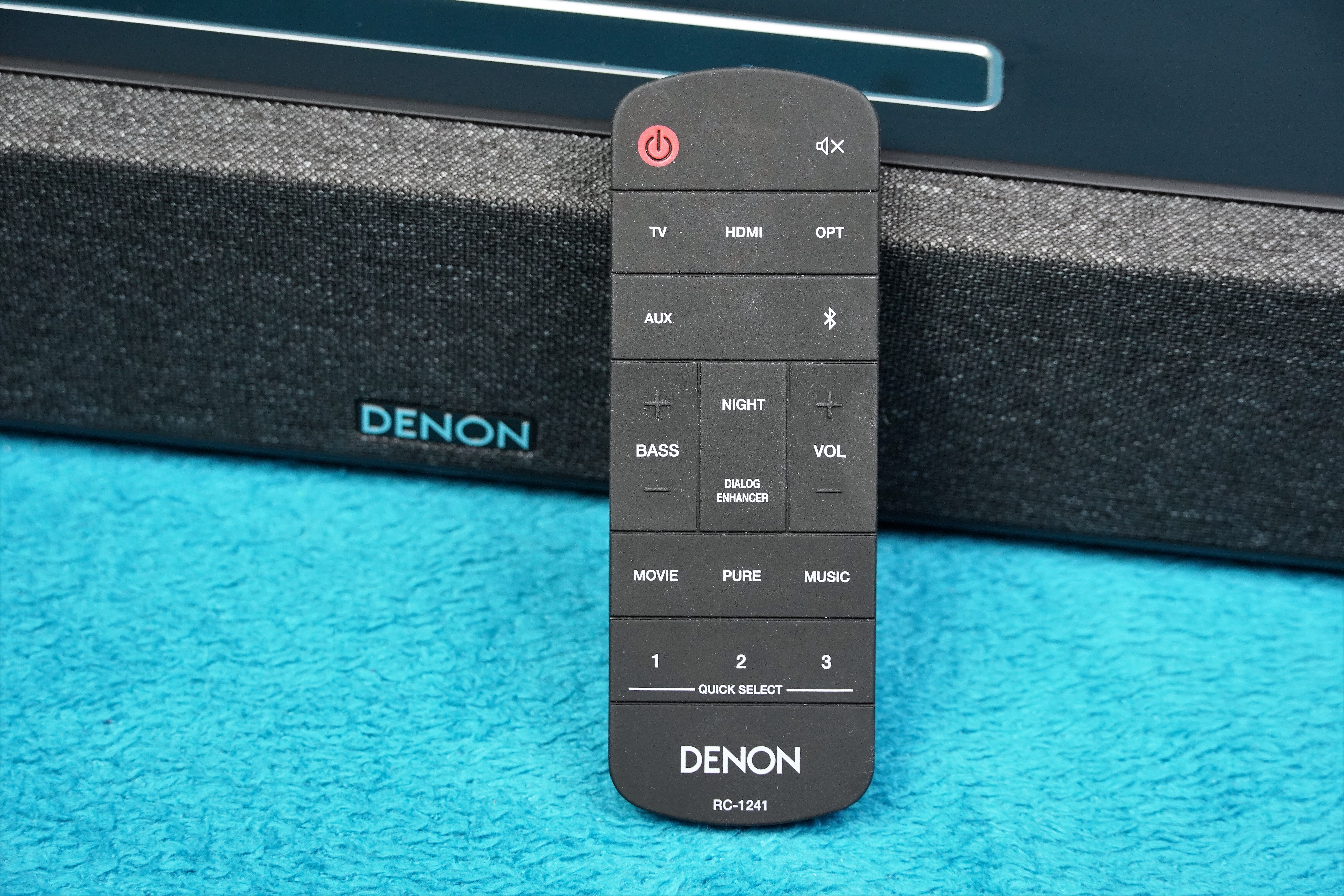 Über die Fernbedienung kann man zwischen den Klangmodi „Movie“ und „Music“ wechseln, im „Pure“-Setting gibt die Soundbar die Musik bzw. den Audio-Inhalt unverfälscht wieder. Im „Night“-Modus agiert die Denon-Box zurückhaltender, damit auch der Nachwuchs im Zimmer und der Nachbar ungestört schlafen können. Stimmen lassen sich über das Feature „Dialog Enhancer“ hervorheben.