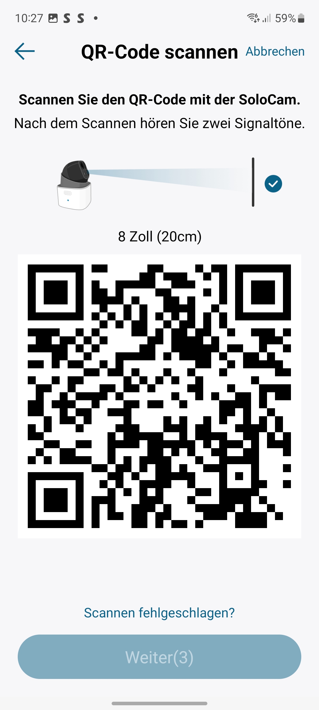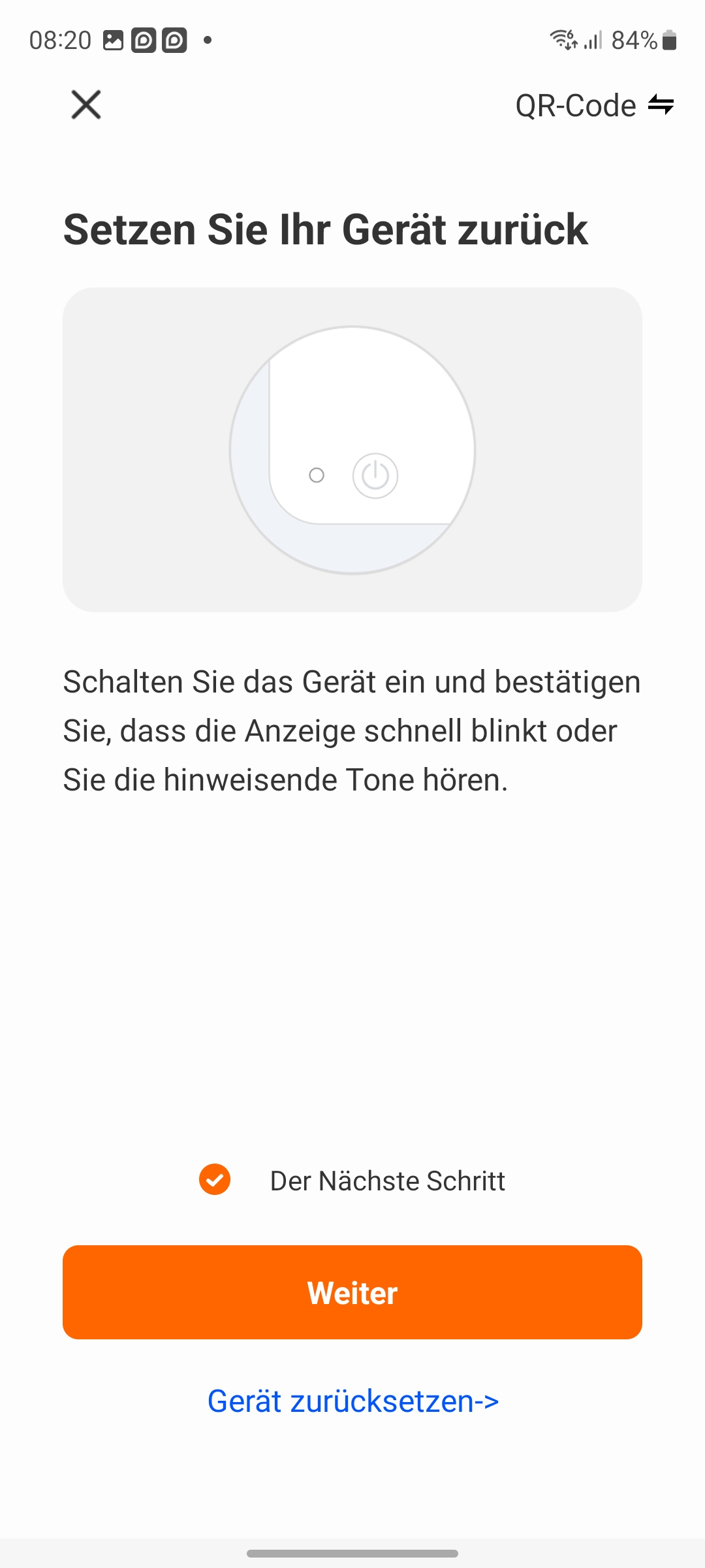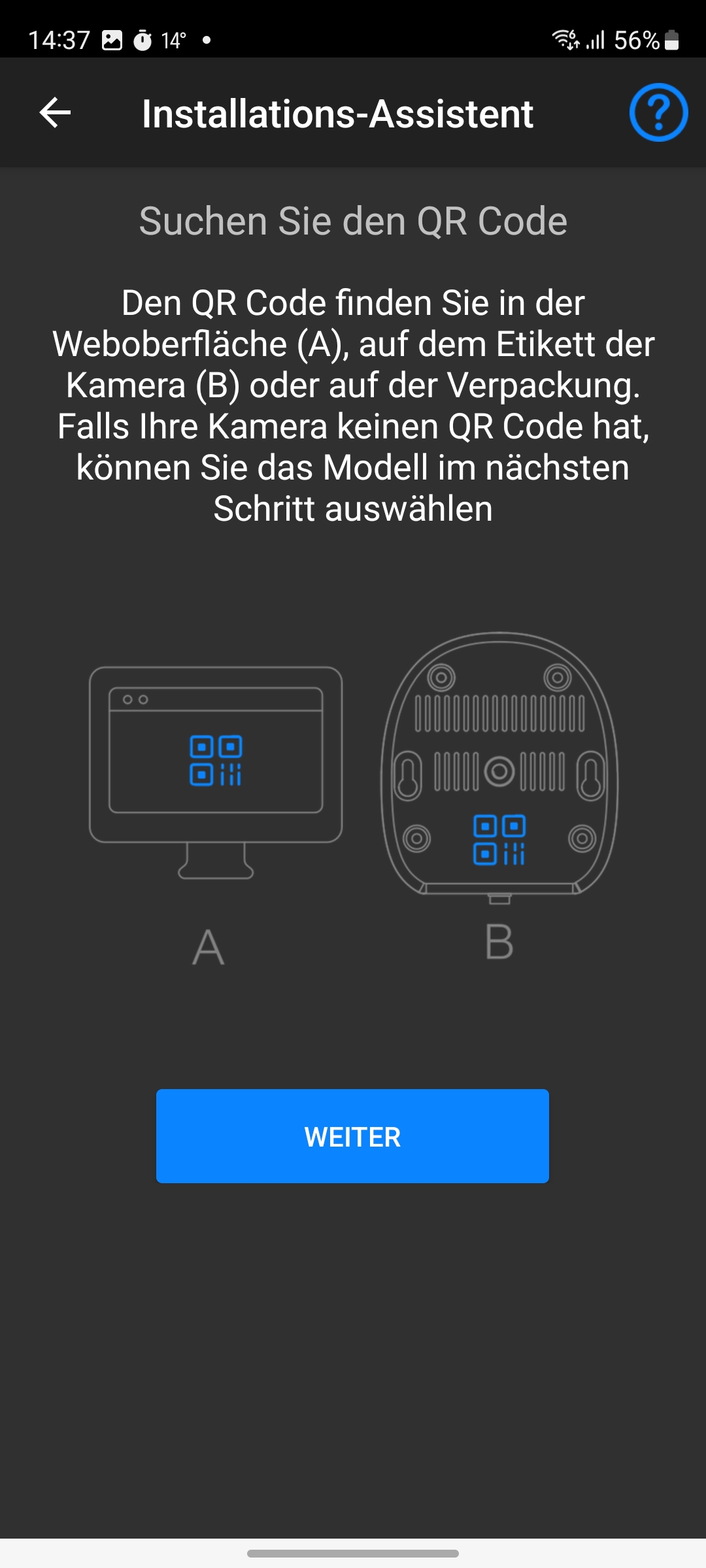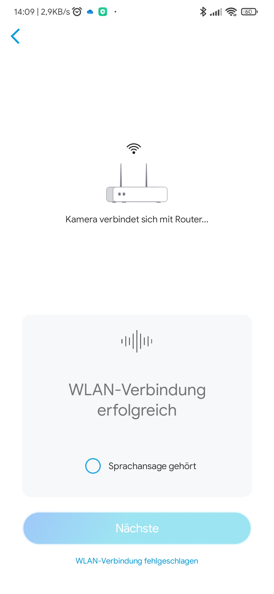 Nach dem Anschluss an die Stromversorgung startet die Kamera im Kopplungsmodus, was durch eine blinkende Statusleuchte neben dem Objektiv signalisiert wird. Jetzt ruft man eine der Tuya-Apps auf und beginnt mit dem Hinzufügen der Kamera über das Plus-Zeichen rechts oben und wählt Sicherheitskamera (Wi-Fi). Anschließend wählt man das betreffende WLAN aus und gibt das Passwort ein. Dann generiert die App einen QR-Code, den man im Abstand von 10 bis 15 Zentimeter vor die Linse hält. Sobald die Kamera den QR-Code erkannt hat, ertönt ein Signal und die Verbindungsaufnahme zum WLAN erfolgt. Die Kamera wird in der Folge als ZX-5346 in der App angezeigt (siehe auch Bildergalerie).