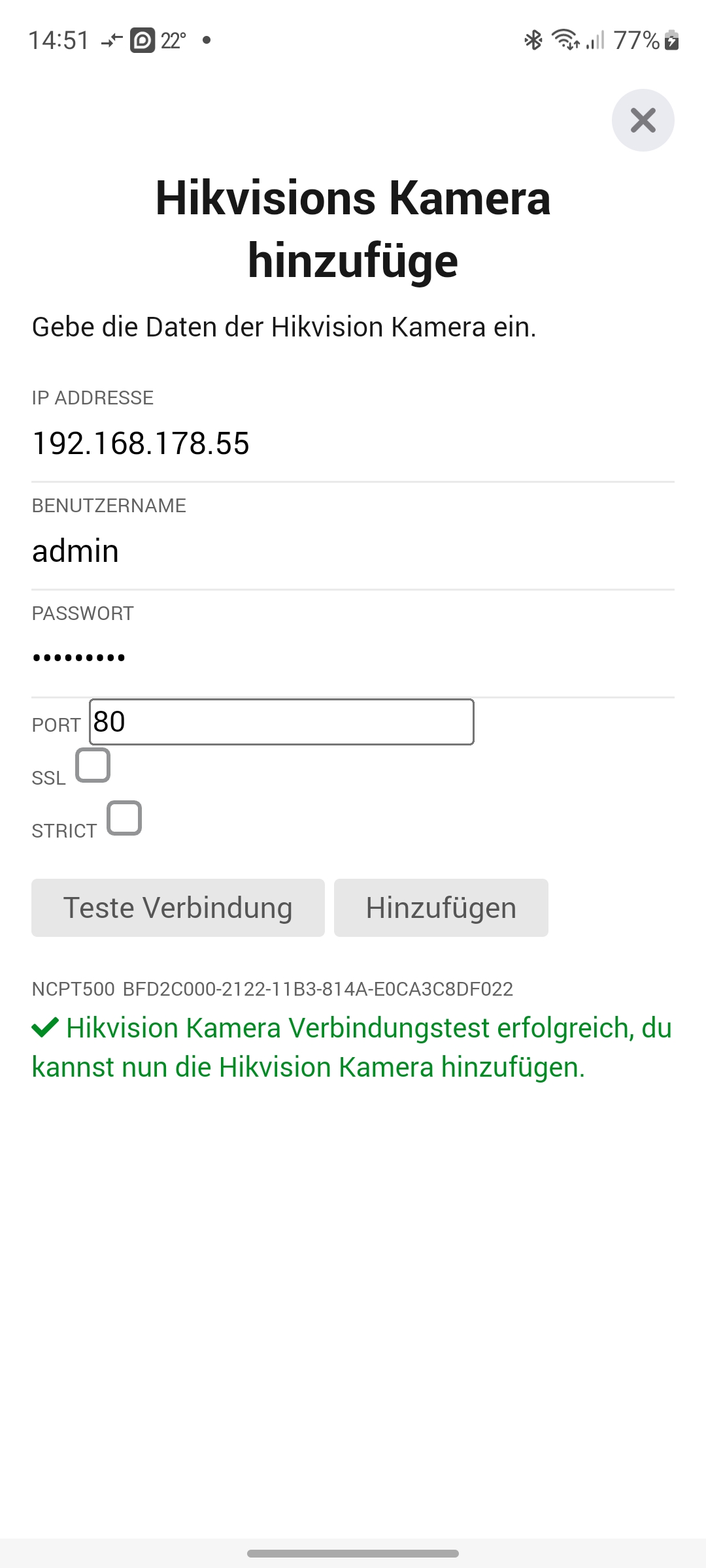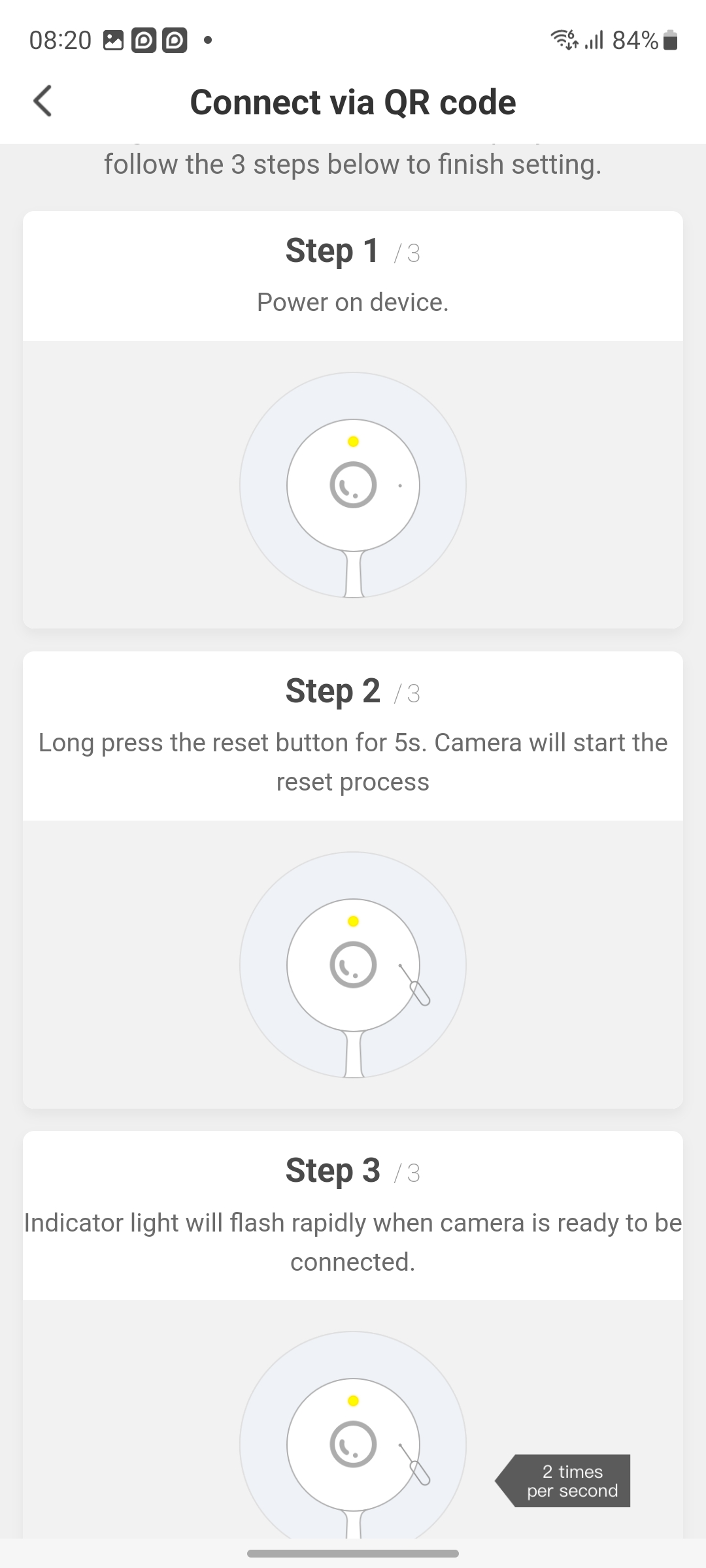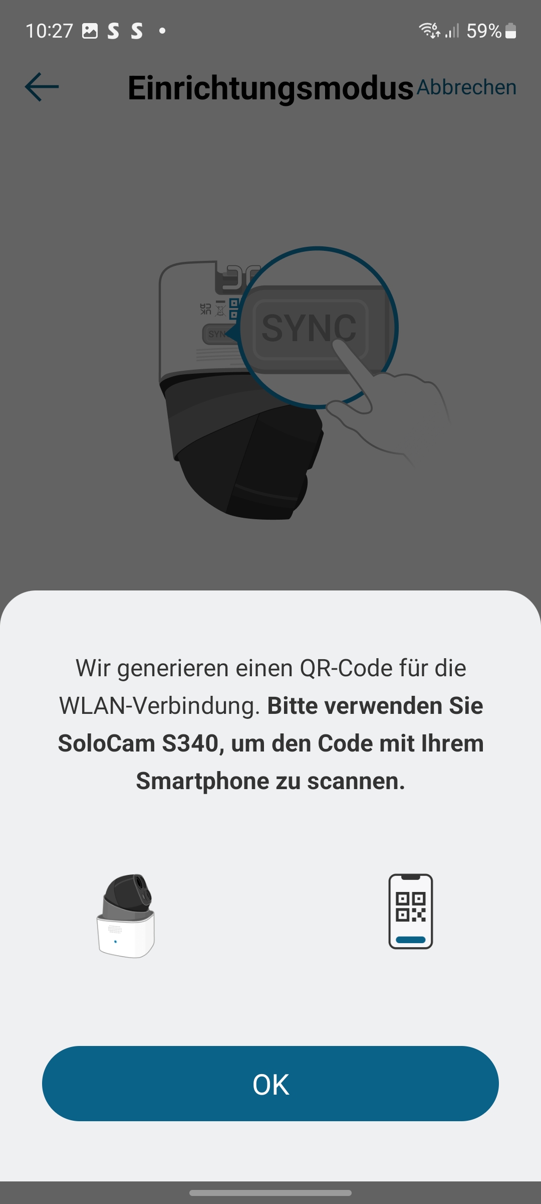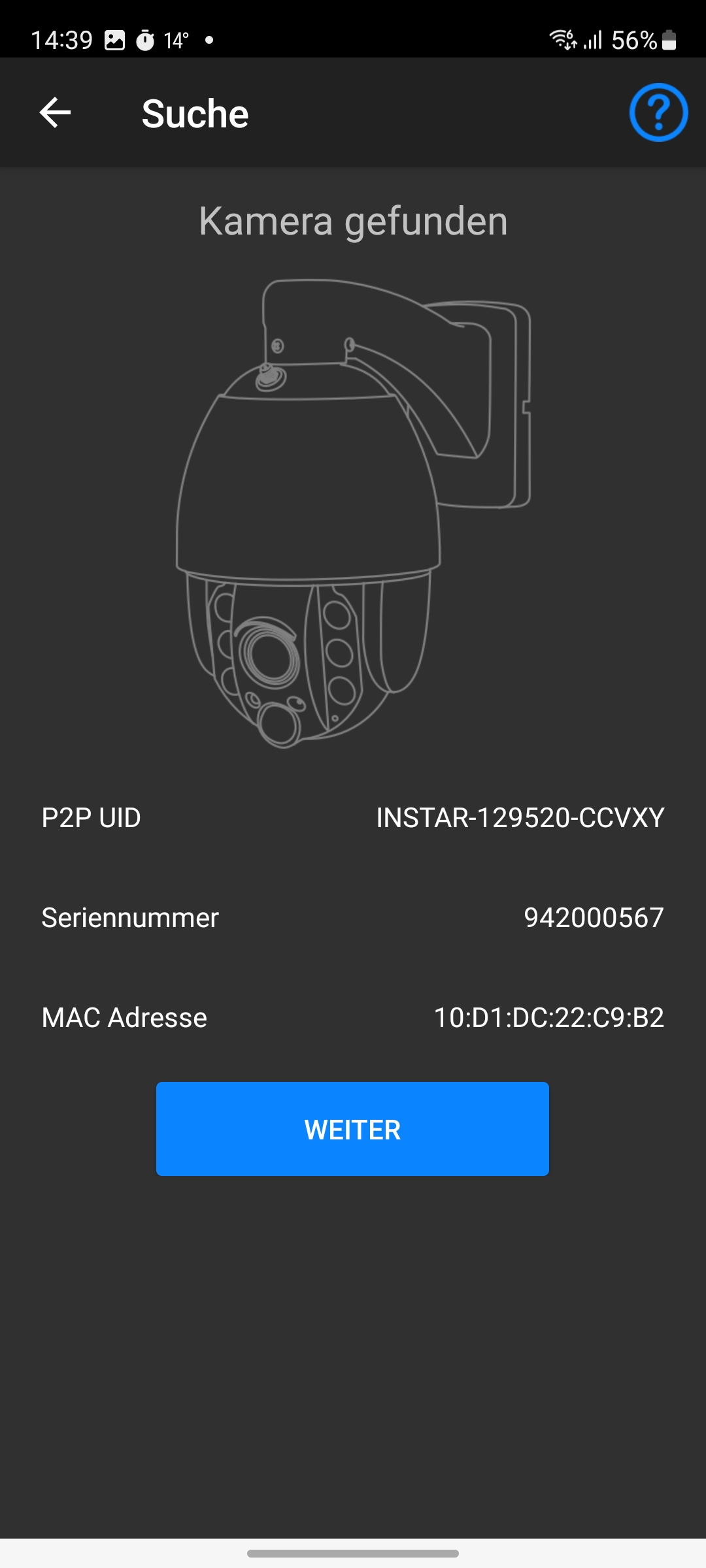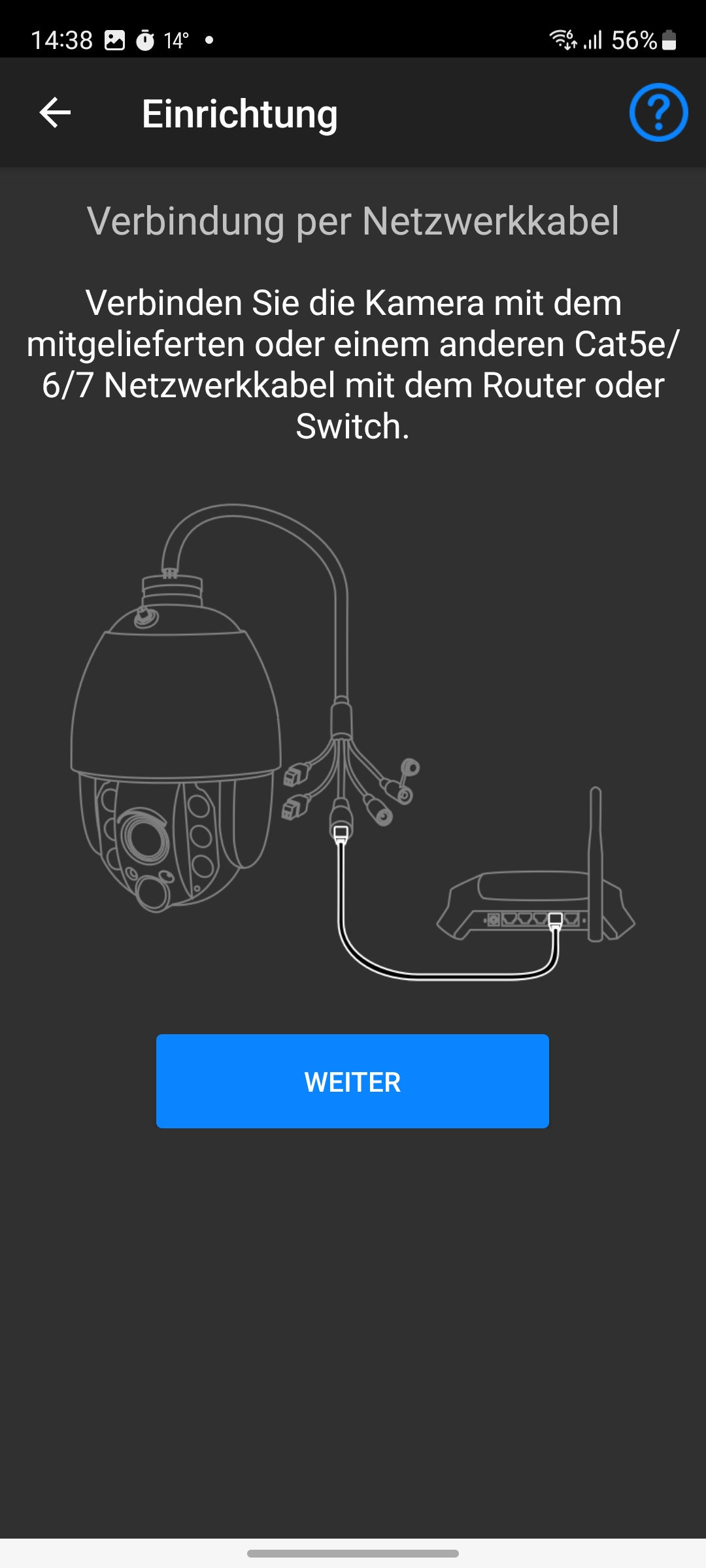 Nach dem Anschluss an die Stromversorgung startet die Kamera im Kopplungsmodus, was durch eine blinkende Statusleuchte neben dem Objektiv signalisiert wird. Jetzt ruft man eine der Tuya-Apps auf und beginnt mit dem Hinzufügen der Kamera über das Plus-Zeichen rechts oben und wählt Sicherheitskamera (Wi-Fi). Anschließend wählt man das betreffende WLAN aus und gibt das Passwort ein. Dann generiert die App einen QR-Code, den man im Abstand von 10 bis 15 Zentimeter vor die Linse hält. Sobald die Kamera den QR-Code erkannt hat, ertönt ein Signal und die Verbindungsaufnahme zum WLAN erfolgt. Die Kamera wird in der Folge als ZX-5346 in der App angezeigt (siehe auch Bildergalerie).