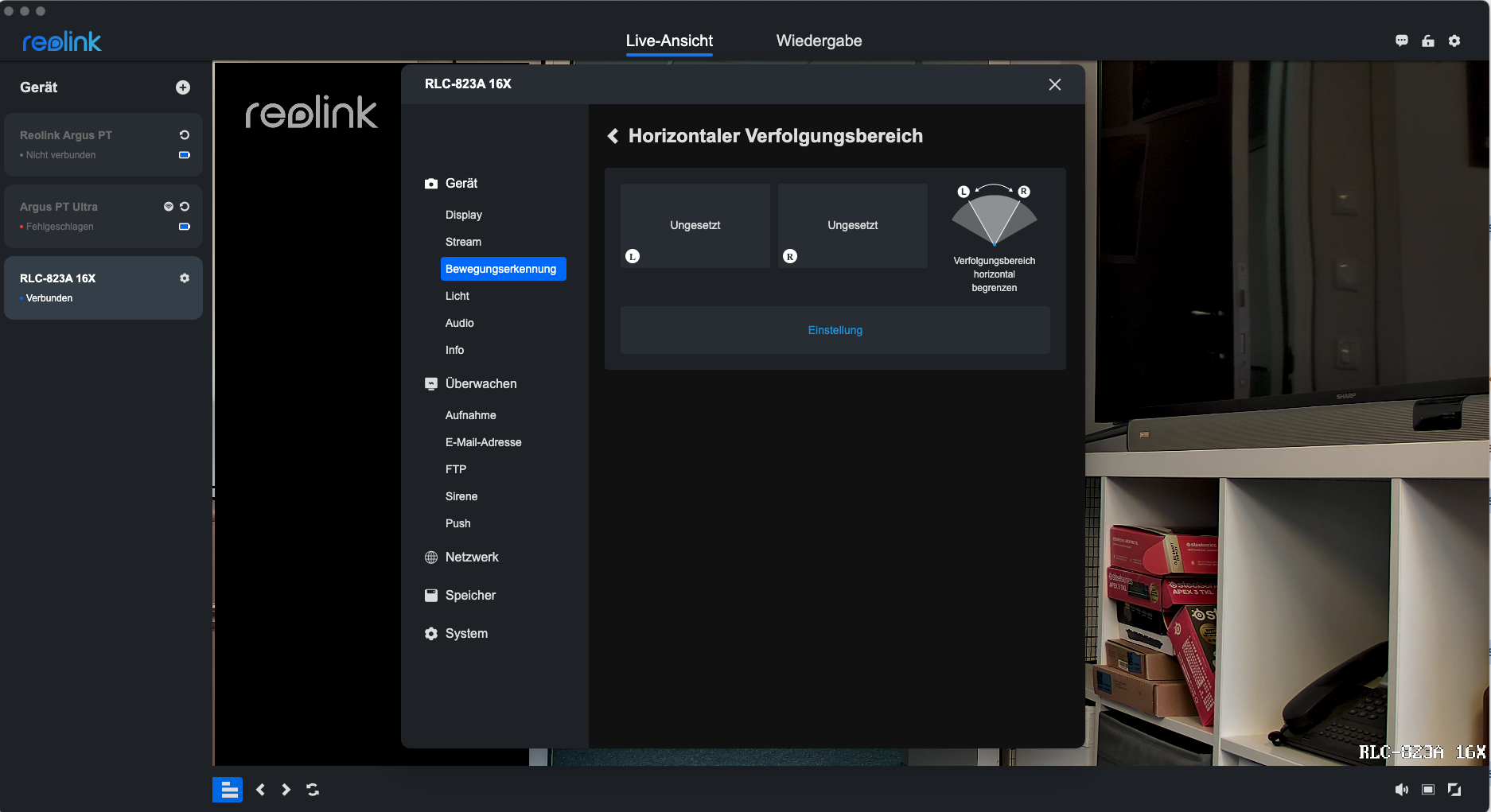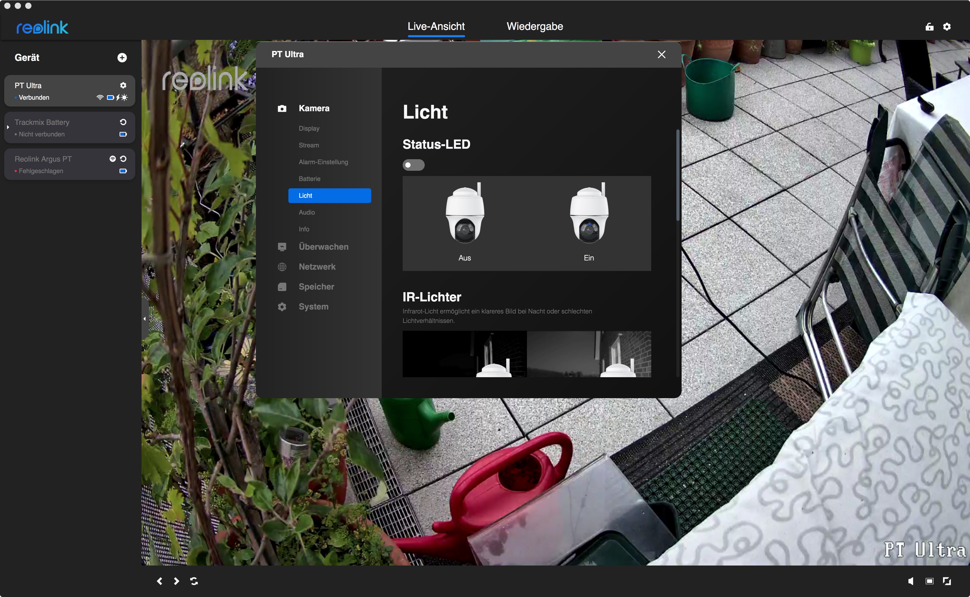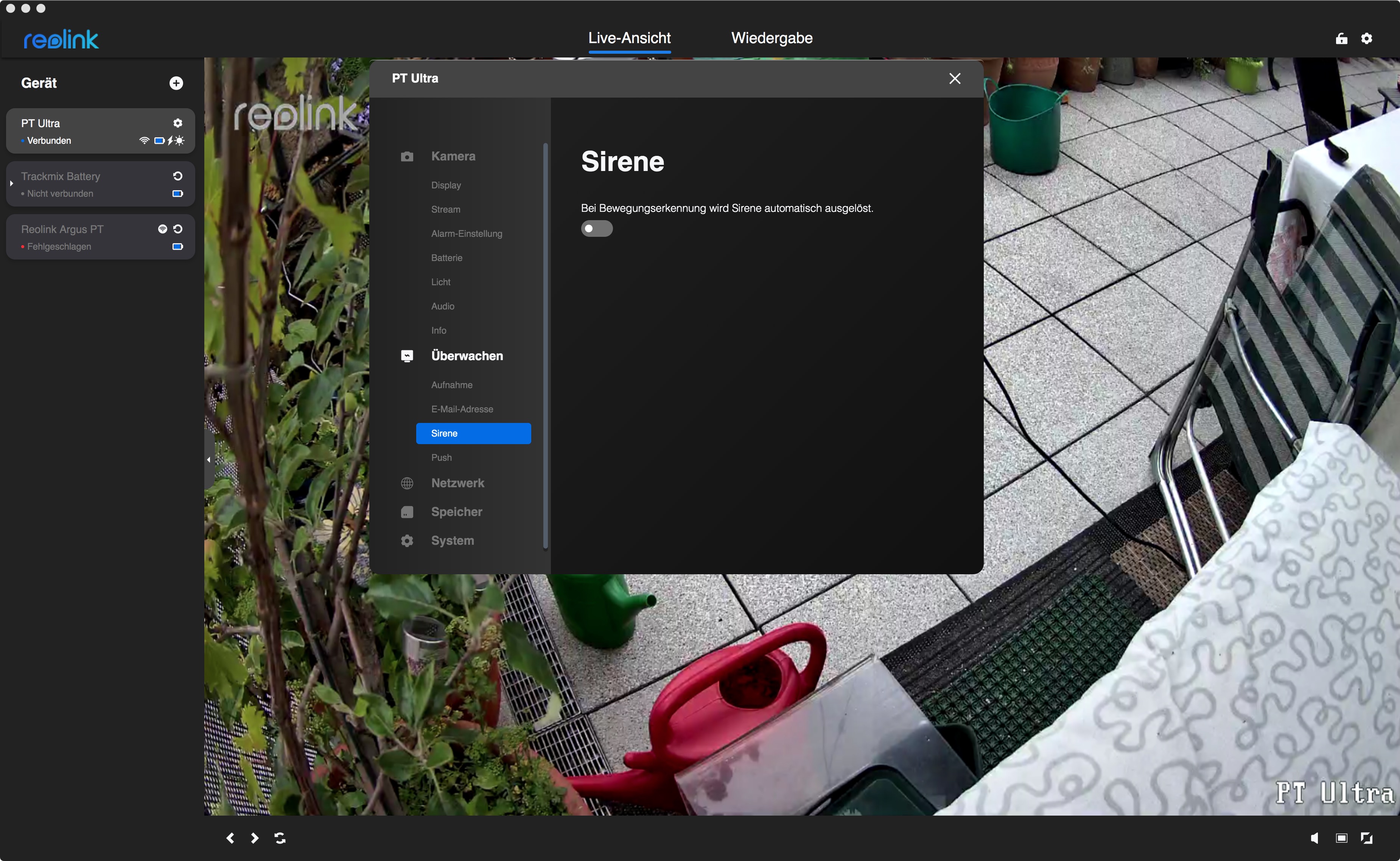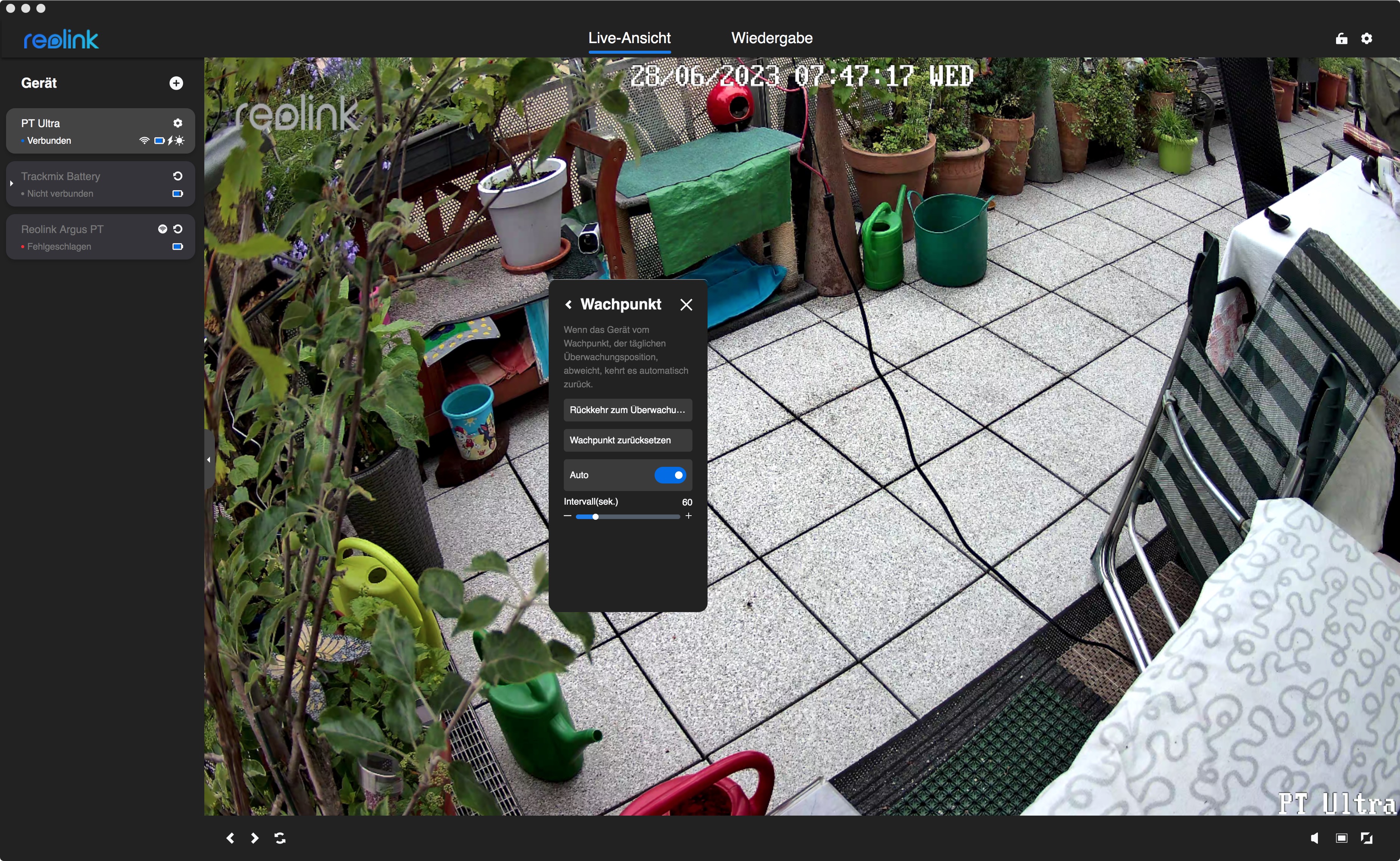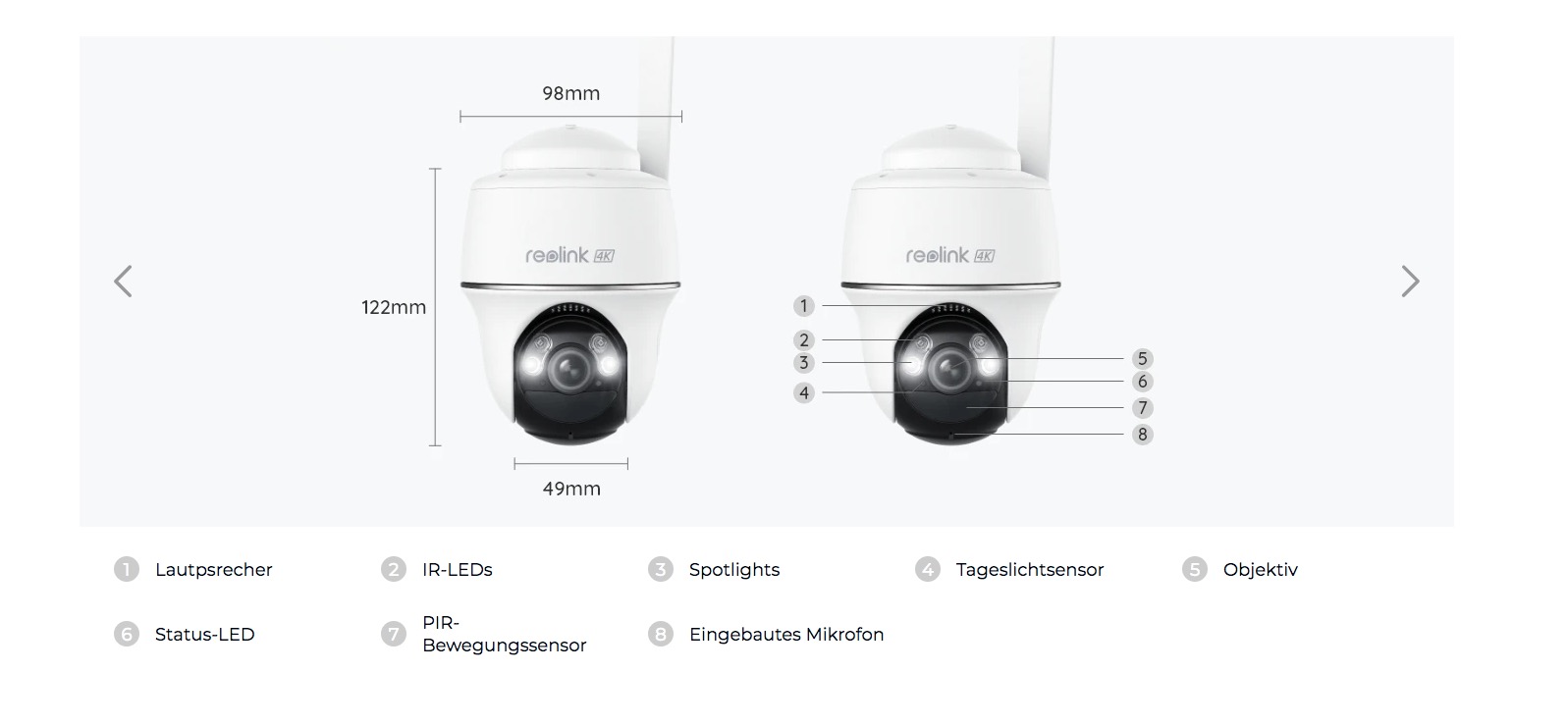| Reolink Argus PT Ultra | 355° | 3840 | 2160 | 8.294.400 | 15 fps | nein |