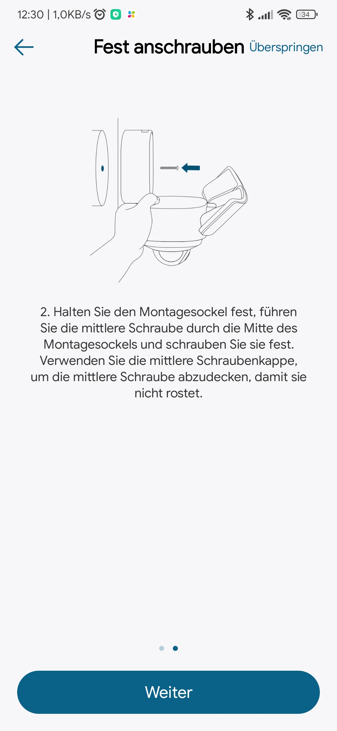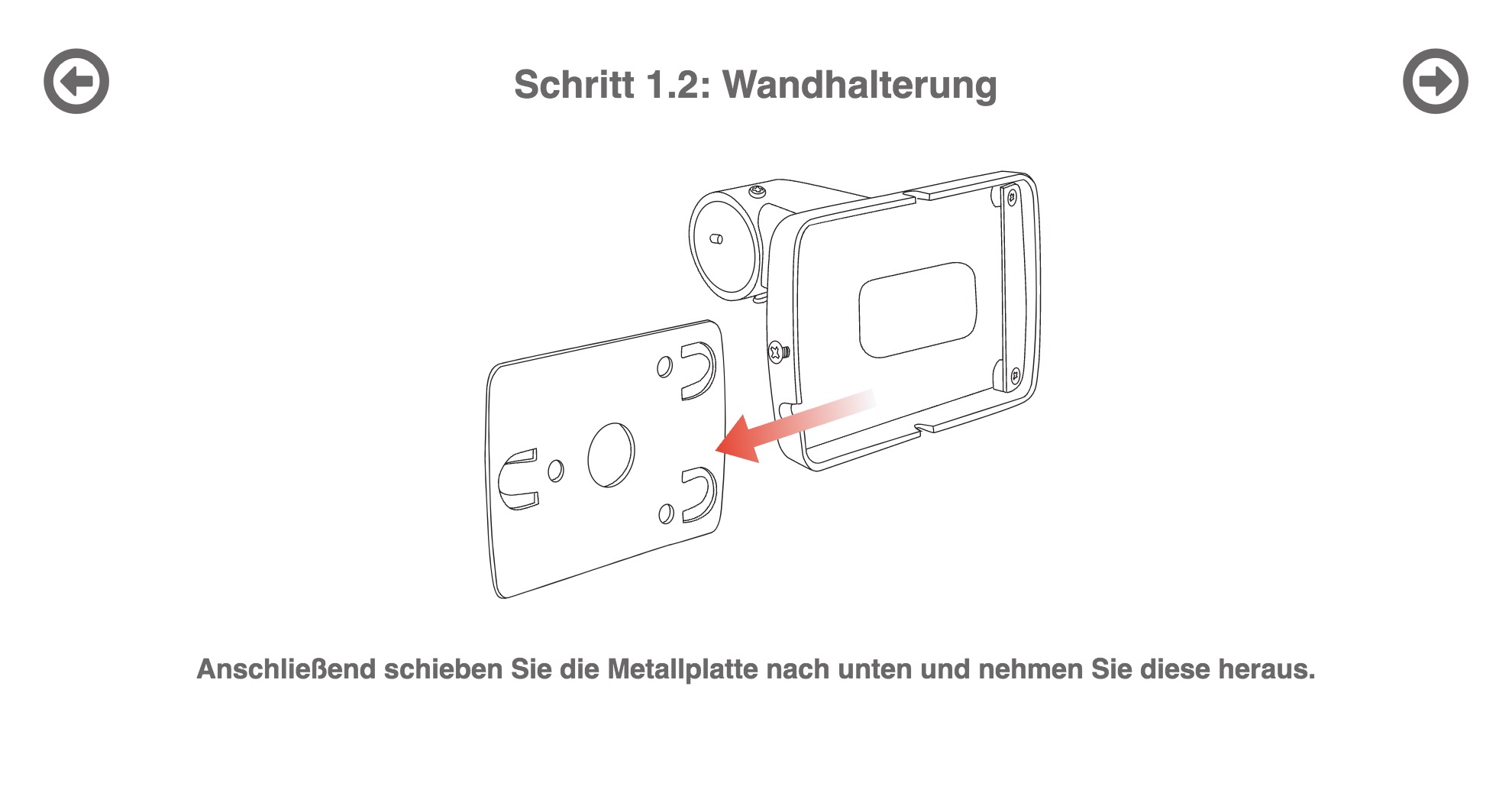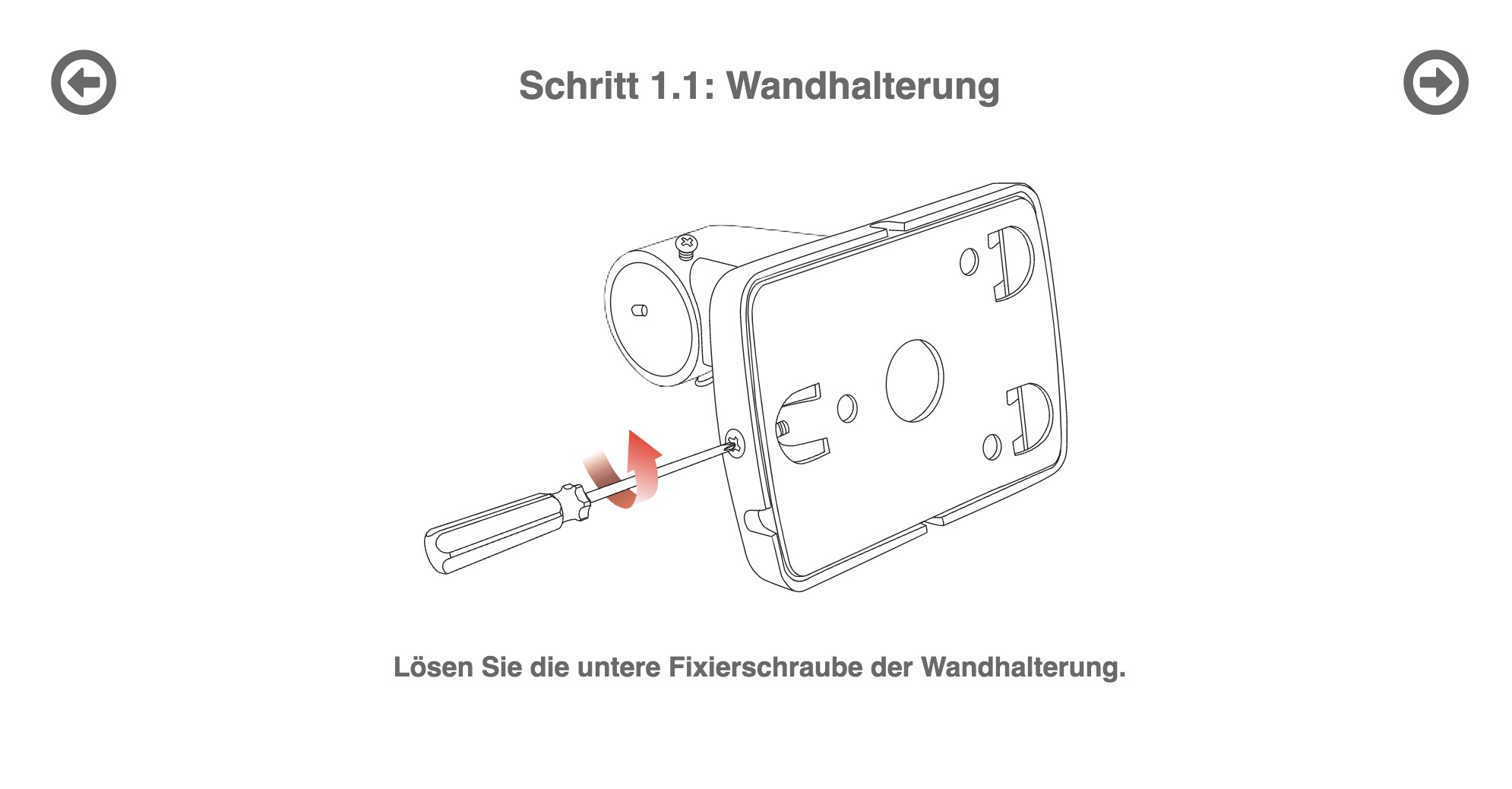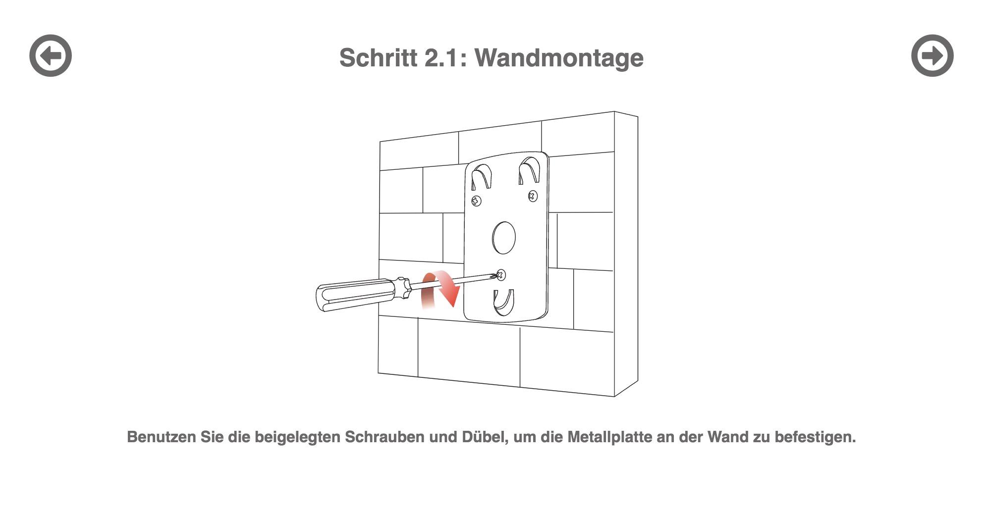 Im Lieferumfang sind für die Montage nötige Halterungen, Schrauben und Dübel sowie eine Bohrschablone enthalten. Die englischsprachige Kurzanleitung bietet detaillierte Informationen zur Montage inklusive Befestigung des Solarpanels. Informationen zur Montage in deutscher Sprache gibt es online und auch detailliert in der App.