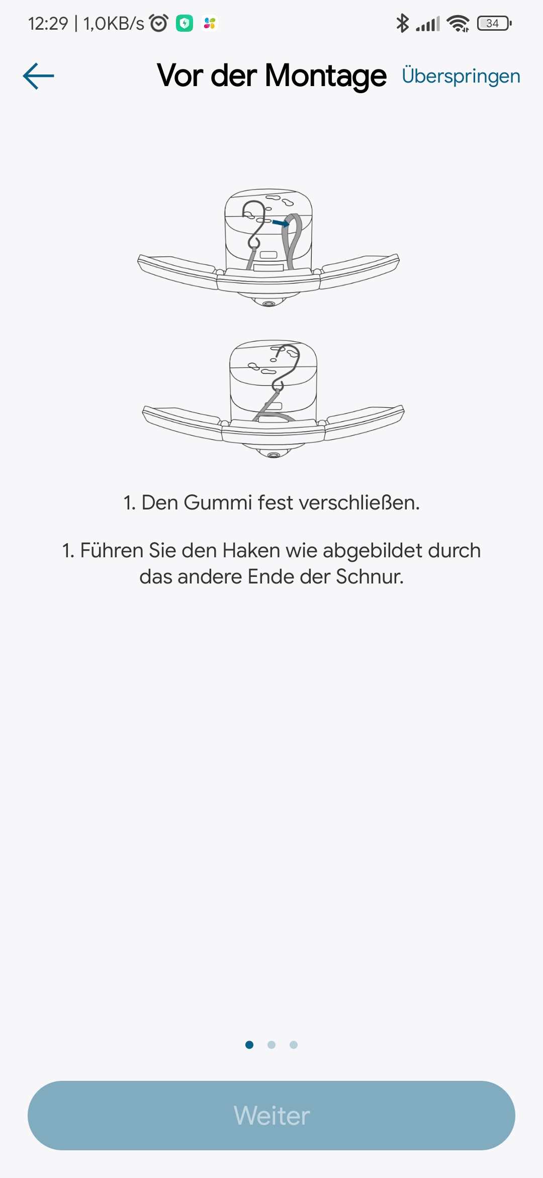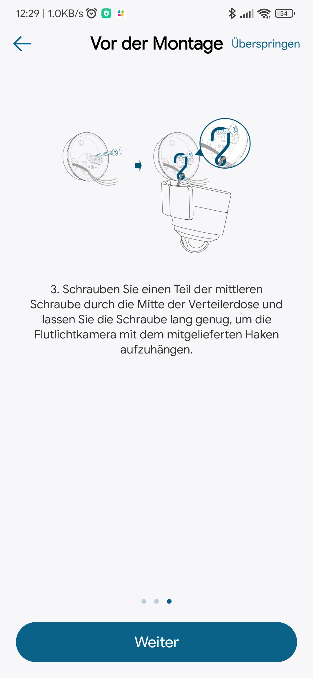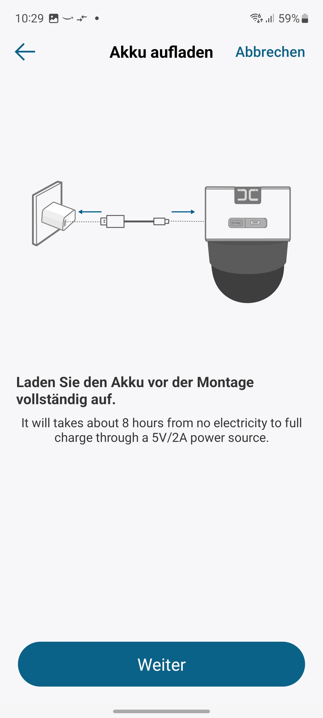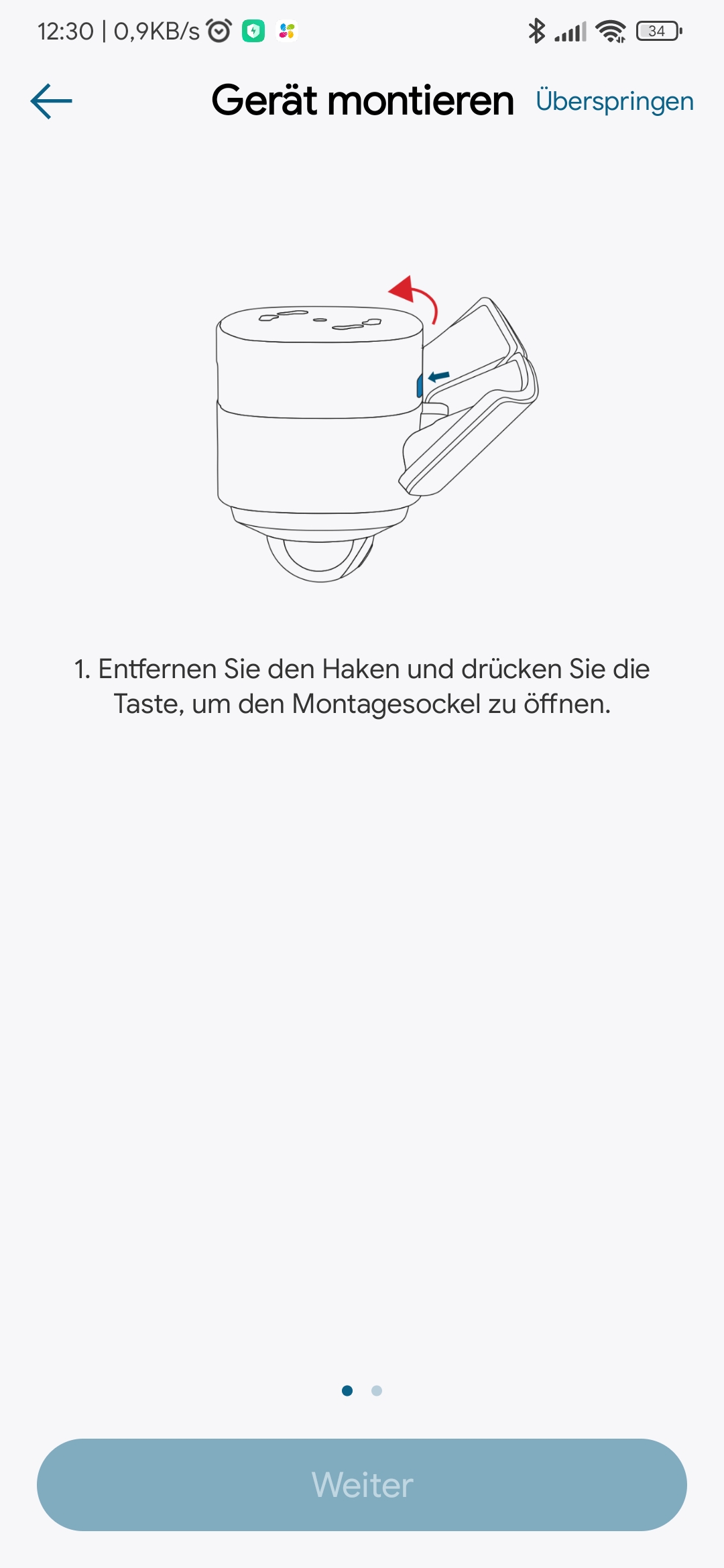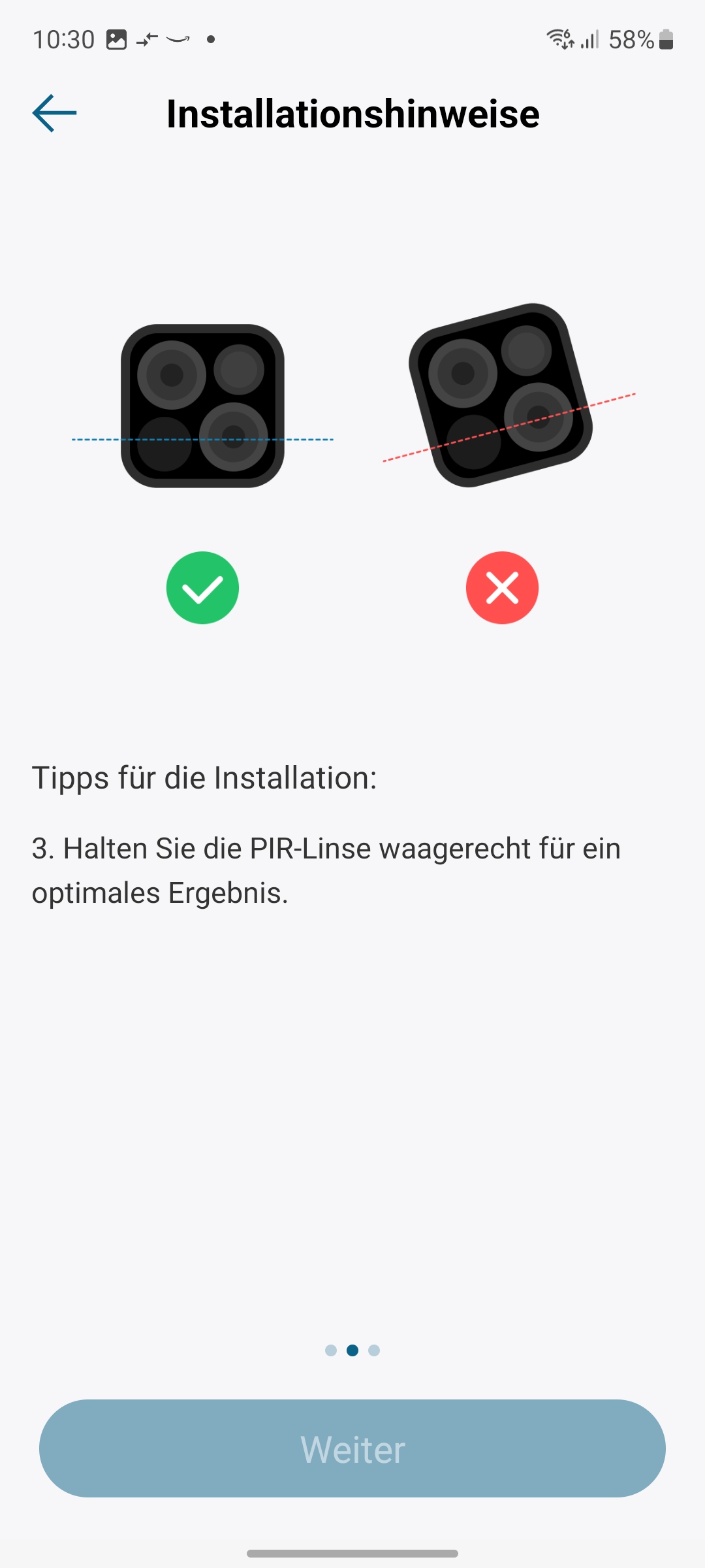 Im Lieferumfang sind für die Montage nötige Halterungen, Schrauben und Dübel sowie eine Bohrschablone enthalten. Die englischsprachige Kurzanleitung bietet detaillierte Informationen zur Montage inklusive Befestigung des Solarpanels. Informationen zur Montage in deutscher Sprache gibt es online und auch detailliert in der App.